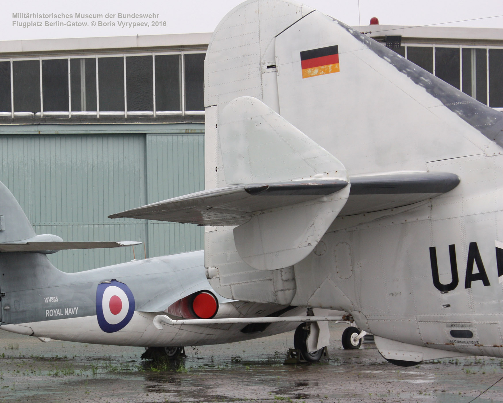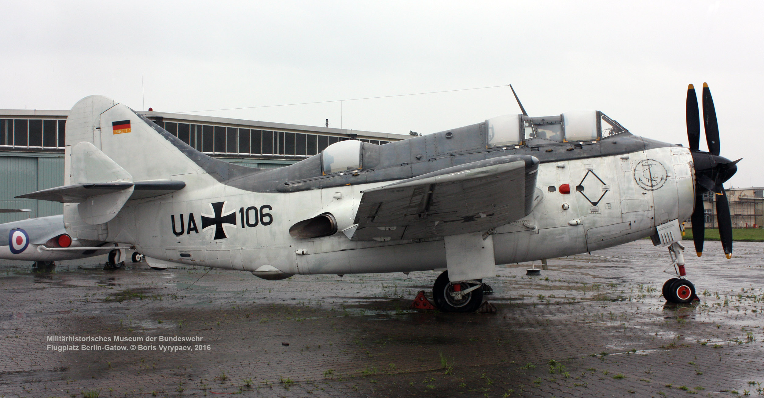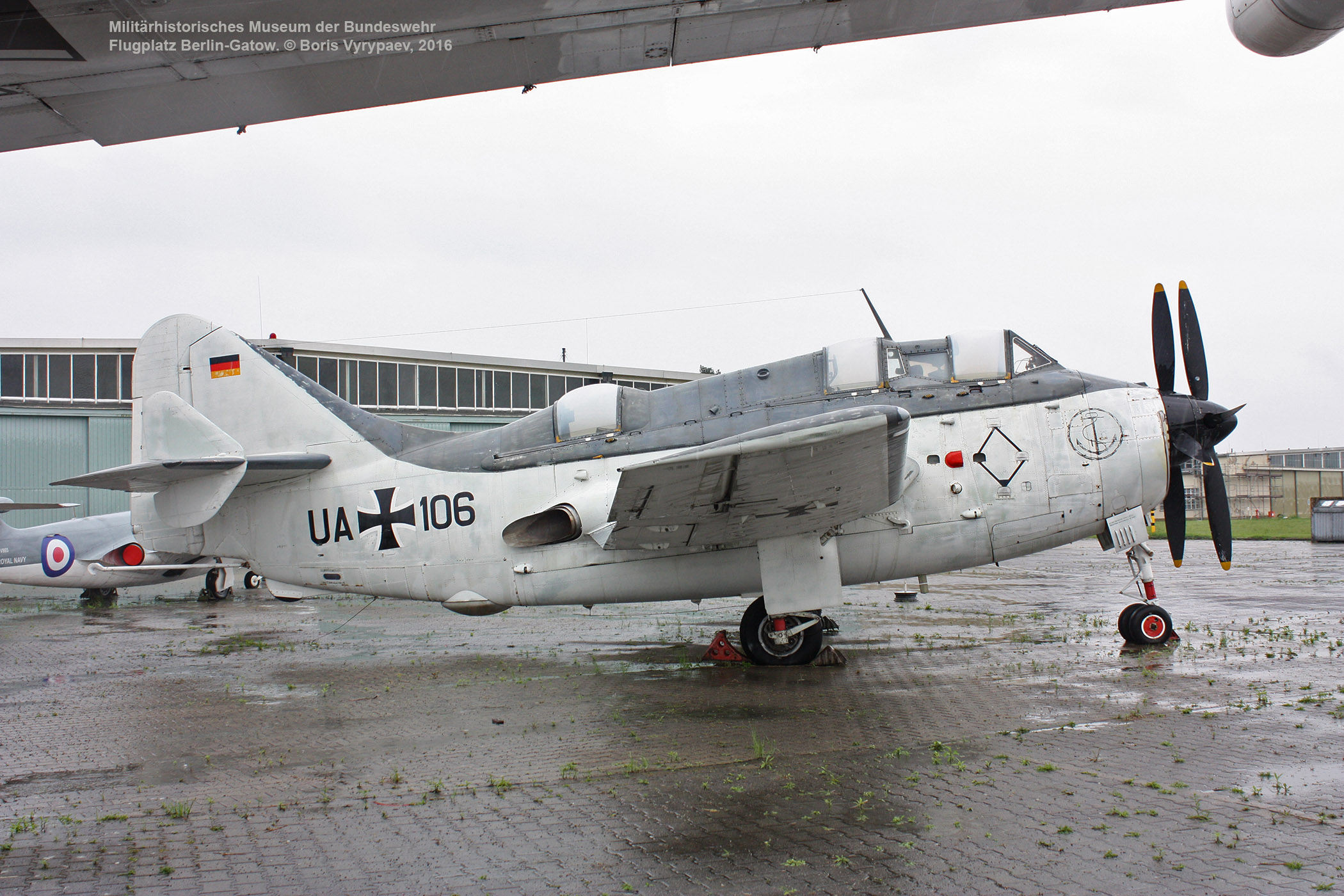 В этой части обзора представлен английский палубный противолодочный самолёт Fairey Gannet AS.4, находящийся в экспозиции на площадке перед ангаром №7.
