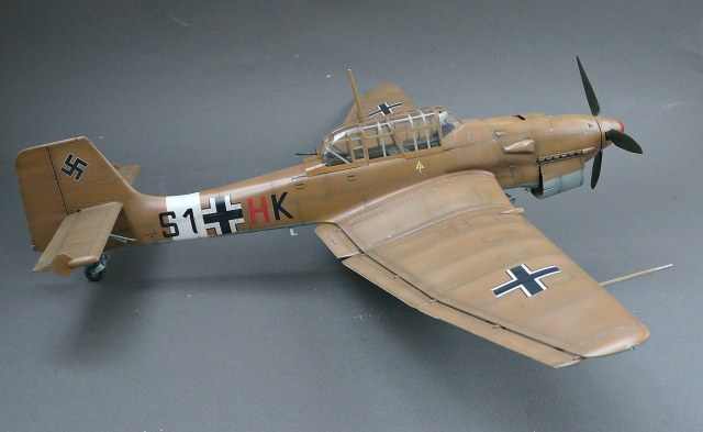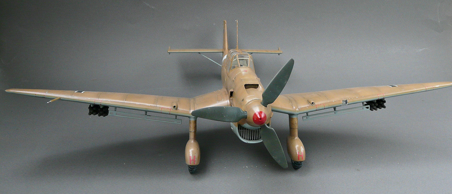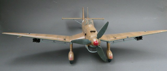 В целом Ю -87 напоминает. Как по мне,то носовую часть и фонарь китайцы перемудрили. Разве он мог брать бомбу в 1000 кг.? Да ещё и с подвеской под консолями? Кресты снизу должны быть заметно крупнее. Окрас великолепен.
