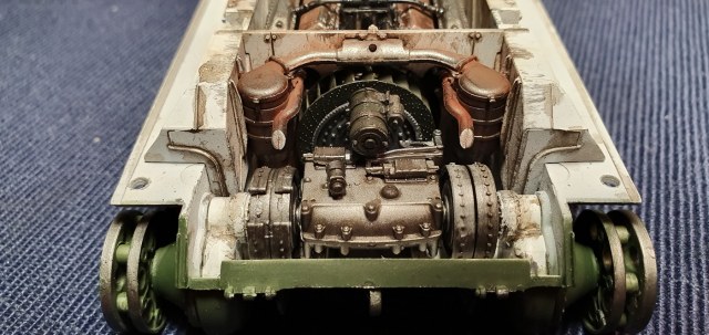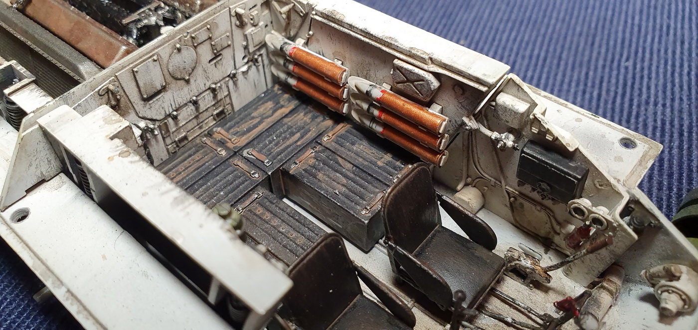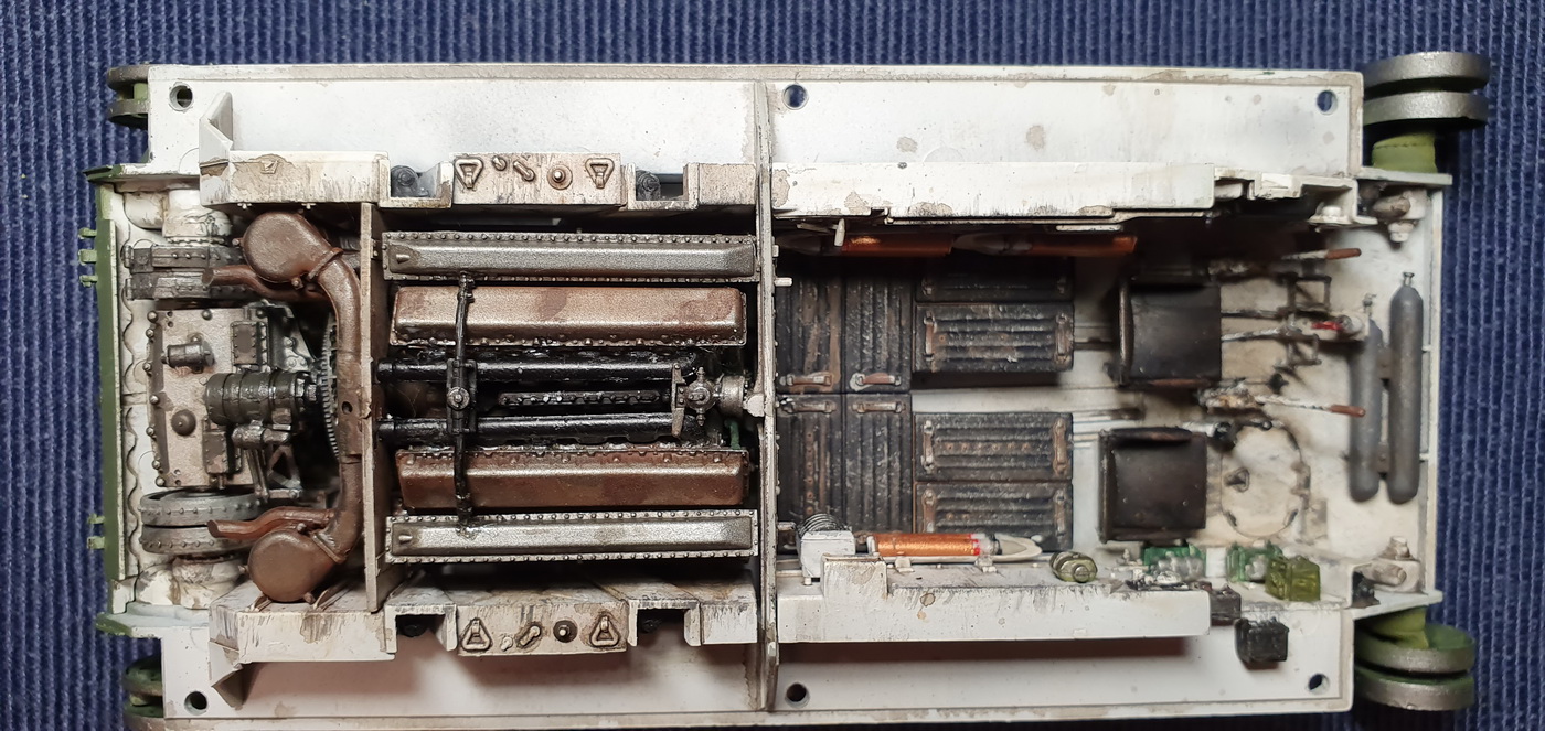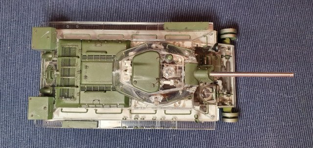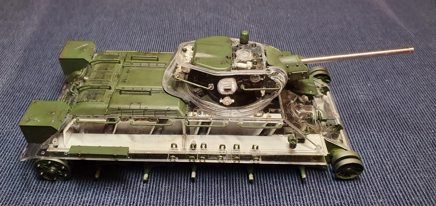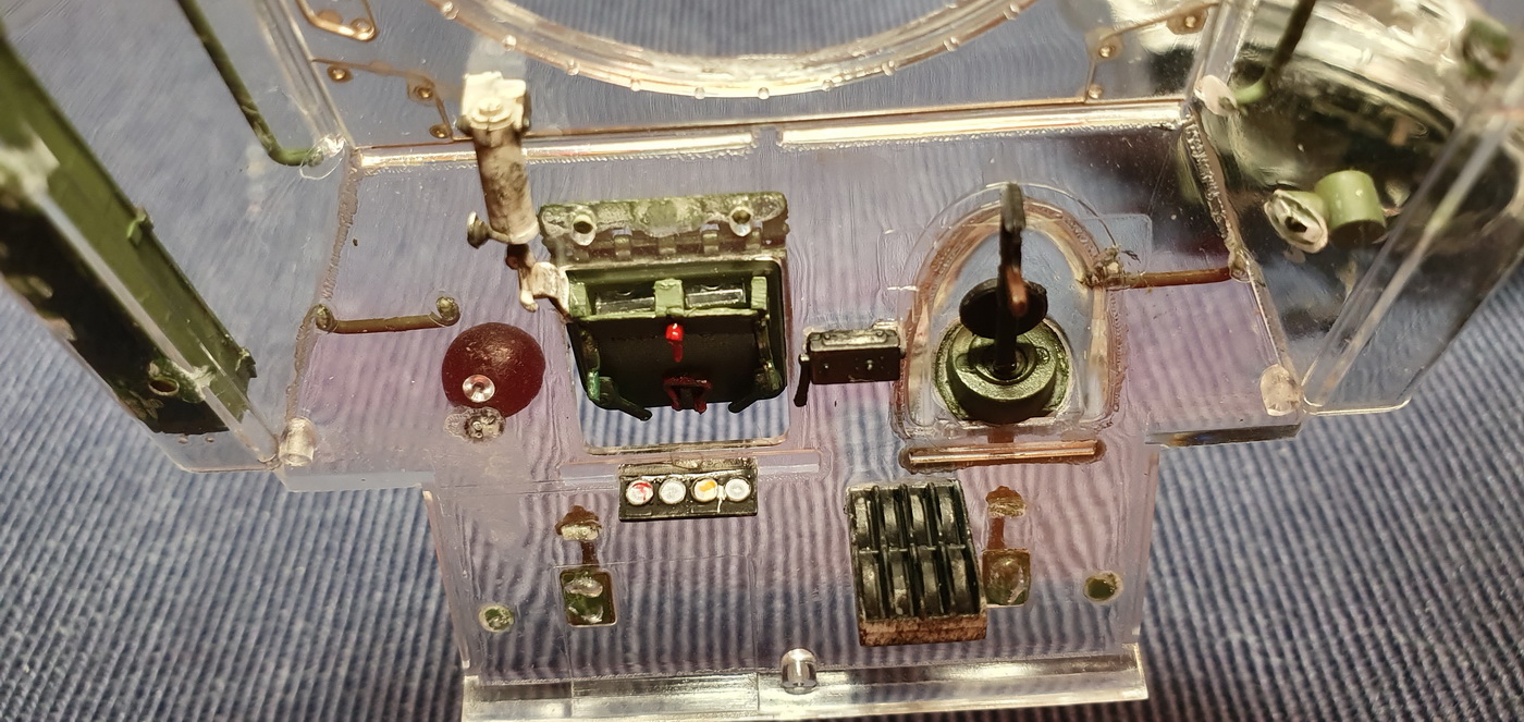 Складывается устойчивое впечатление, что красите кистью. На нутрянке это не заметно, но на внешних элементах бросается в глаза. Не торопитесь и работайте аккуратнее. Все следы от толкателей, особенно видимые надо обязательно зашпатлевать. На фото башни снизу на сиденьях это прям колет глаз. То же самое на ведущих колесах. Где следы от толкателей на прозрачных элементах - либо закрашивать эти места - либо думать, как замаскировать. Все это портит впечатление от работы. Тем более, что сама модель не простая, да и не дешевая.