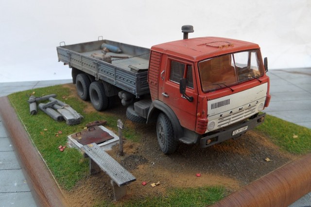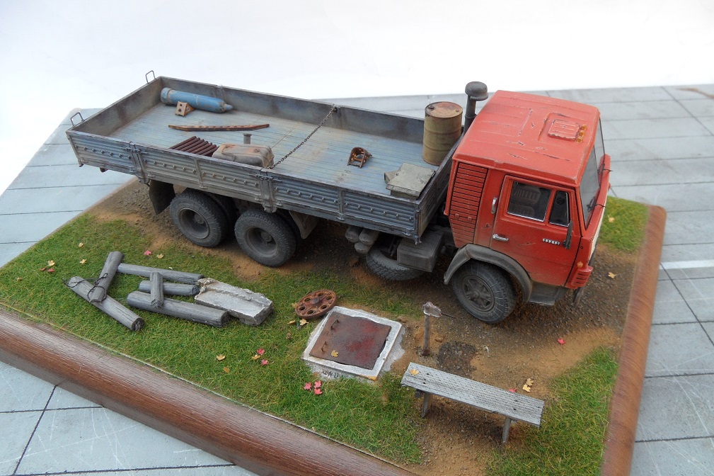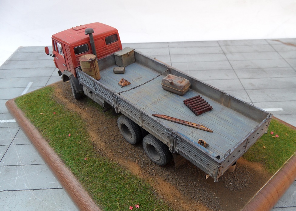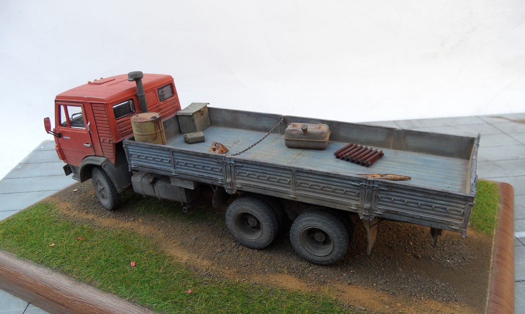 Всем привет! Очередная новинка от AVD Models , Камаз -53212 бортовой с тентом. Сразу пишу что я решил сделать без тента, хотелось загрузить кузов всякой всячиной). Модель схожа с предыдущим Камазом контейнеровозом, за исключением кузова с тентом и рамки для установки кузова на раму. Остальное сделано так же, особенно радует поворотный передний механизм колес в штатном исполнении. По сборке проблем нет вообще, все отлично, инструкция подробная, стыковка на 5! Окрашена эмалью Мотип, тонировка сухая кисть, пигменты . Приятного просмотра!