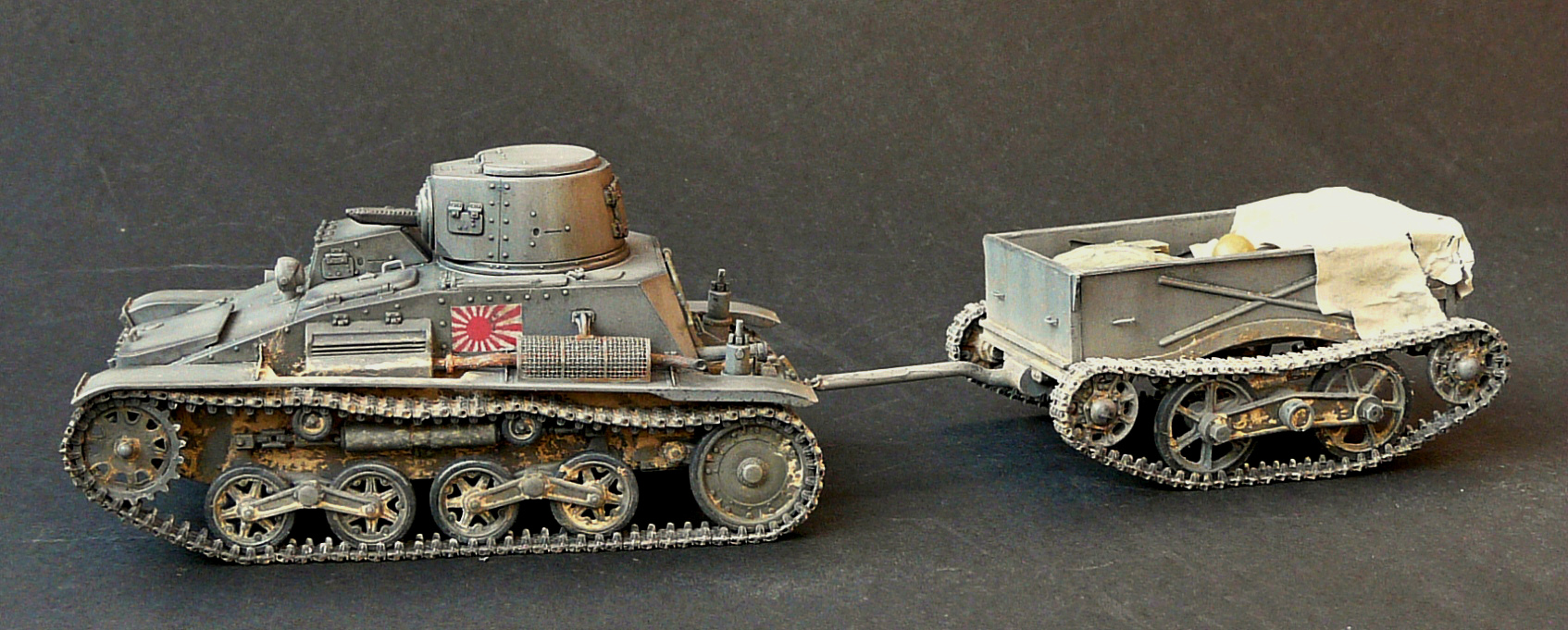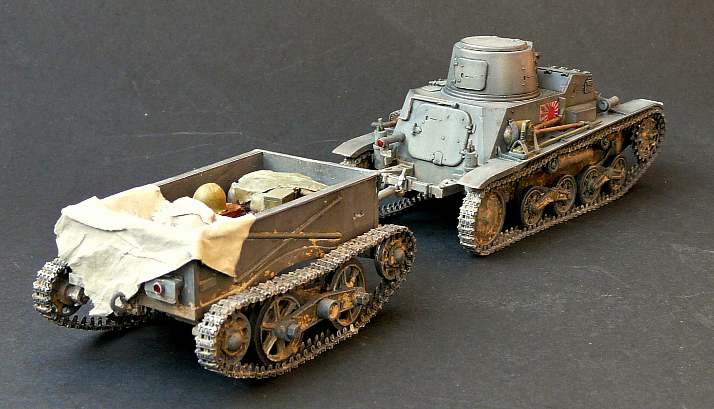 В работе принимали участие кит от Fine molds , 2 комплекта гусянок(металл) от Spade Ace и прицеп от MR Models -35323.