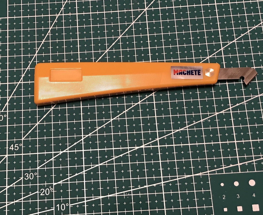 Еще один полезный, и очень даже необходимый инструмент от MACHETE, Резак для пластика , скрайбер. Он просто необходим для прорезания, либо углубления расшивки, на пластиковых и смоляных деталях. Ножик удобно лежит в руке, лезвия тут японские, фирмы OLFA. В комплекте внутри корпуса идут еще 2 запасных лезвия. Попробовал в деле, на смоляном автобусе, режет отлично, как прямые так и закругленные линии.В общем рекомендую.