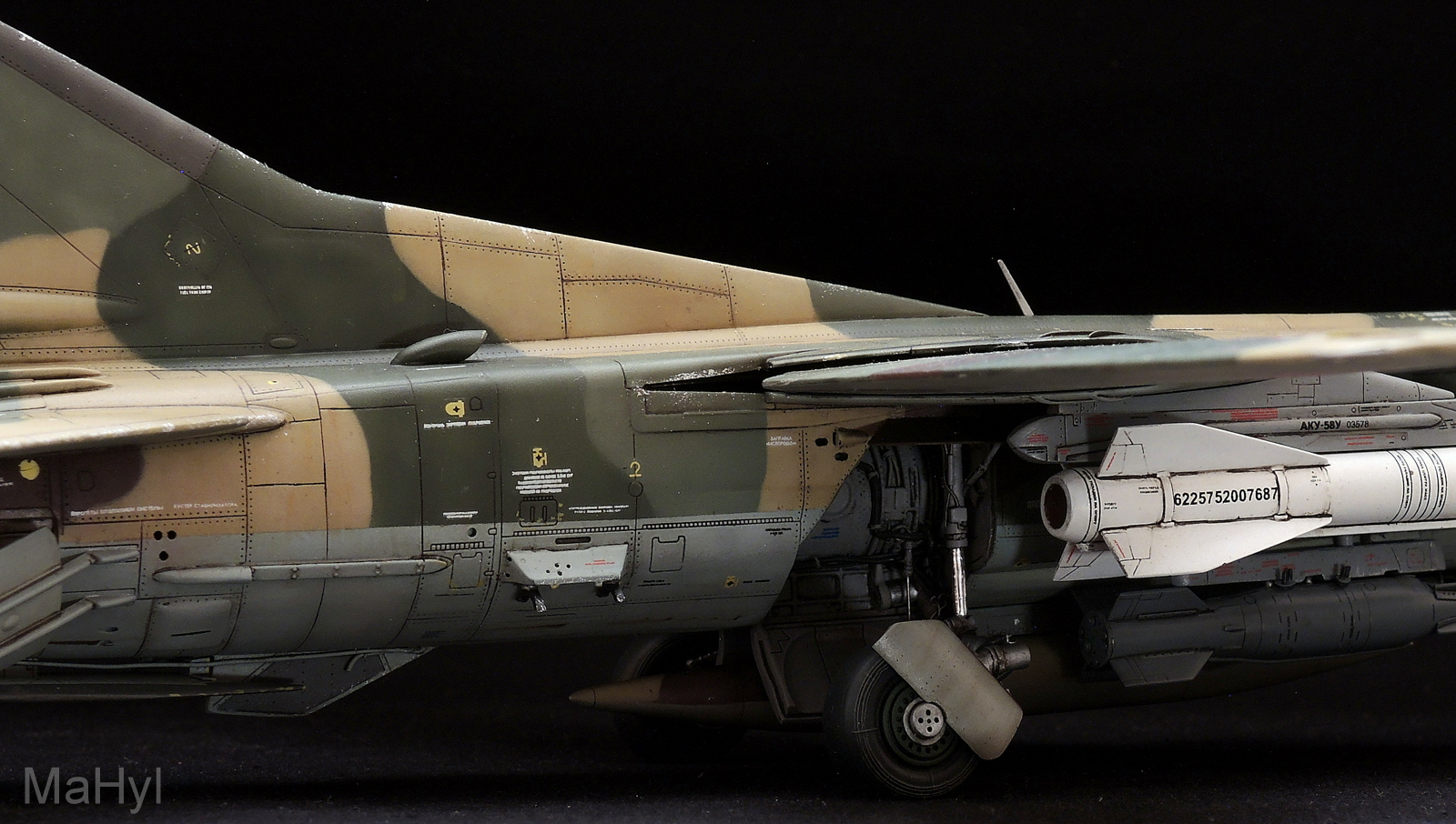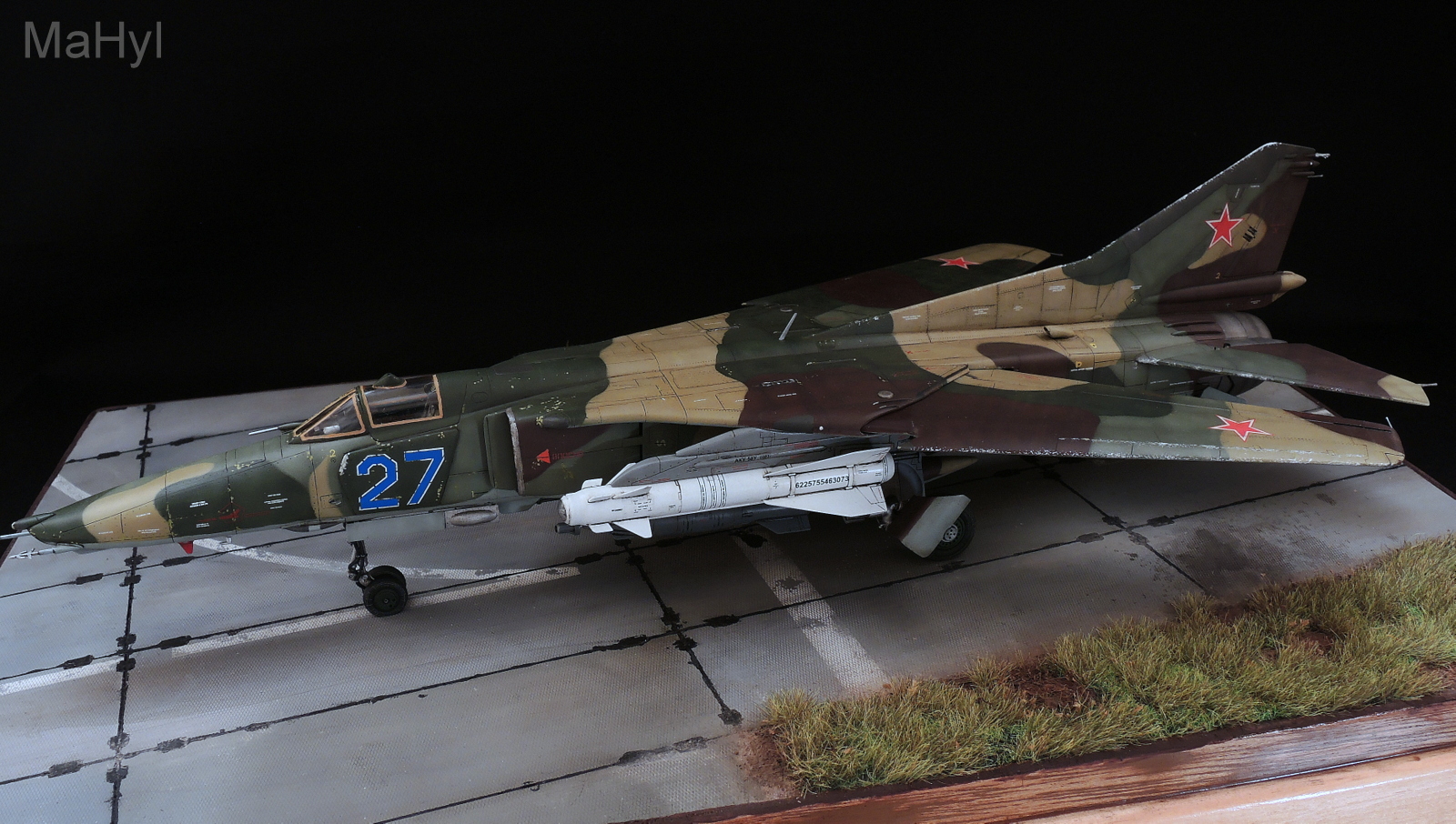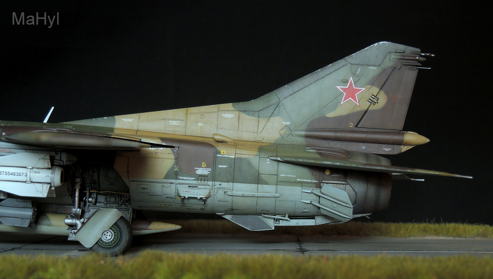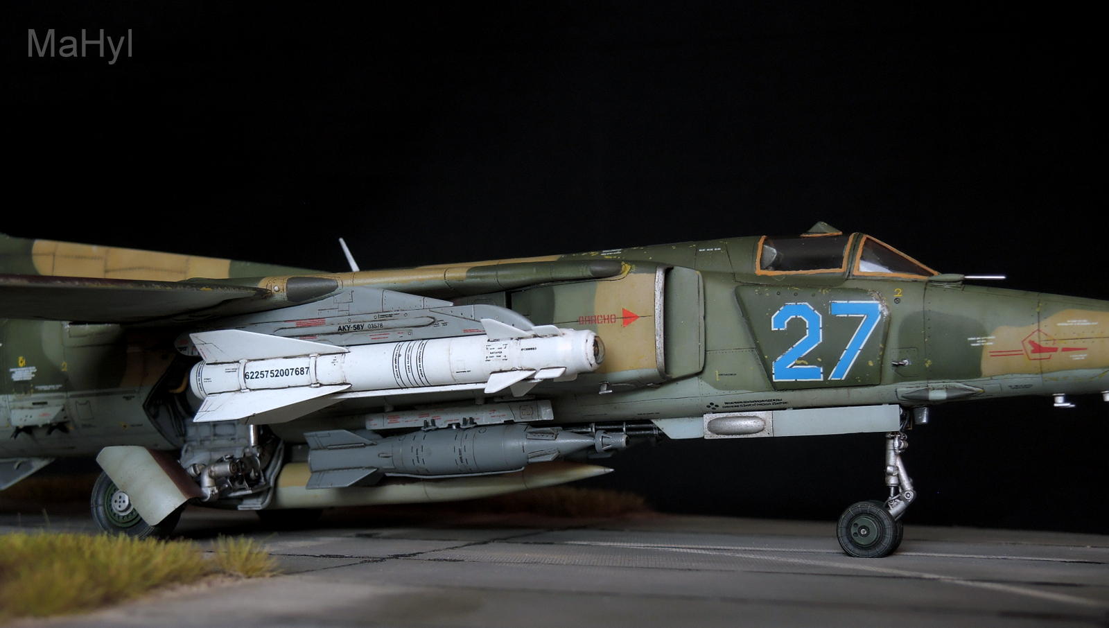 Вооружение использовал из набора с некоторыми доработками. Пришлось изготавливать с нуля пилоны, которые в наборе даны также от миг-23.