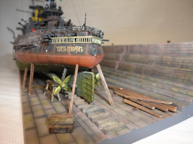 Собственно одна из его работ, увиденная на просторах интернета, и подтолкнула меня на данный проект, а что бы корабль на стоял на подставке и возникла идея поставить Суворова в док.