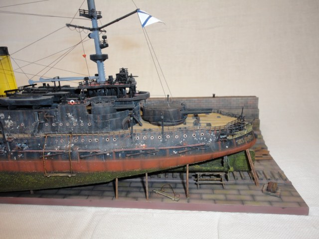 Хотелось бы отметить, что при всей спорности вопроса об обрастаниях, на мой взгляд, получилось они ОЧЕНЬ достоверно. Судя по всему, именно такие они и были бы на "момент прибытия во Владивосток". По имеющимся фото и документам, корабли ( и естественно их подводные части)были просто в ужасном состоянии, и то, что, как тут пишут комментирующие, их бы там , в случае небоя, кто то бы отмывал..Бред, такое в море не отмоешь..