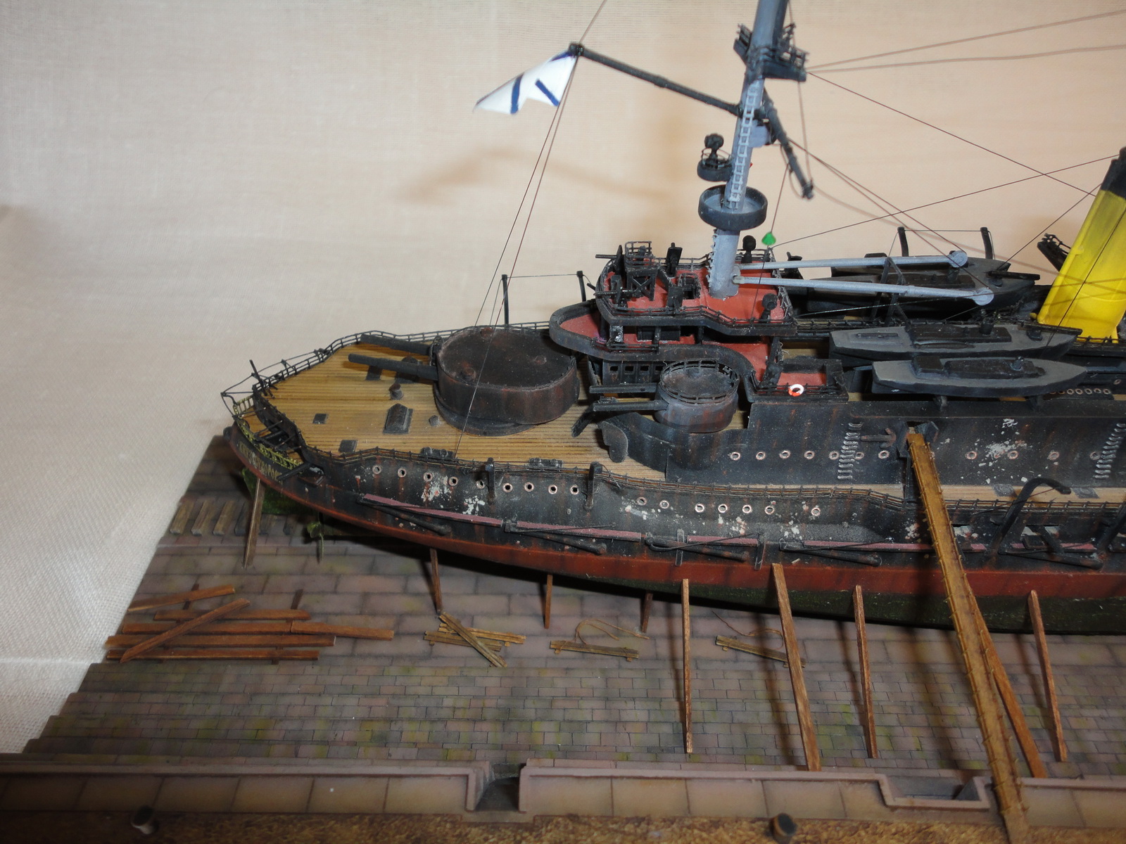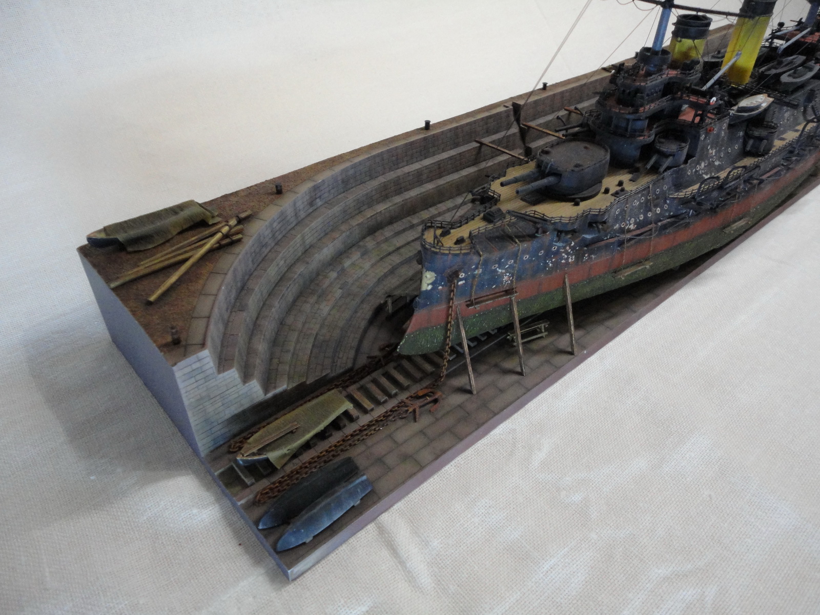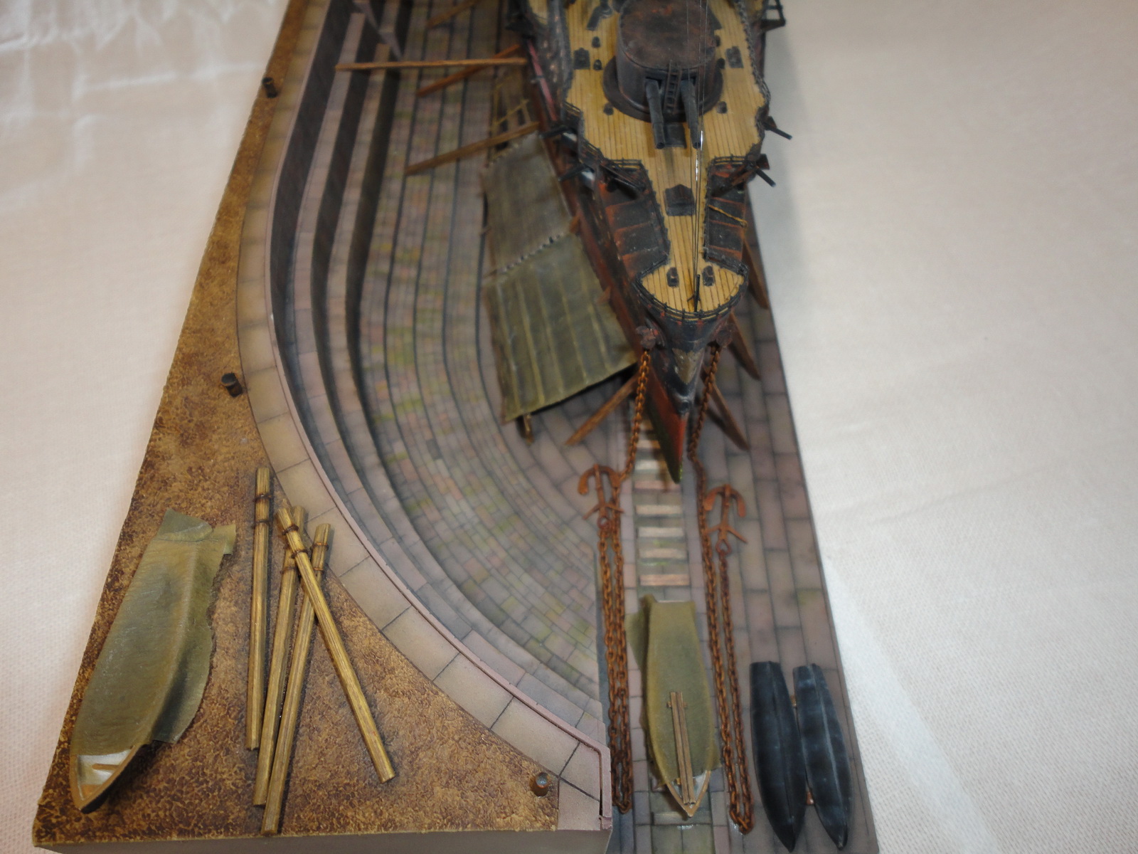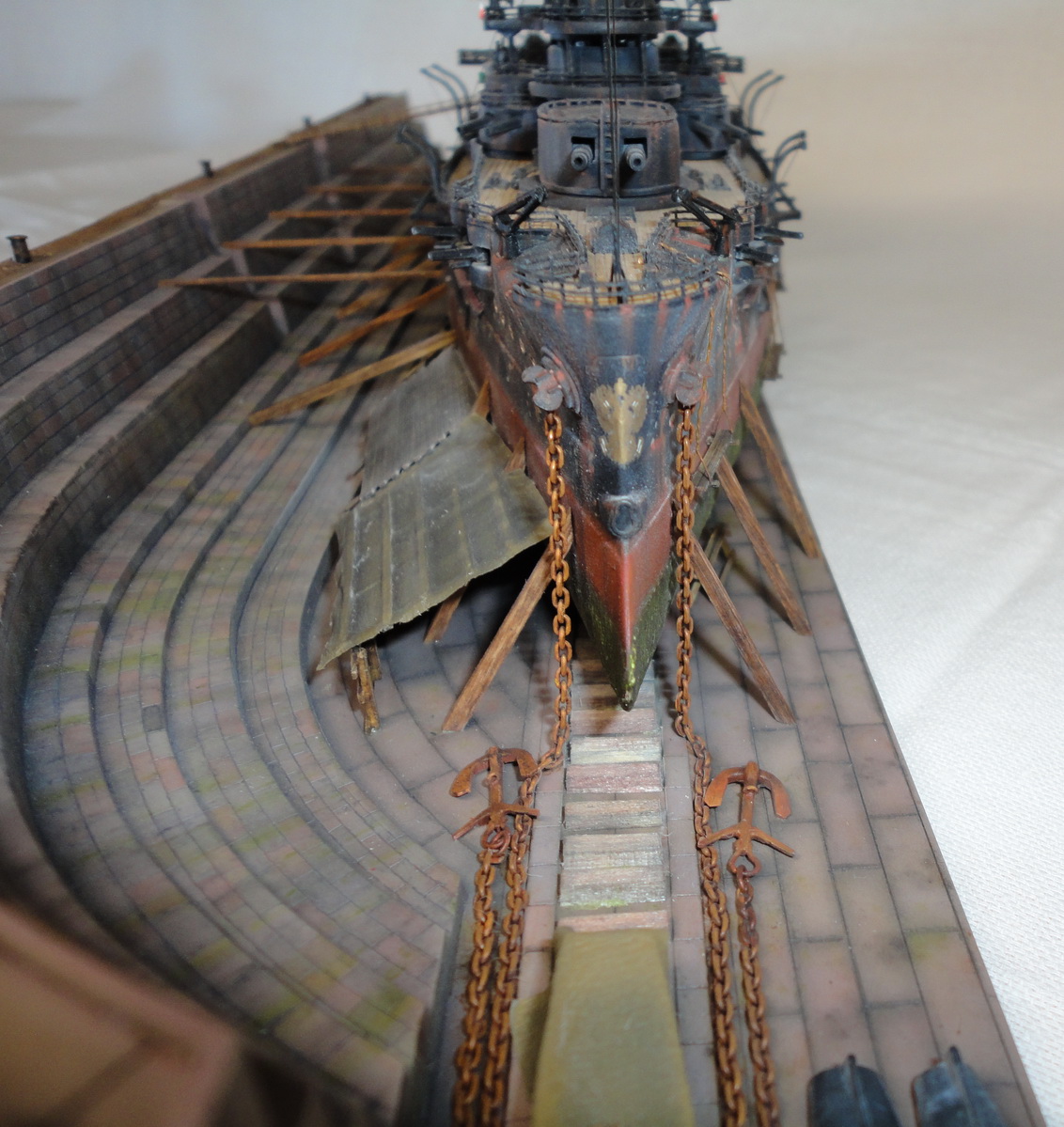 Про покраску и матчасть говорить не буду.Док понравился,красиво сделано.А идея прикольная.Корабль в доке со следами эксплуатации.