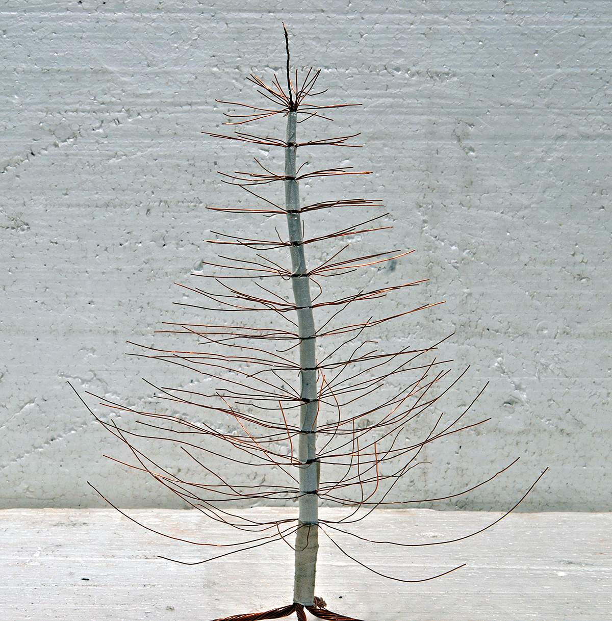 Ствол формируется поэтапно, используя пластырь для фиксации. Количество провода в кабеле позволяет сделать по 10-12 веточек на каждом уровне.