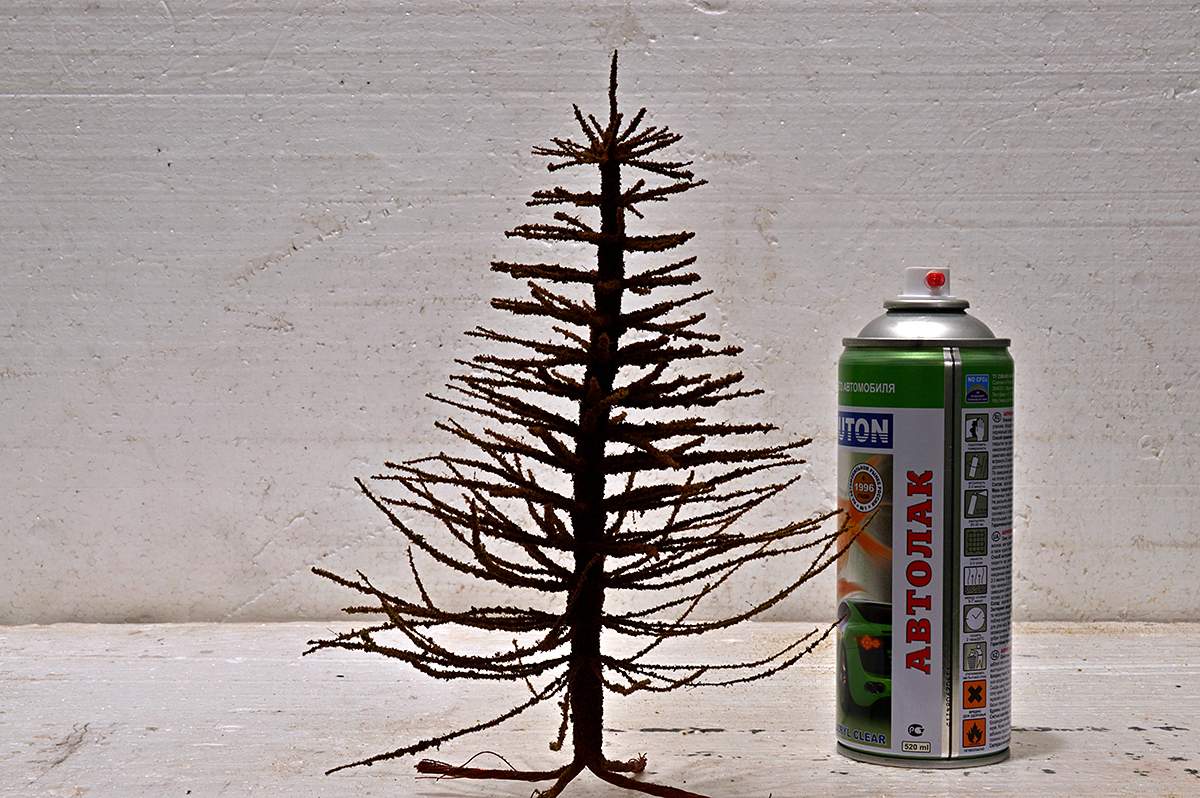 Для примера я изготовил деревце, лиственницу. Для этого потребовалось многожильный сварочный кабель, аптечный пластырь самой малой ширины, присыпка NOCH для формирования коры ствола и веток /можно использовать любую присыпку мелкой фракции/, лак для волос, лак автомобильный прозрачный.