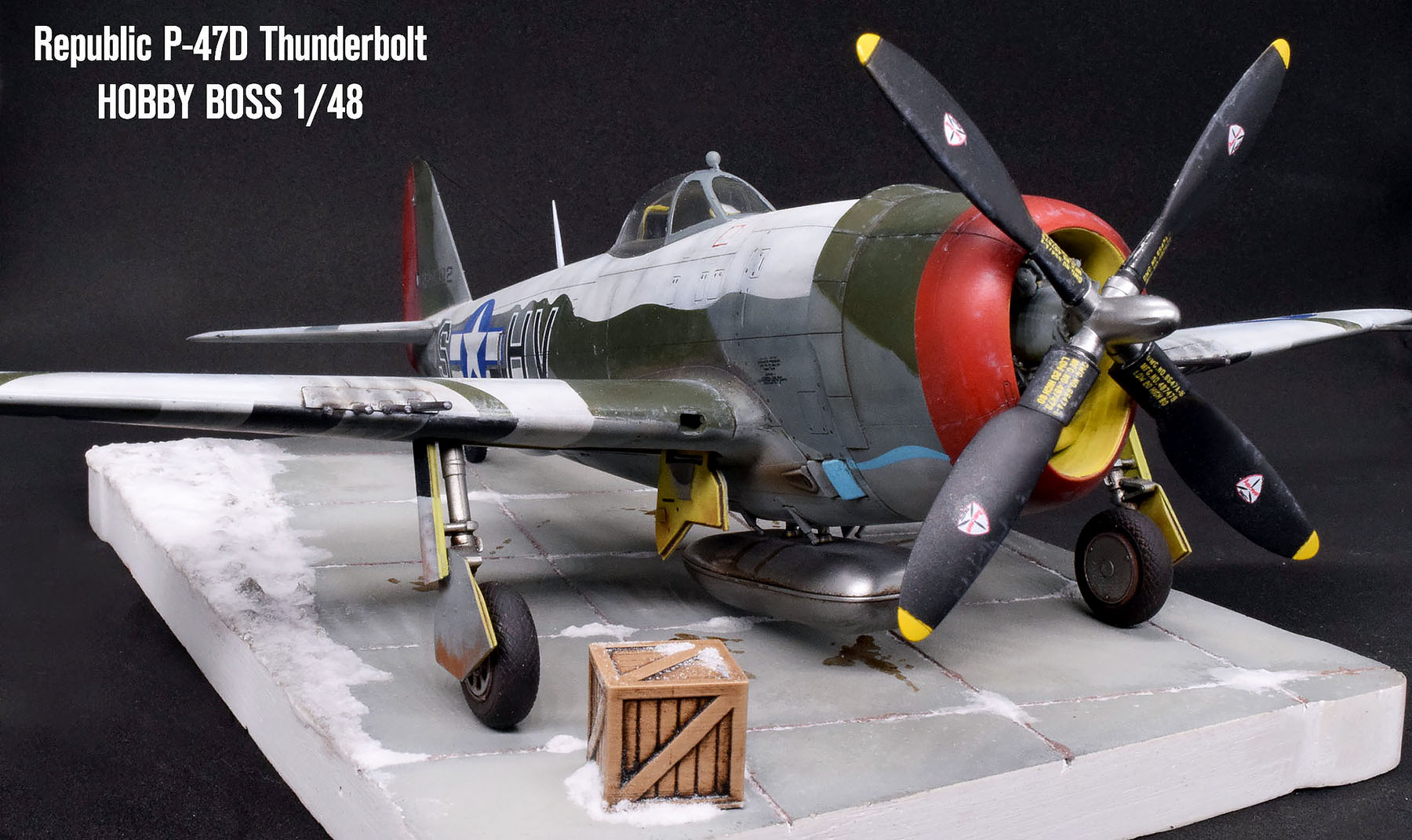 модель Republic P-47 D Thunderbolt производства Hobby Boss в масштабе 1/48 , камуфляж P-47D-26-RA, by Maj. Donavon Smith, the CO of 61st FS, 56th FG, Boxted AB, early 1945 , самом модель достаточно простая , по сборке проблем не было совсем, все продумано и сделано отлично , модель делал из коробки, ни чего не докупал и не доделывал . Декалей на это вариант в комплекте не было ,нарисовал и сделал сам ( corel+принтер с белым тонером) , из набора взял только опознавательные знаки и технические надписи, Подставку сделал из алебастры , бочки, канистры и ящик создал и потом распечатал на 3D принтере ( Wanhao D7) , это был мой первый опыт изготовления подставки . Грунтовка Mr.Color, краски и химия Tamiya, Mr.Hobby, Real Color от AK. Вызывает сомнении покрашенный в цвет zinc chromate yellow моторный отсек , где то увидел такой вариант, понравился , сейчас покрасил бы в другой цвет , возможно в будущем перекрашу .