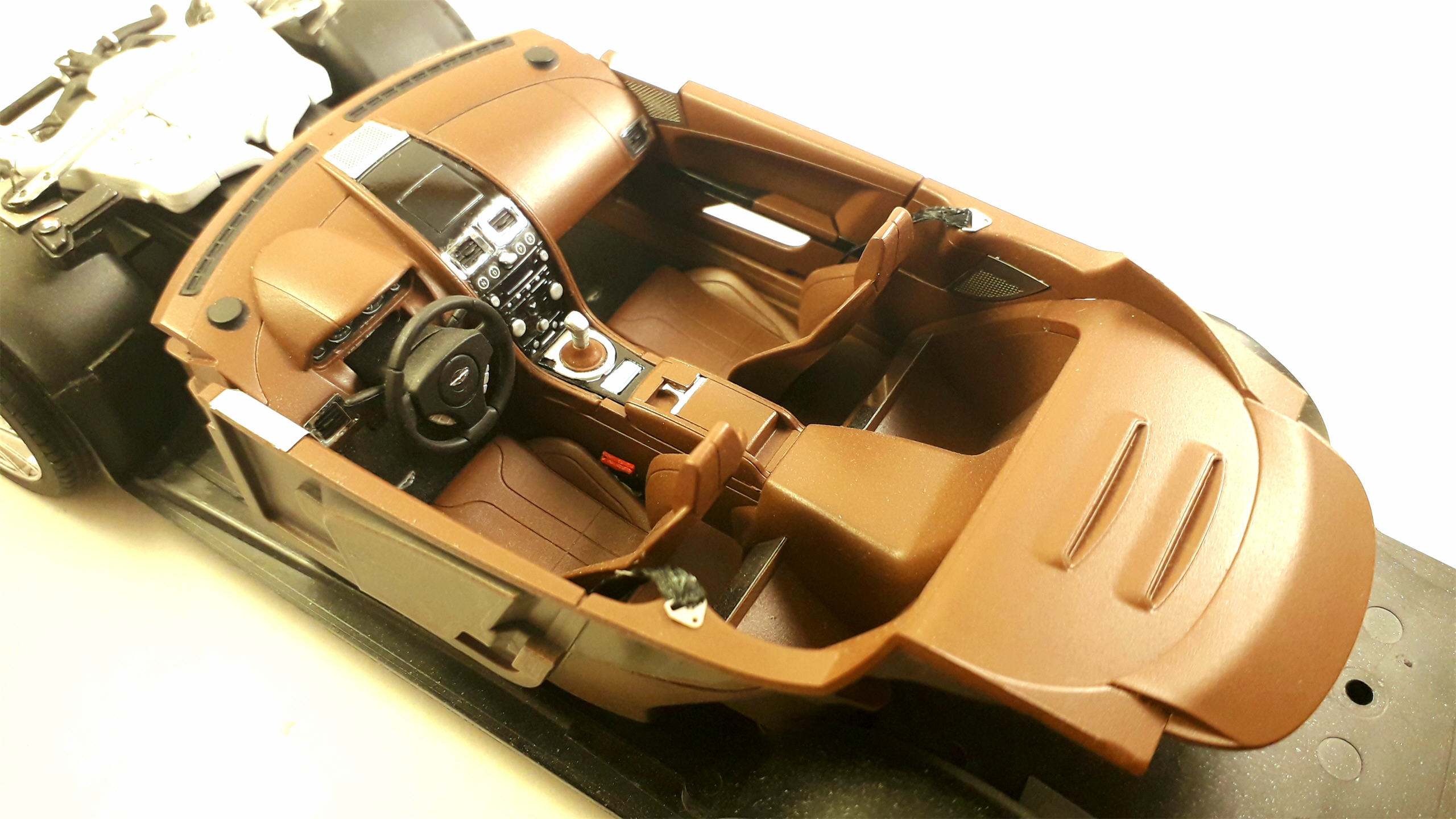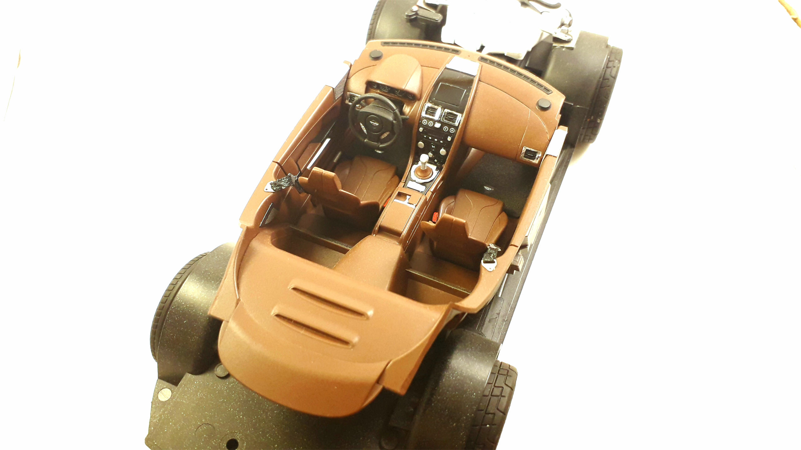 По материалам: краска автомобильная, грунт ганза белый 1500 зерно, 2к лак Dyna, полироли 3М, воск от тамии. Для имитации хрома использовал самоклеющуюся фольгу - BMF.