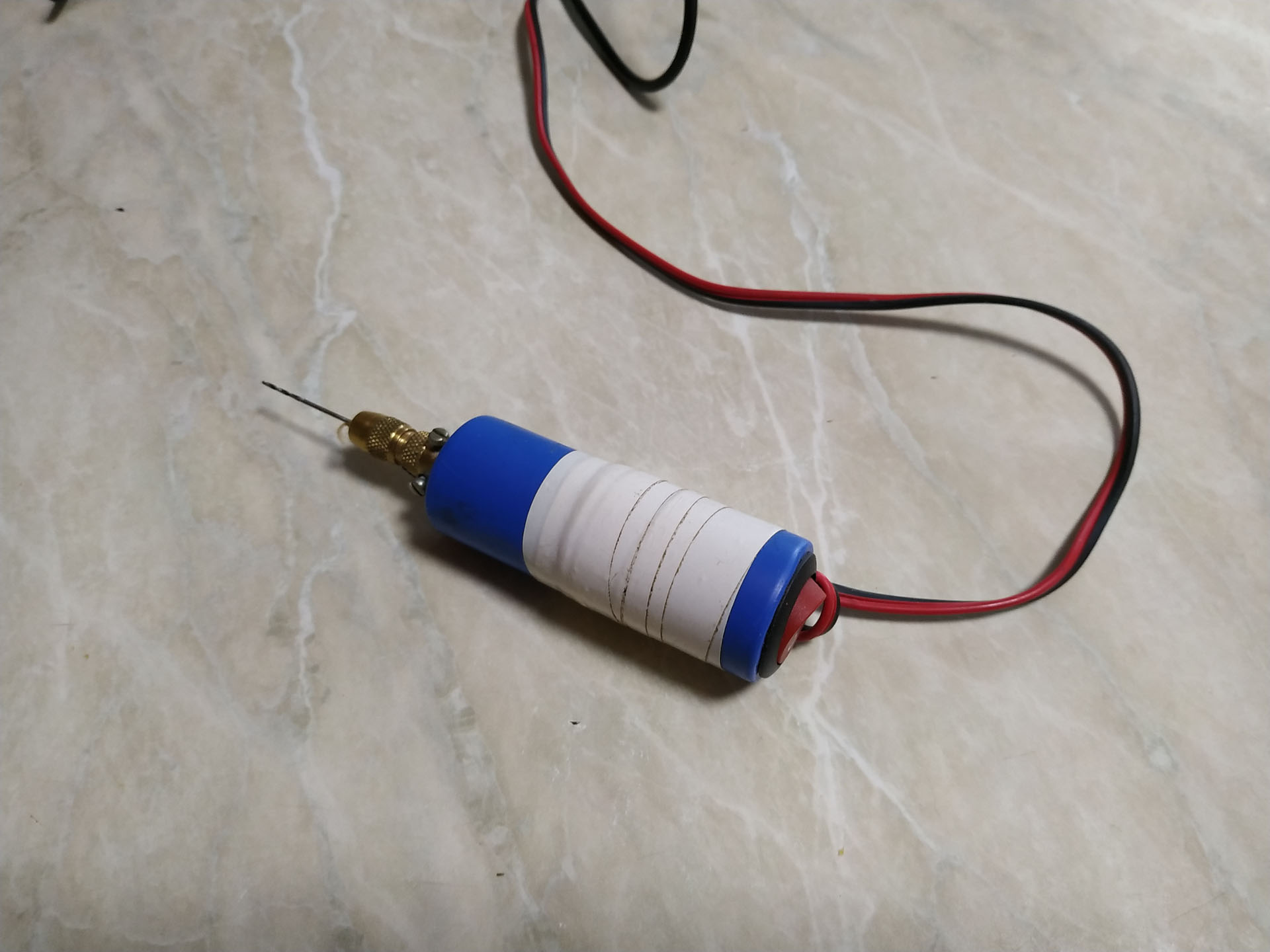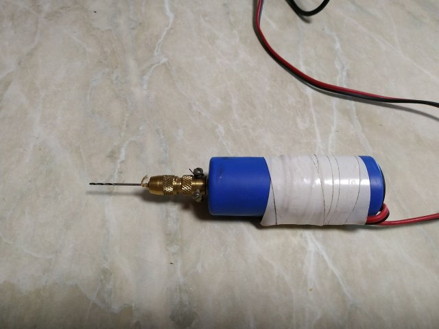 Без "шнурка" оно удобно, но из "свежей" батарейки можно "отжать" порядка 5Вт. Отверстия более 1мм уже не "возмёшь"... крутящего момента не хватает... а если и просверлишь 1-2, батарейка уже "мертвая". Я использую двигатели 16-25 Вт (можно использовать весь спектр цанговых зажимов комплекта минипатрона, а это и фрезы, и микродисковые пилки).