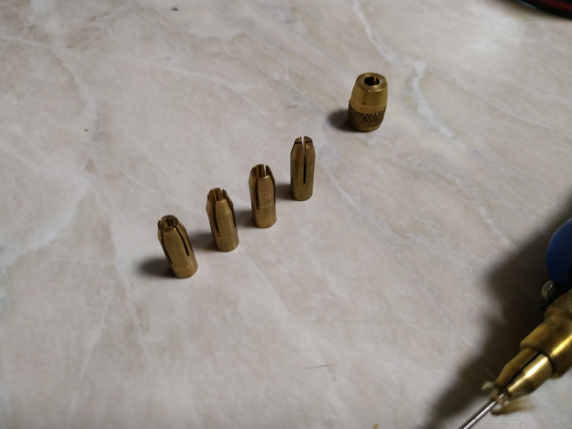 В комплекте 5 цанг под разный диаметр.