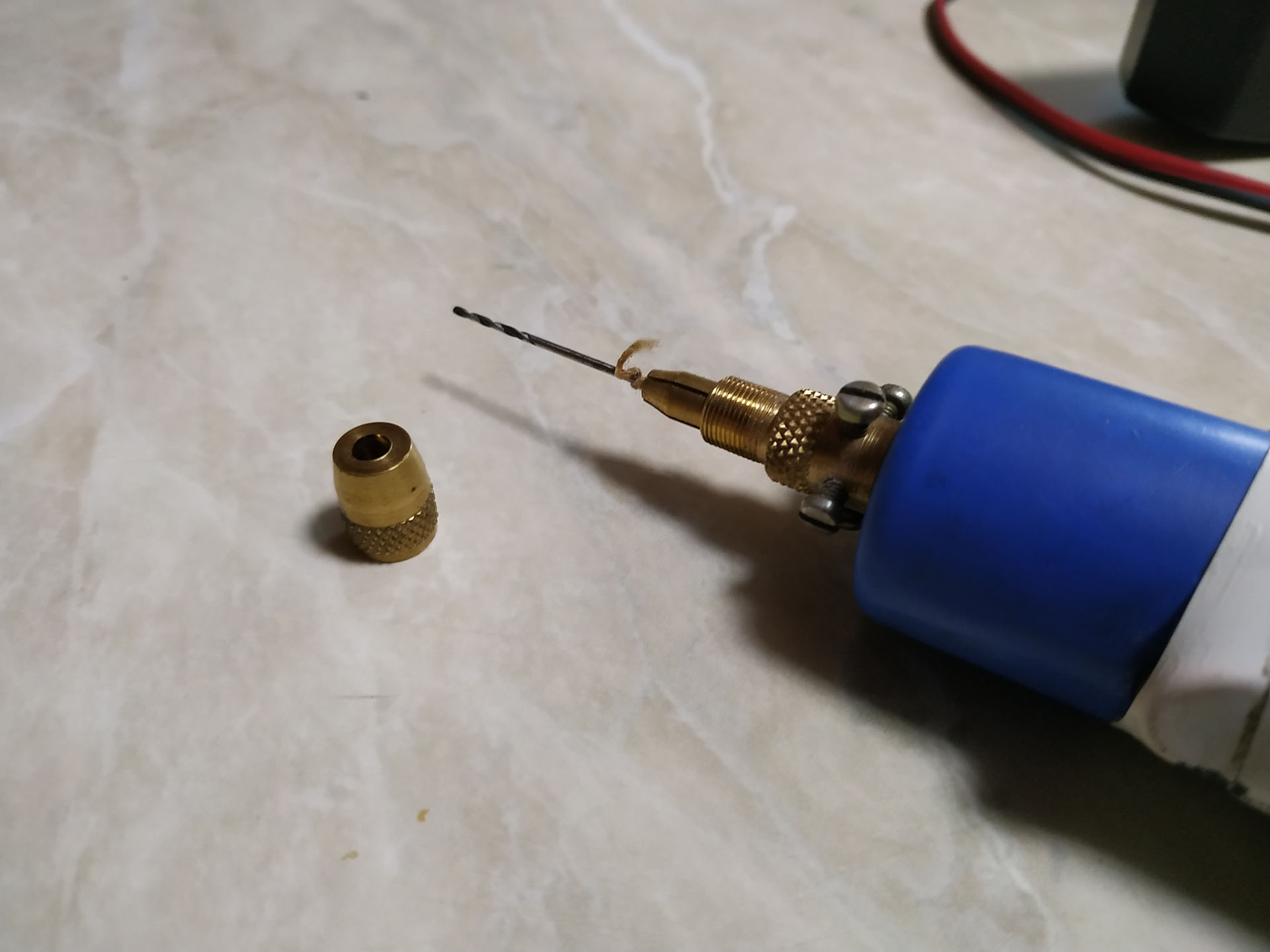 Давным давно ,в прошлом веке еще, мне привезли из Москвы с радиорынка в Митино две головки разных размеров/цанговых/ и пару разных ДПМ-ДПР-ов. Те кто был со мной в контакте здесь в Израильщине /моделисты/ сильно возжелали такое иметь и я ближний круг обеспечил. Головок и себе прикупил несколько комплектов и сверлилок у меня перед носом висело 4 штуки в рабочем состоянии.Было удобно-сразу несколько диаметров в работе.Бормашинок за это время я испробовал изрядное количество самых разных фирм.Главный недостаток даже у самых-самых - огромные обороты. И регулировки у всех -это от лукавого.Когда на Али я наткнулся на эти головки я понял,что можно создать ФСЕ, что хочешь.При их копеечной /условно/ цене. А двигателей сегодня у меня столько....Начиная от вибраторов в телефоне,до ....И обороты я наконец подобрал по душе.При которых сверла 0,2 не ломаются. И 9 вольт от кроны очень все бюджетно.Рекомендую коллеги.Итак поэтапно: разбираете до поросячего визга выброшенные девайсы /рекомендую обратить внимание на зубные щетки с вращением/ методом научного тыка подбираете подходящие вам обороты и согласно диаметру вала заказываете головку /ищите бесплатную доставку/,далее растрата на крону.Кнопку подберете попутно из тех же девайсов. ФСЕ.