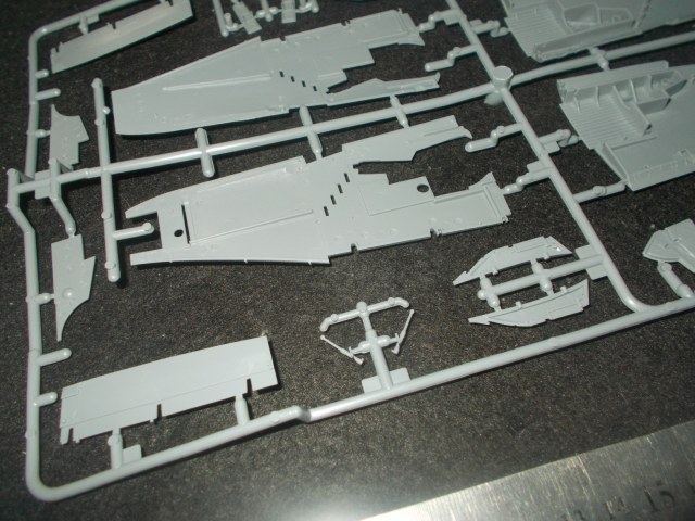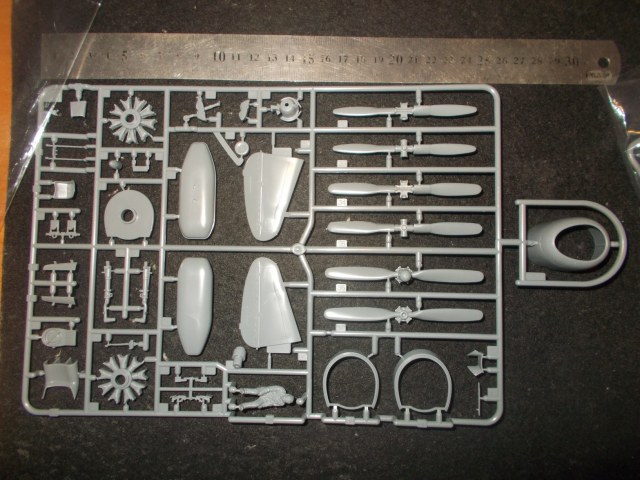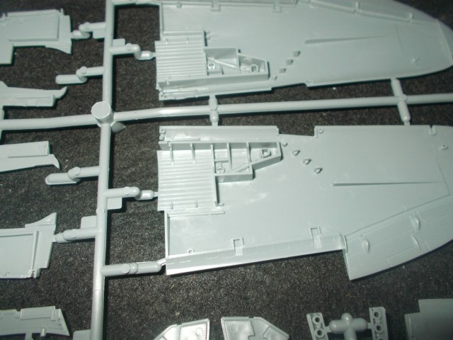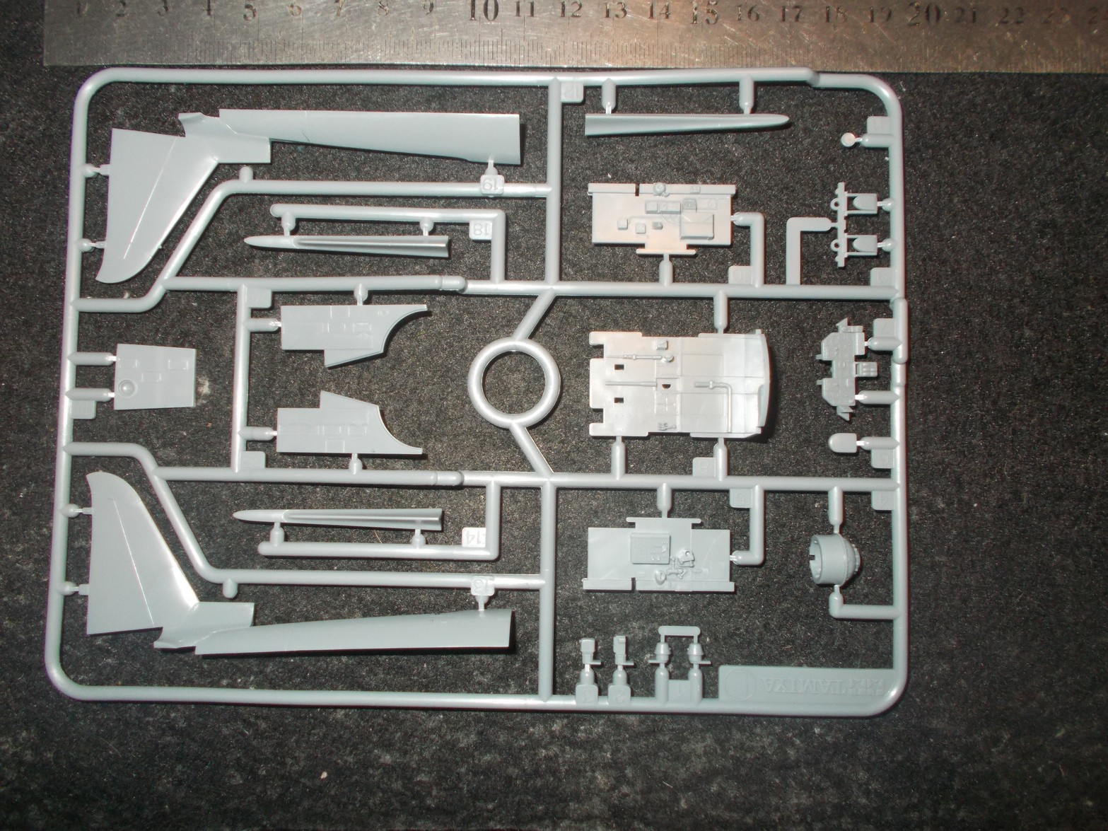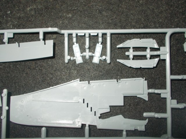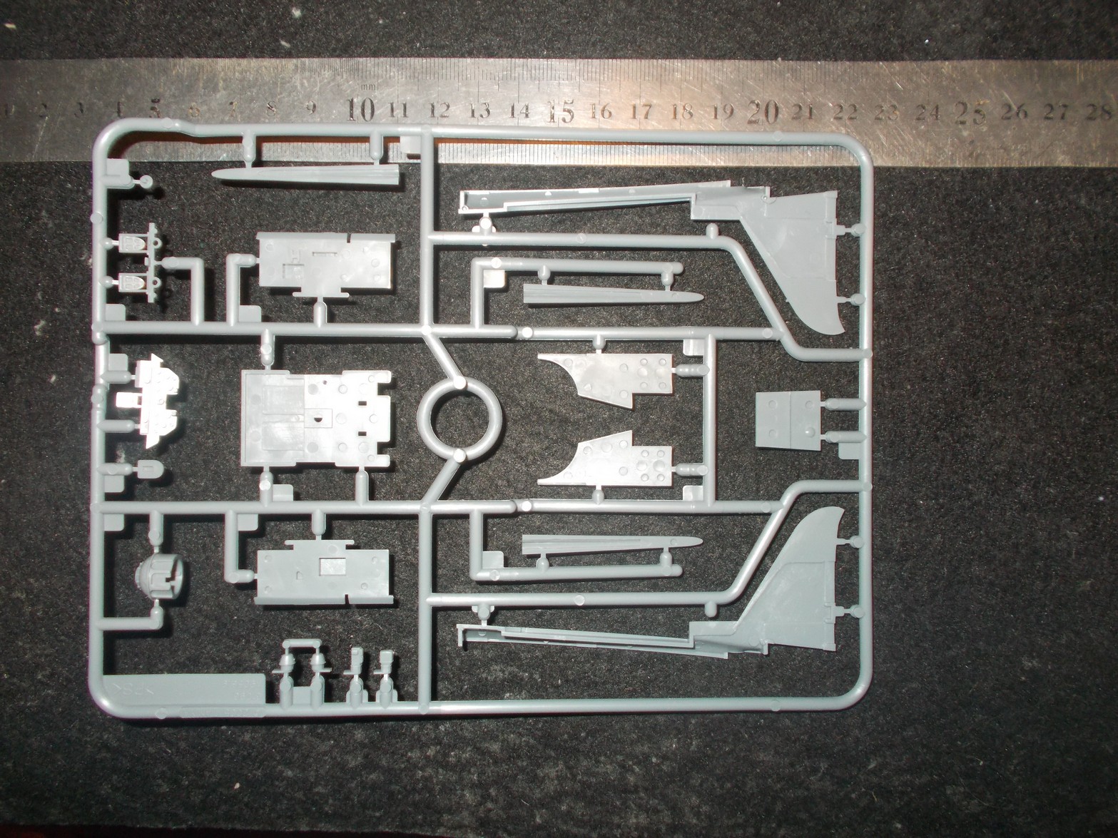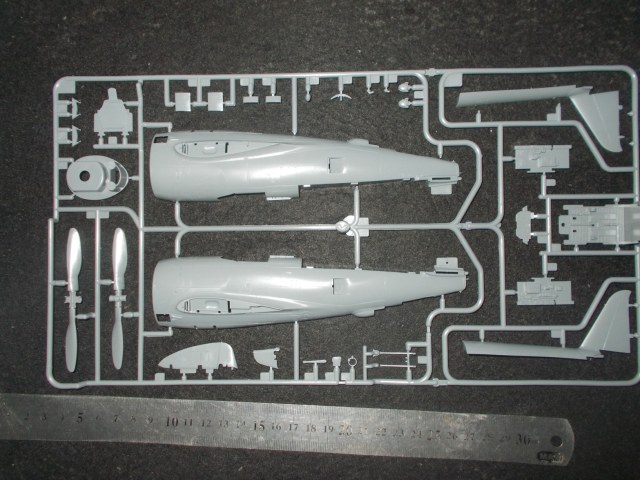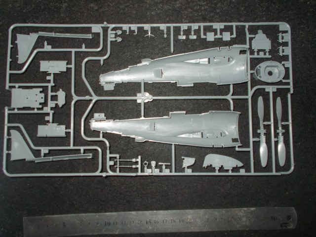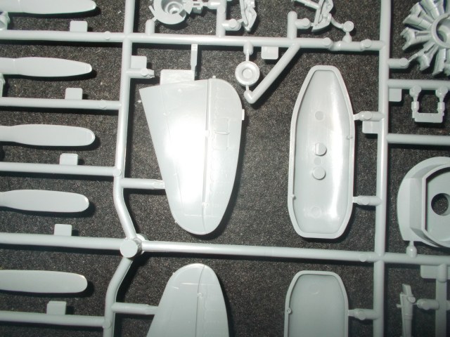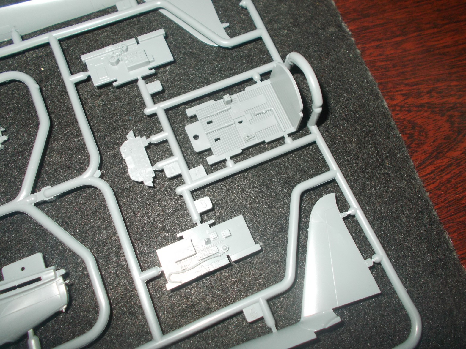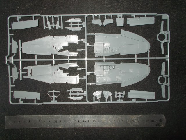 1.Большой литник с деталями фюзеляжа и кабины. Литье хорошее, но заметны следы царапин на форме.