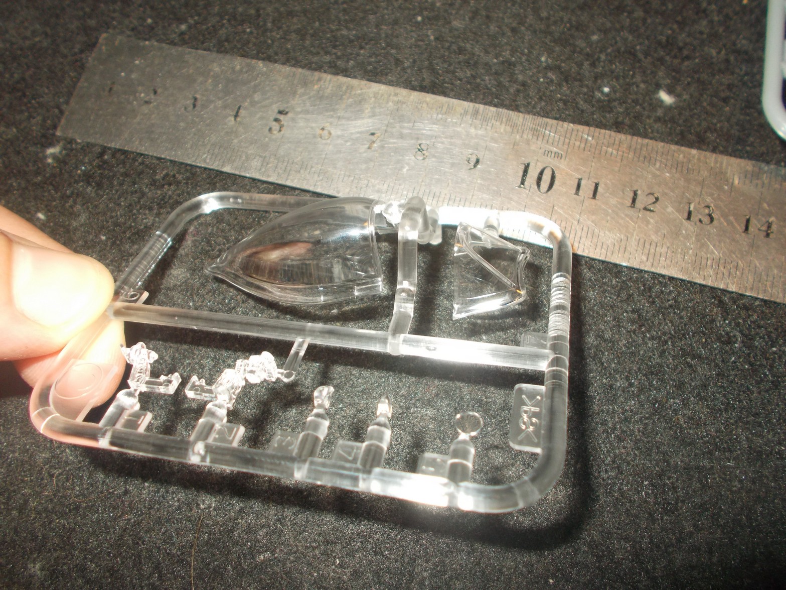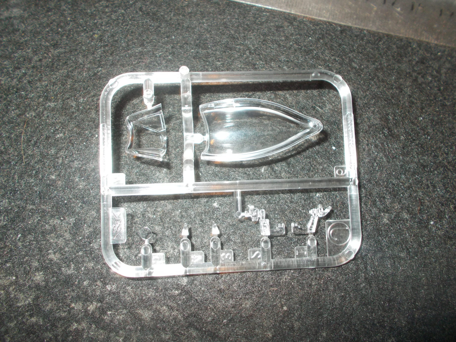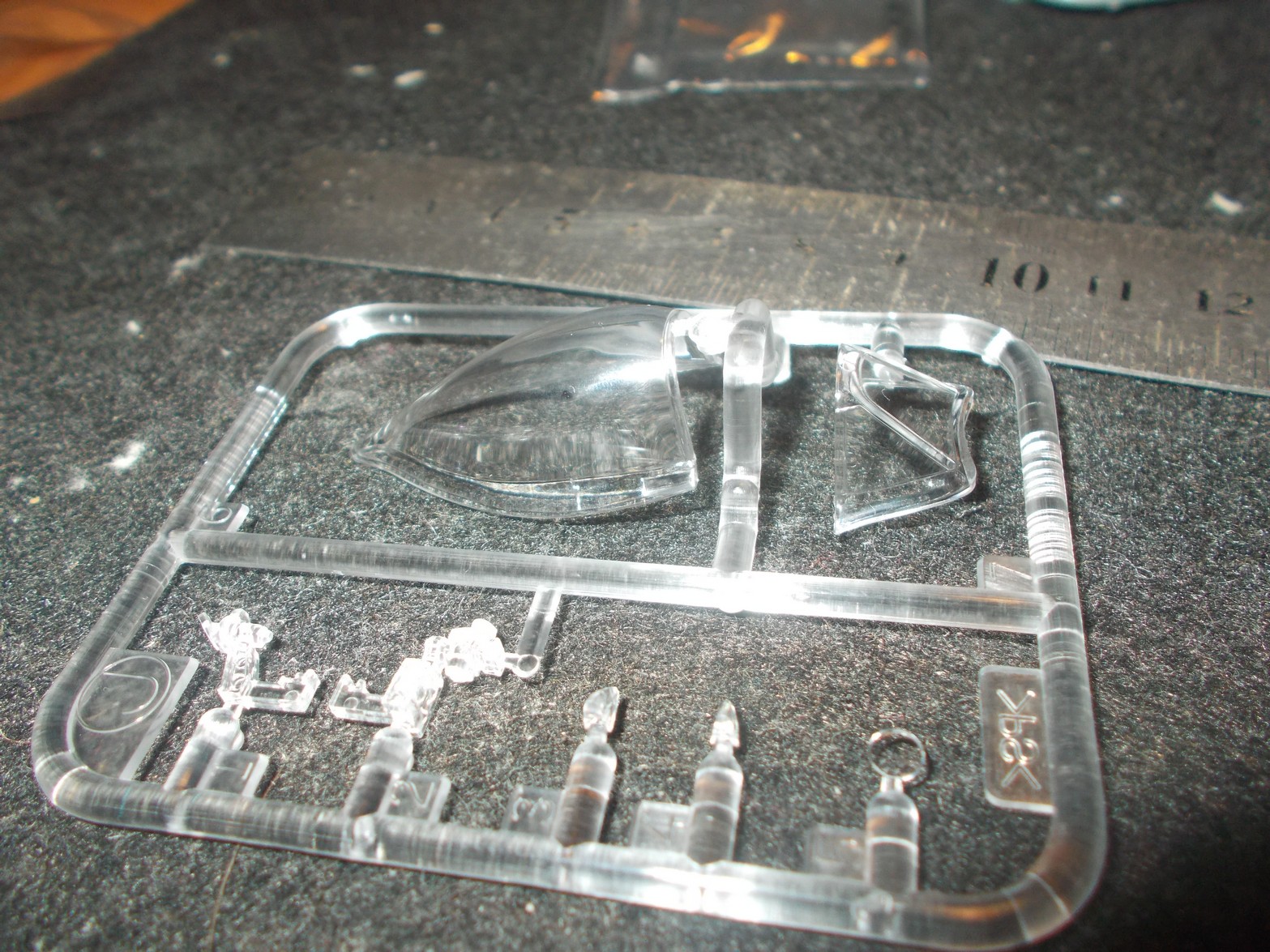7.1 Прозрачный литник с фонарем и фарами. Толстый пластик, эффект лупы присутствует, есть литьевые царапины.