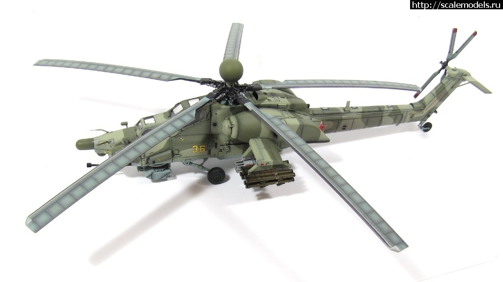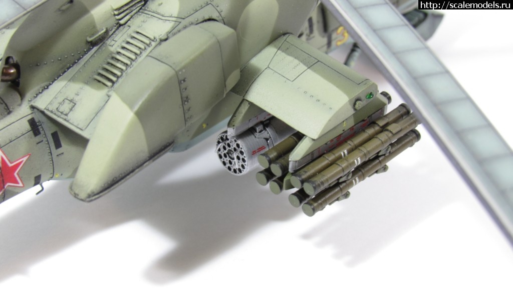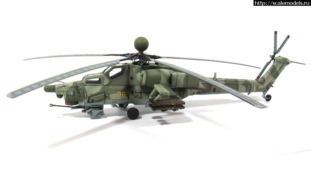 Окраску производил аэрографом: акриловые краски и лаки MrHobby, смывка Mig. Декали от Бегемот для Ми-35 и Ка-52