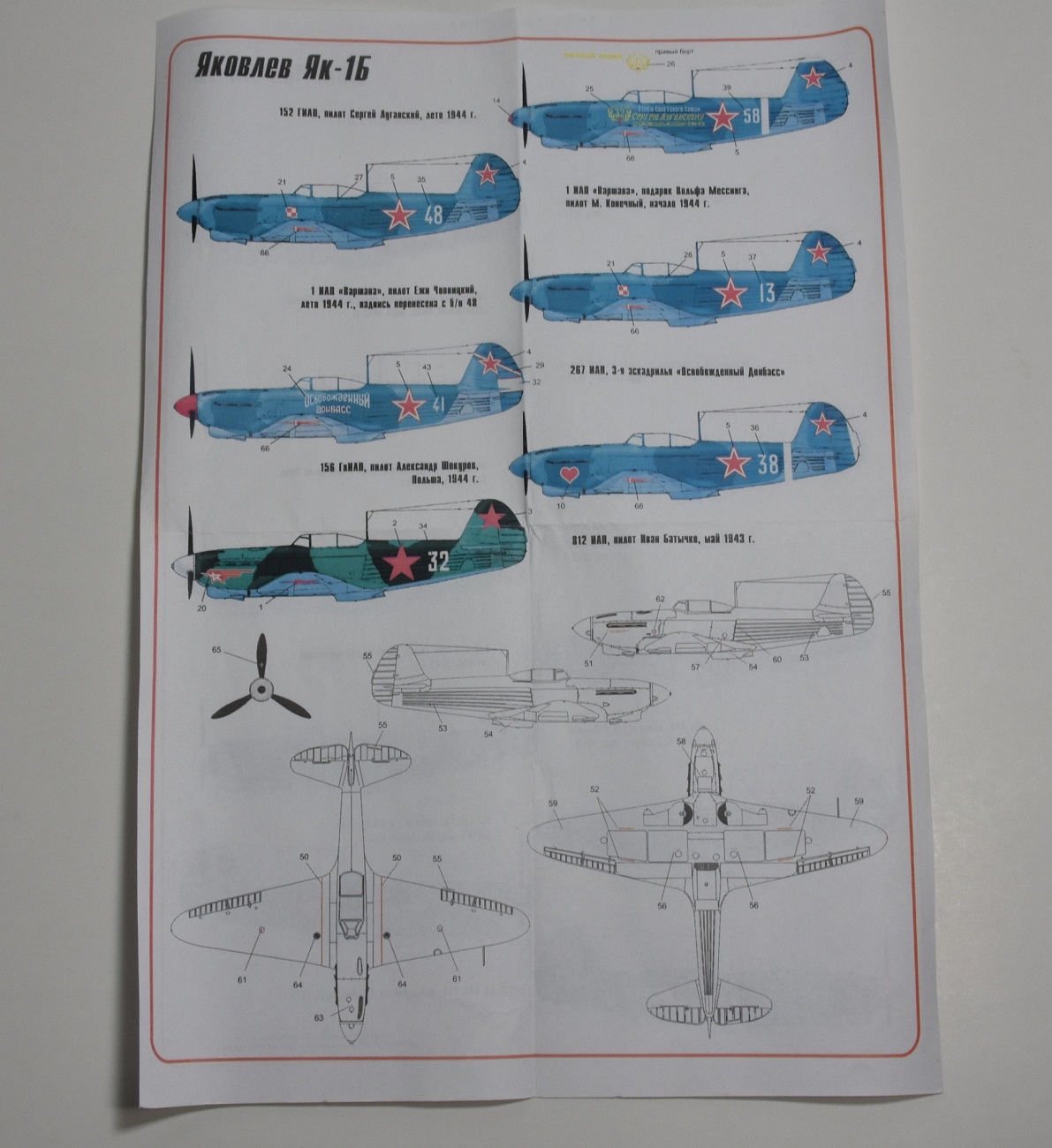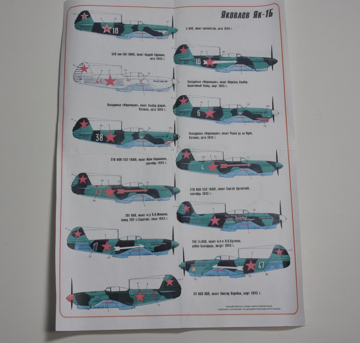 По цвету надписей, меня смутил один момент. Донесение наших об увиденном Як-1Б (Смирнова), на котором летали немцы: "Самолет с красными звездами и ЖЕЛТОЙ надписью от кабины до хвоста". А на фото она кажется белой. На декали тоже белая.