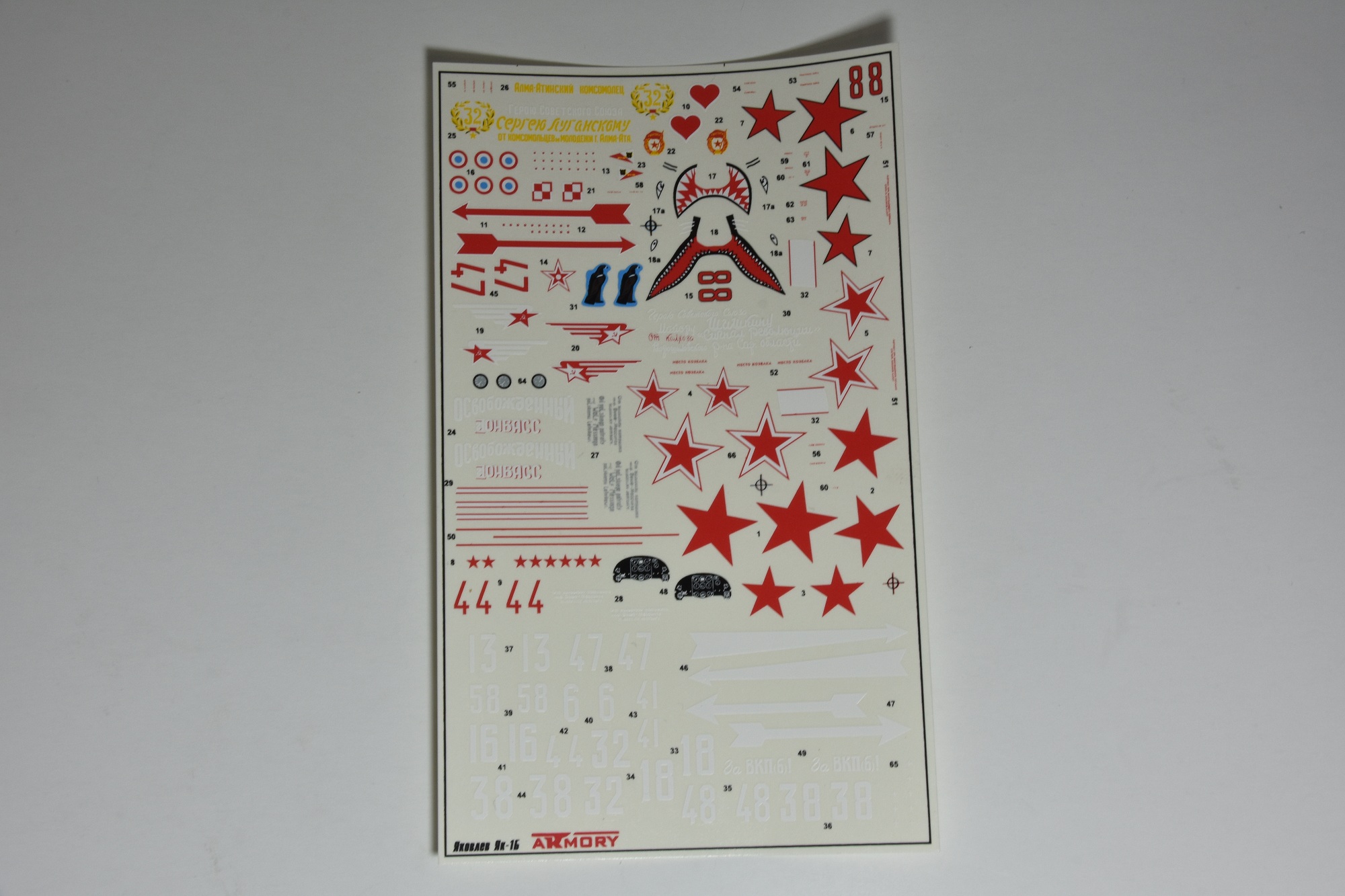 дека классная, косяков вроде нет. желтый цвет надписи для Луганского я бы рассматривал интересное разнообразие - у меня лично нет уверенности, что она была белой, как принято рисовать позднее. производителя даже просили выпустить её отдельно, но он "обещал подумать"... думаю долго думал) Арма нишу закроет теперь. да и фонарей бы таких я взял для переделки Амодела! стойки действительно хороши. два варианта хвостового колеса и кока - весьма приятный бонус. обтекатель маслорадиатора из двух частей - удачное решение, проще заменить на прямой ВЗ раннего типа. за сколько брали и когда?