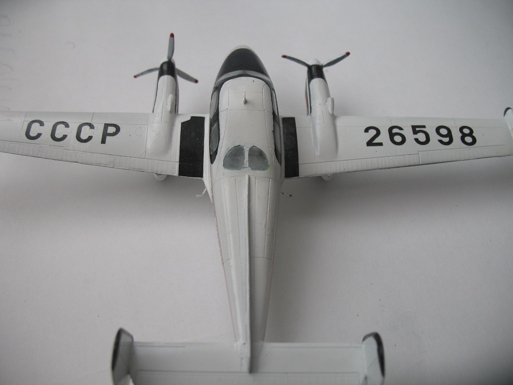 Давно хотелось собрать модель этого самолета так коротко промелькнувшего в нашей гражданской авиации. И именно в ливрее Аэрофлота. Такая возможность мне недавно предоставилась.Модель собиралась неплохо.Но нос и мотогондолы пришлось хорошо и под предел загрузить свинцом.Хотел затонировать зеленоватым лаком стекла кабины но потом отказался-не понравилось.Окраска Тамия,декаль от Алексея Бацких.