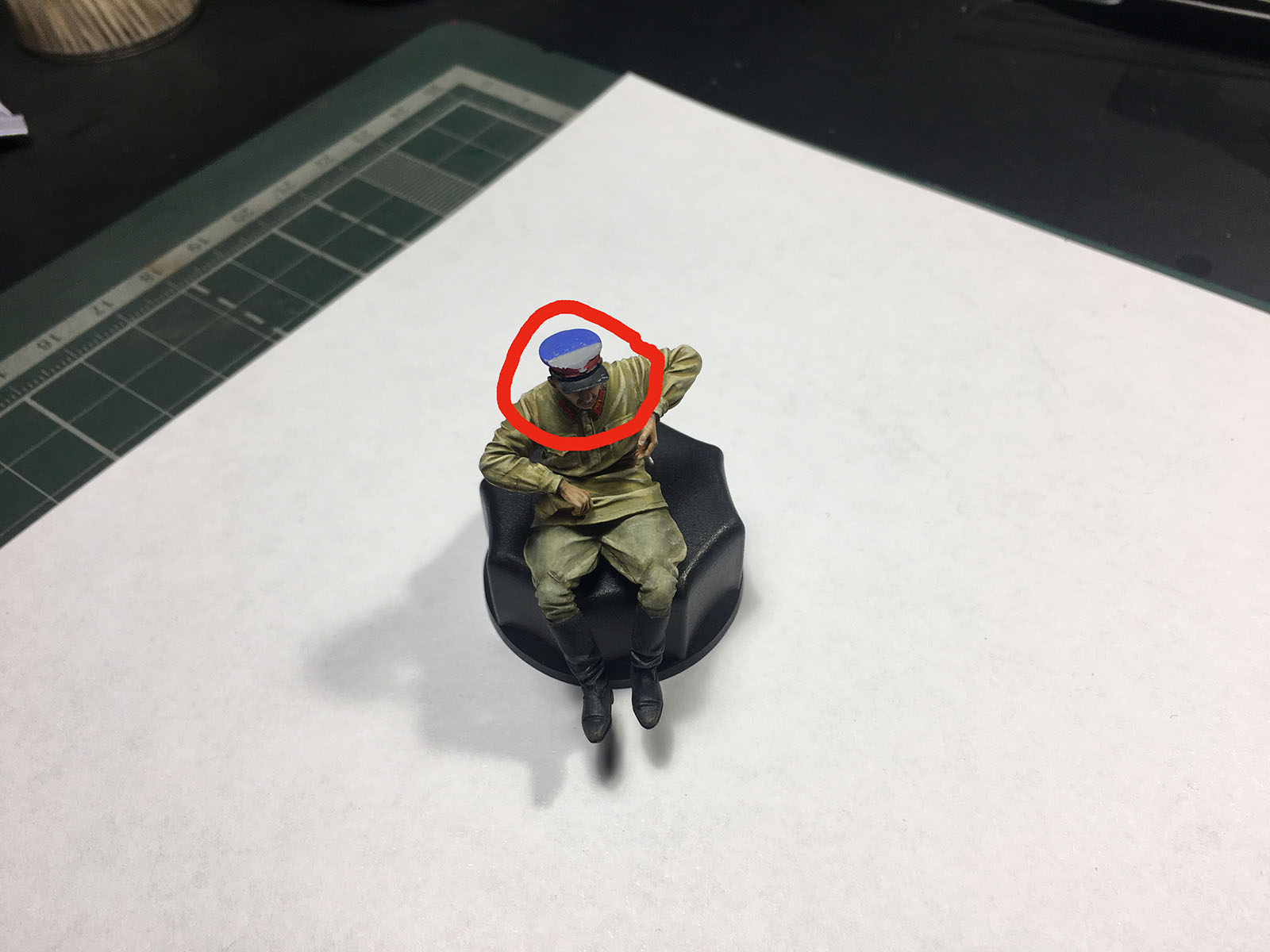 переделывать не стал, очень устал с ними, не ругайте. Из доработок, немного проводки в двигатель, ремень, в наборе толстоват, сделал из скотча тамиевского. Фигурки у evolution супер, но есть одно большое НО, фигурка ВОДИТЕЛЯ фуражкой упирается в потолок, поэтому срезаем большой кусок фуражки(последнее фото), по другому никак. Обратите внимание, ноги почему-то у него в подвешенном состоянии)), хотя после того как я отрезал и отшлифовал фуражку, сел как влитой. Про автомобильный 2k лак прочтите статью пользователя под ником ekha, там все грамотно и пошагово описано, мне она очень помогла. Сам 2k лак тоже очень понравился, хотя я на youtube подписан на канал Маленький гараж, мастера зовут Андрей, он материт этот автомобильный 2k лак, думаю попробовать на след. Модели уже модельный 2k лак. Ну вроде все, что я хотел вам рассказать. Приятного просмотра.
