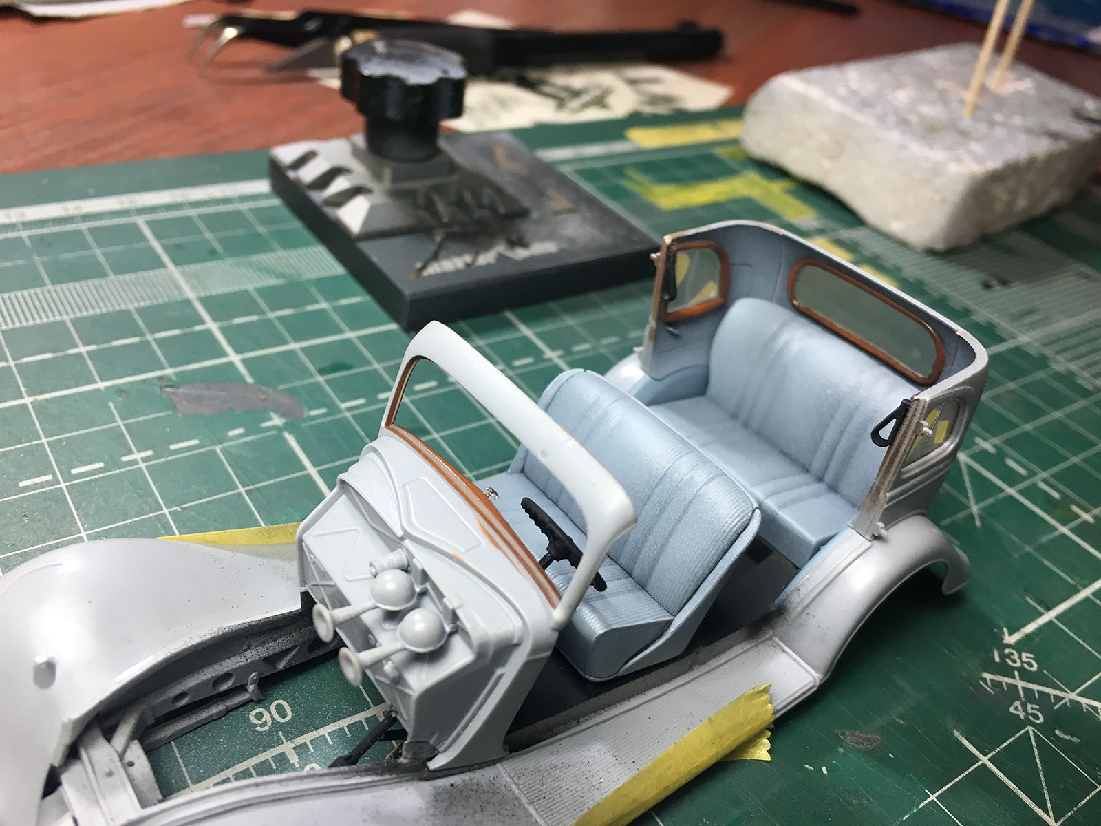 Круто вышло! Единственное, стоило бы под водителем сиденье сточить. Оно ж мягкое, а он на нём как на деревянном сидит) Вообще не промялось.