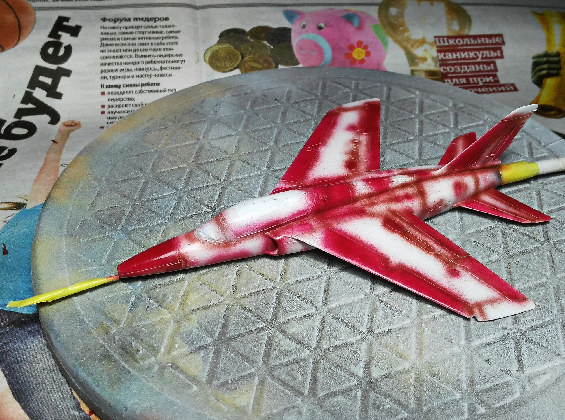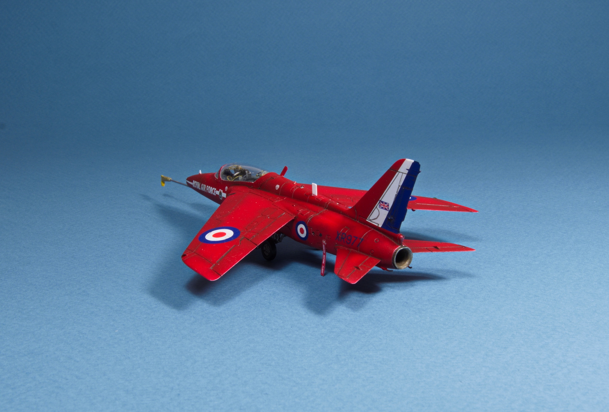 Здравствуйте, коллеги! Хочу продемонстрировать вам свою модель британского УТС Folland Gnat в схеме окраске британской пилотажной группы Red Arrows.