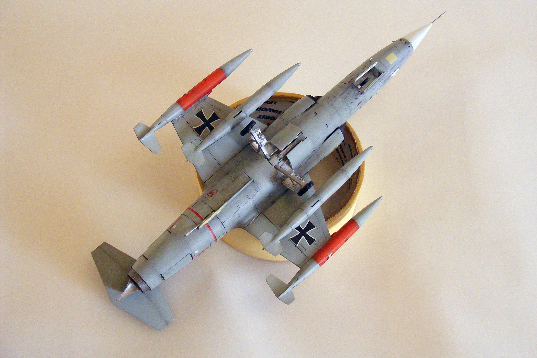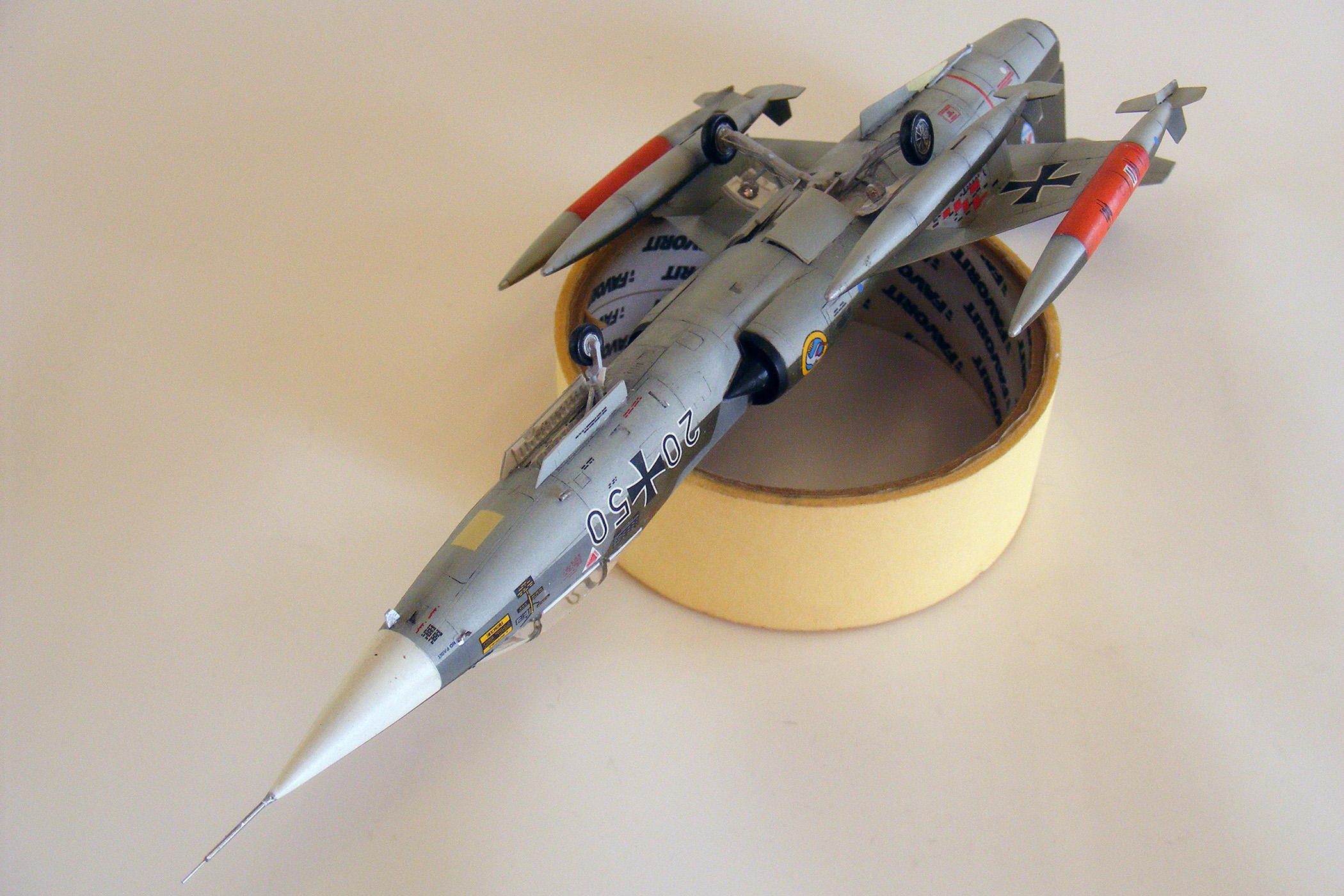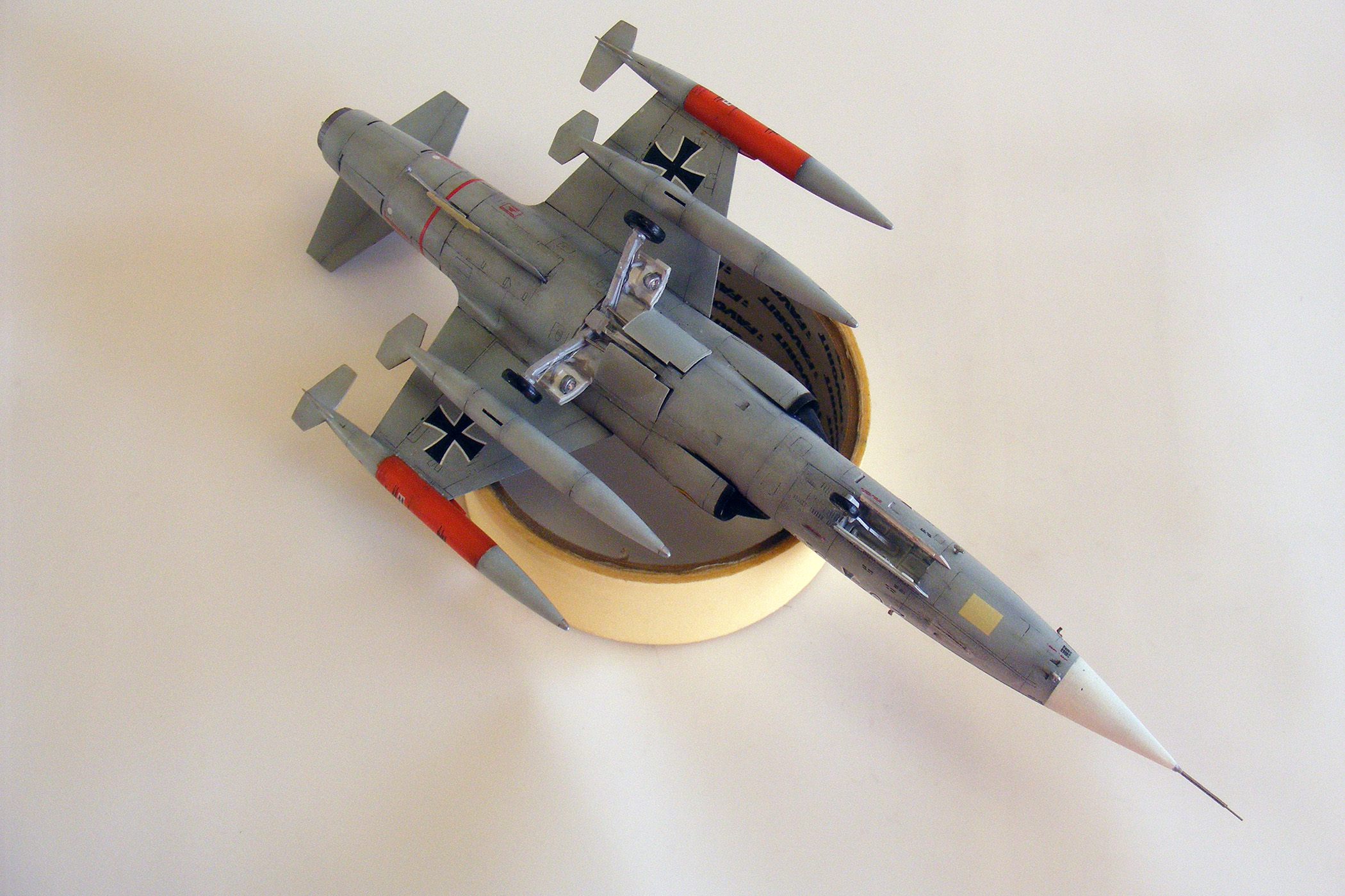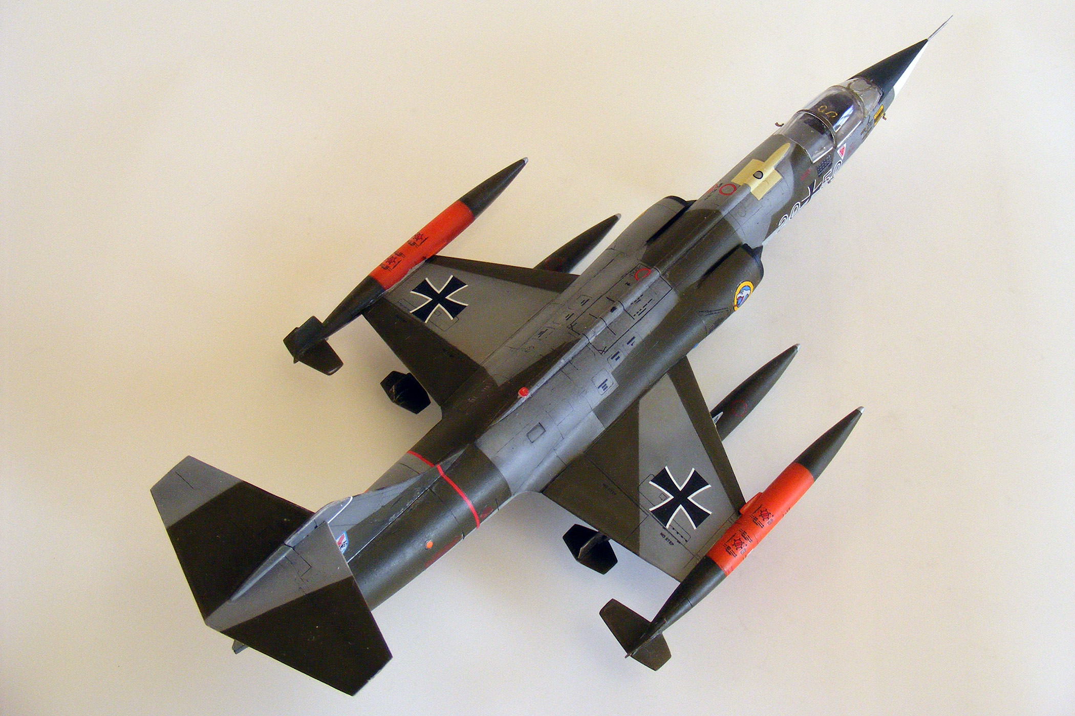 Доброго времени суток, уважаемое сообщество! Представляю очередную свою модель - "Бескрылое чудо" - F-104G Starfighter. Очень давно хотел заиметь его себе в коллекцию, именно с крестами Бундеслюфтваффе. Описывать историю появления "Старфайтера" в Европе не вижу необходимости, замечу только, что JaboG-31 стала первой частью ВВС ФРГ, получившей на вооружение новый самолет. Командовал эскадрой в этот период известный ас второй мировой Герхард Баркхорн. Конкретно данный борт был выпущен в Штатах, первый полет - 13.06.1962, в декабре 1964 года получил окраску по схеме "Норма-62". 12.09. 1968 совершил аварийную посадку в Леувардене, отремонтирован. Эксплуатировался в Бундеслюфтваффе до конца 1984 года, общий налет - 3596 часов. В мае 1985 года передан в ВВС Турции, больше не летал, использовался , как источник запчастей. Списан 13.09.1989 года.