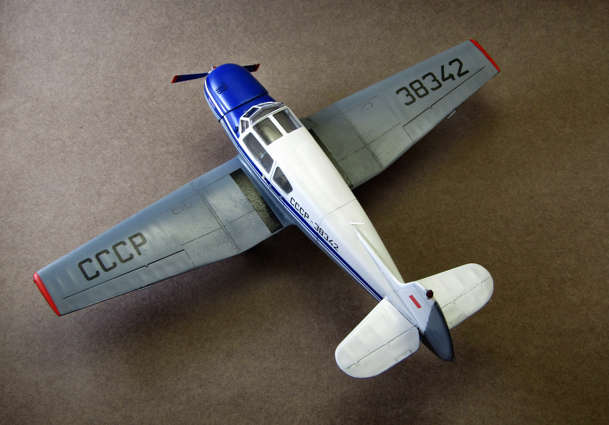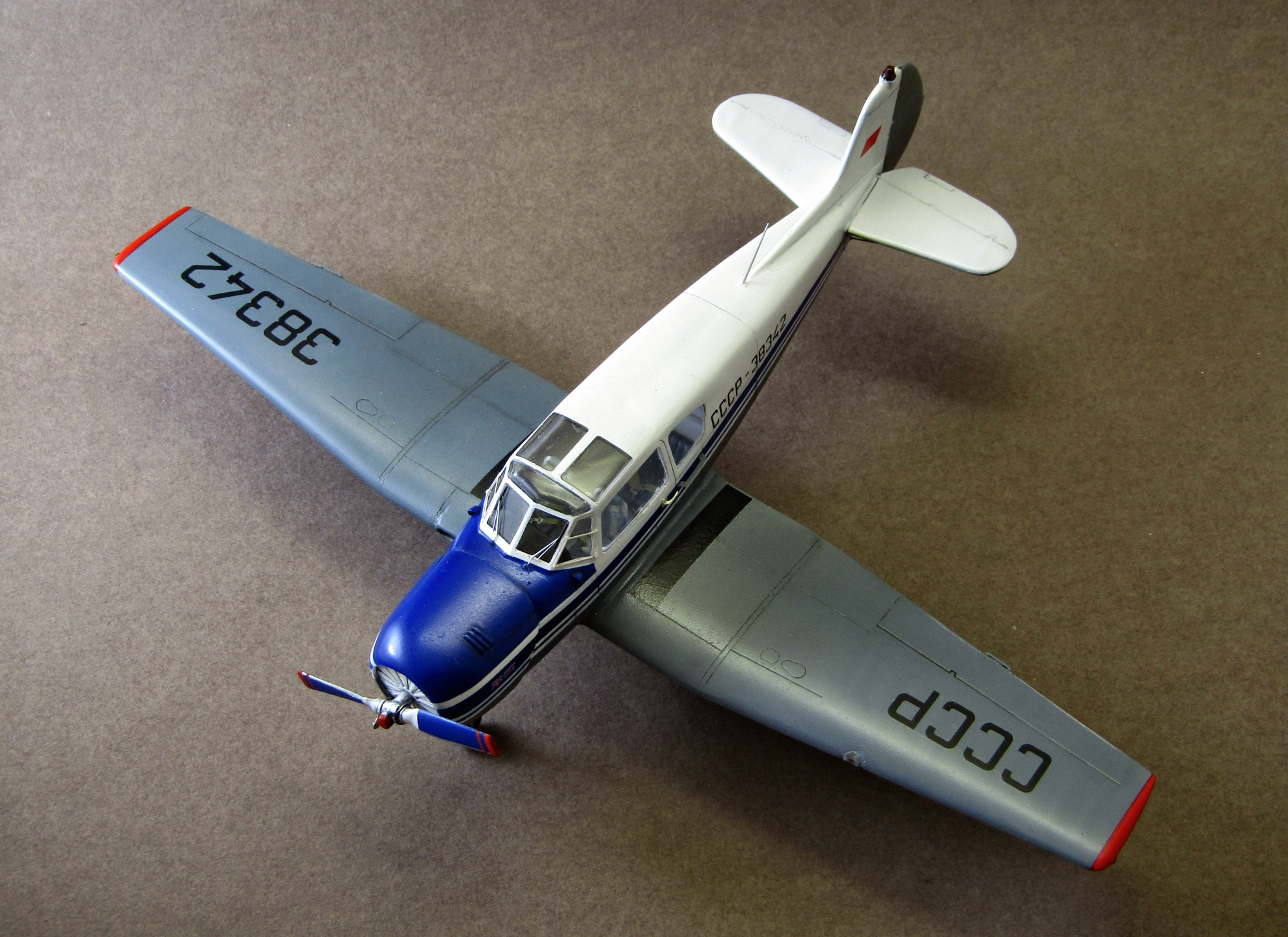 Приветствую коллеги! Представляю ещё один аппарат из семейства Яковлевых в 48 масштабе. Набор очень понравился, для Амодела я бы сказал качество замечательное. В процессе сборки дорабатывал набором травления от микродизайна, резиновыми колёсами от экипажа, самовыдавленными из прозрачного литника БАНО, АНО на киле, использовал маски от KV-models. Грунтовал серой ганзой 1500, красил тамией - серый акрил, белая и синяя эмали (полосы накрашивал сам так как боюсь декалей амодела) от Тамии. Смывал чёрной и серой смывками от Тамии, покрывал модель полуглянцевым лаком всё от той-же Тамии. Работа оставила только положительные эмоции. Приятного просмотра коллеги...