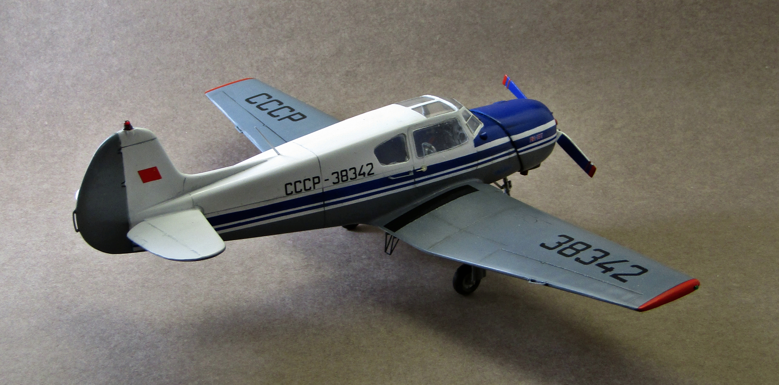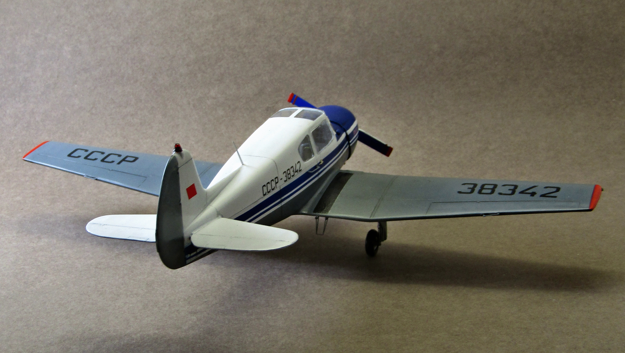 А где полосатый ПВД на левом крыле? почему на киле лампочка синяя?