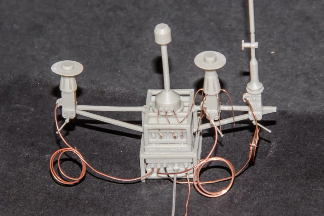 Смоляные детали выглядят отлично, грани острые, пузырьки и утяжины отсутствуют. Современные технологии 3D-печати и смоляного литья позволили создать ажурные детали конструкции – струбцины крепления антенн и растяжки. Ребра охлаждения на передатчиках достаточно тонкие, выглядят масштабно и даже имеют выемки с болтами, скрепляющими блоки.