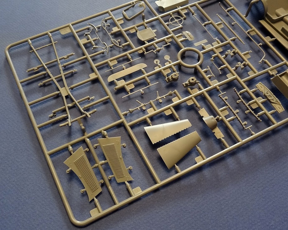 Набор порадовал хорошей детализацией. Явный брак, следы от пресс-форм, каких либо искривлений/недоливов деталей не обнаружено. Следы толкателей присутствуют на внутренней стороне деталей. На некоторых деталях есть небольшой облой. Двери в фургон и в салон автомобиля можно сделать открытыми. В наборе дан силовой агрегат - следовательно его можно показать откинув вверх крышку капота.