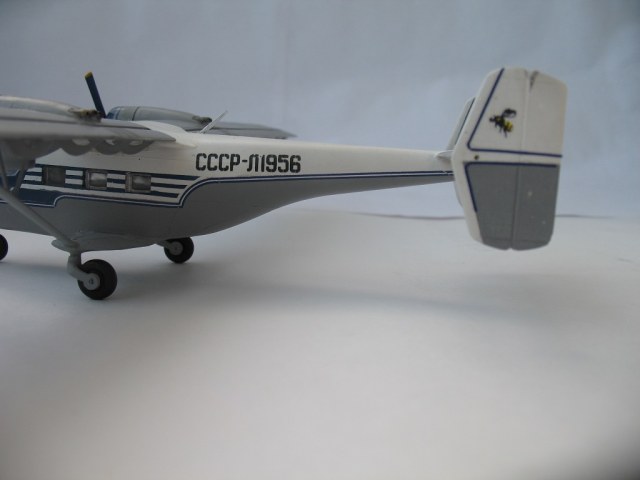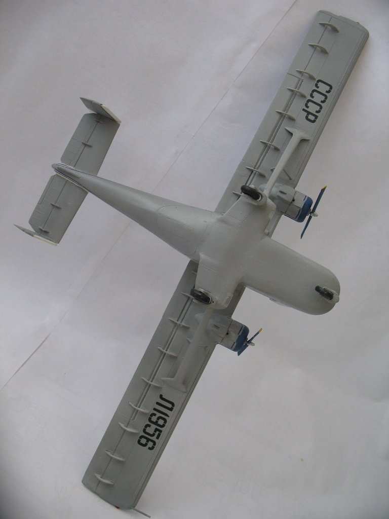 Александр, Вы правы - проще всего доделать имеющееся. Но совсем бескровно все же не получится. Если принимать за основу синий цвет, то придется прежде всего поменять бортрегистрацию на СССР-Л1958, а название самой модели на ПЕРВЫЙ опытный. Впрочем, перед этим придется все же подправить всю окраску и на фюзеляже - она гораздо более детализирована, имеет много тонких-тонких полосочек. Винты, кстати, можно оставить. Позже этот самолет летал с двухлопастным винтом без кока - как у Вас. Только лопасти черные. Но вдобавок придется на носу нанести надпись "Аэрофлот" и птичку. Прямо на носу. Доделать кили - убрать картинку пчелки, которая была только на втором и третьем прототипах, а вместо нее нанести недостающие элементы. Ну, и другие особенности (например, носовая фара, вписанная в контур фюзеляжа). То есть, выходит, без большой перекраски, как ни крути, не обойтись. Прекрасно понимаю, что сейчас, едва закончив модель, нужного вдохновения на переделку, пожалуй, не найти. Впрочем, торопиться ведь некуда, а к этому вопросу можно будет вернуться тогда, когда вновь появится нужный настрой.