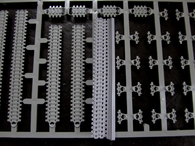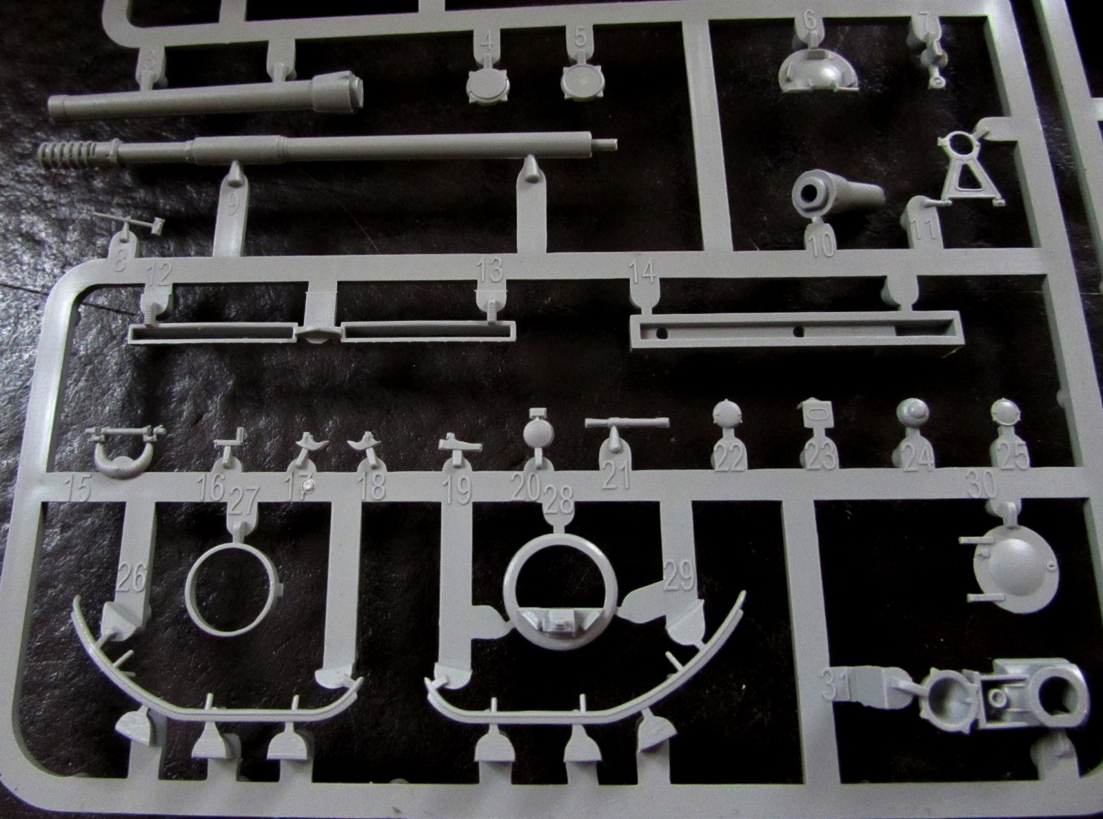 Во-вторых, это очень похожая на Звезду 1/72 практика дробить и членить в деталях то, что вообще не стоило бы расчленять- ряд мелочевки, закругления на корме, ствол, ходовые "блоки-бензобаки". Ник чему хорошему при сборке это не приведет. Причем, что самое интересное, навариваемые противокумулятивные экраны отлиты вместе с корпусом - хотя это будет минусом лишь для одного моделиста из сотни.