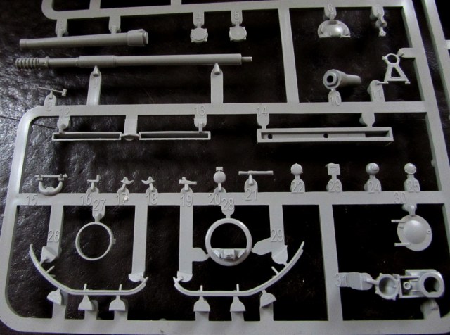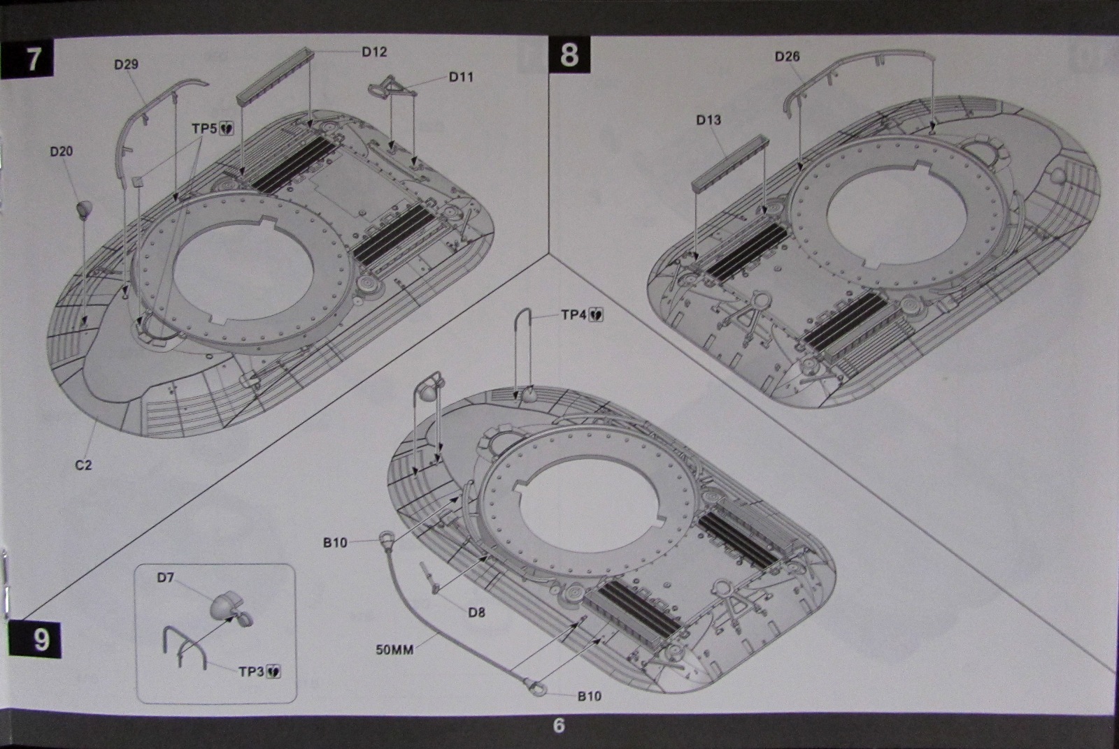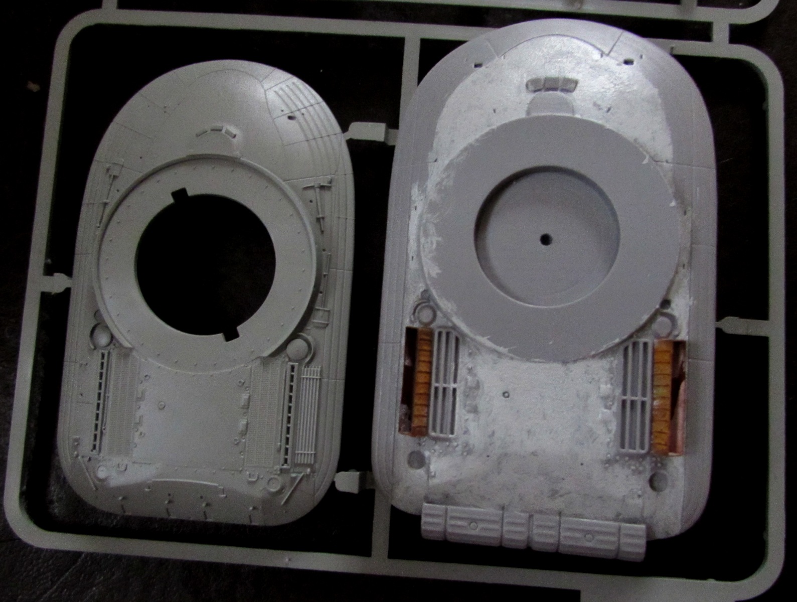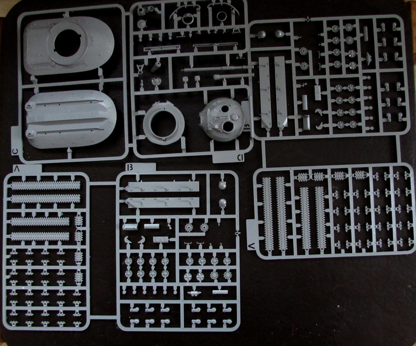 Во-первых, ОЧЕНЬ странный пластик. Я имел в свое время дело с моделью 1/35 от Такома (собирал Сен-Шамон), и так пластик был хоть и не очень хорошо местами стыкующийся, но хороший и по качеству, и по удобству обработки. Этот же пластик похож на худшие образцы от Трумпетера - ломкий, хрупкий, заходящий питателями литника на детали. Из-за хрупкости его очень трудно зачищать, трудно отделять от литника, не заработав "рытвин" на деталях. Но если с корпусом и башней это не критично (в первом случае лечится шпатлевкой, во втором - закроется фактурой литья), то в случае с мелкими и рельефными деталями типа люков и мелочевки это критично - вы физически не зачистите это до конца. Даже использование шлифовальных насадок не исправит местами ситуацию полностью.