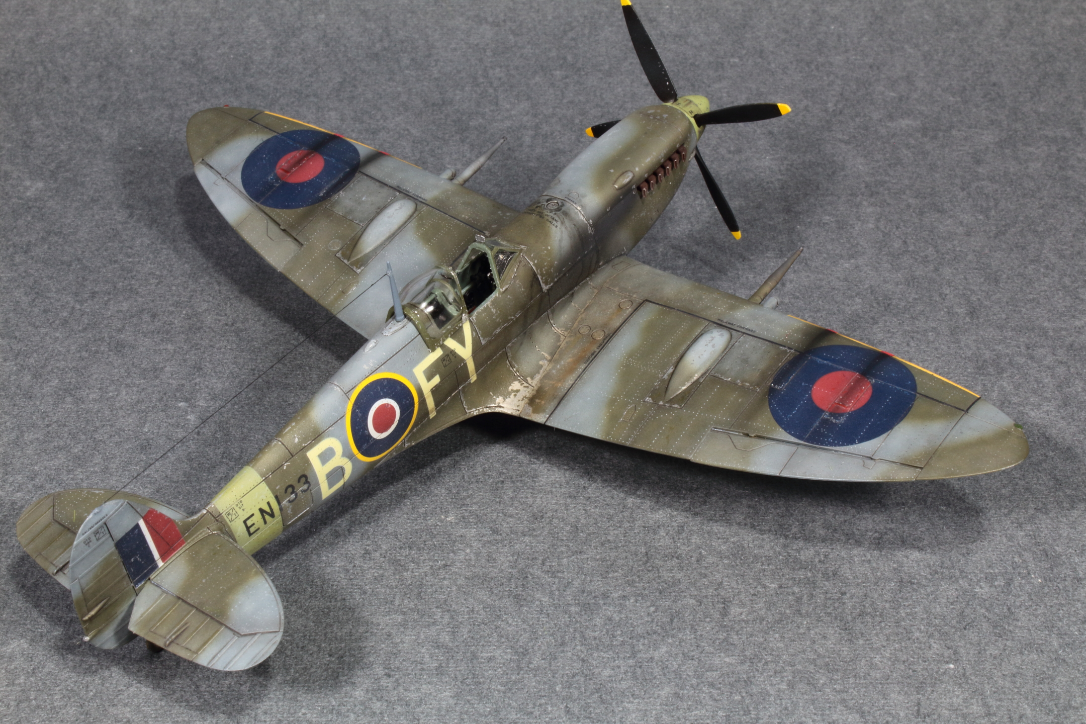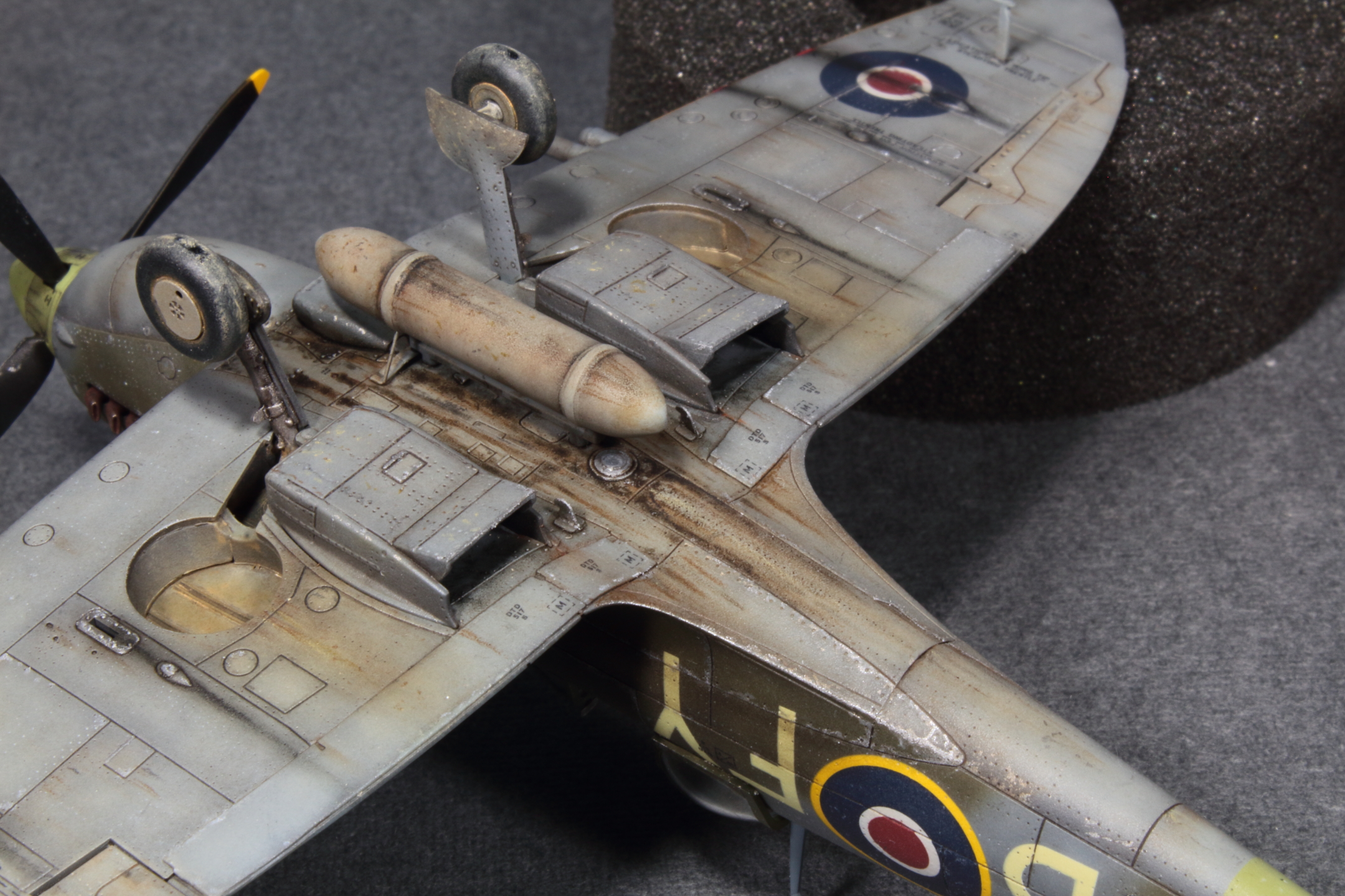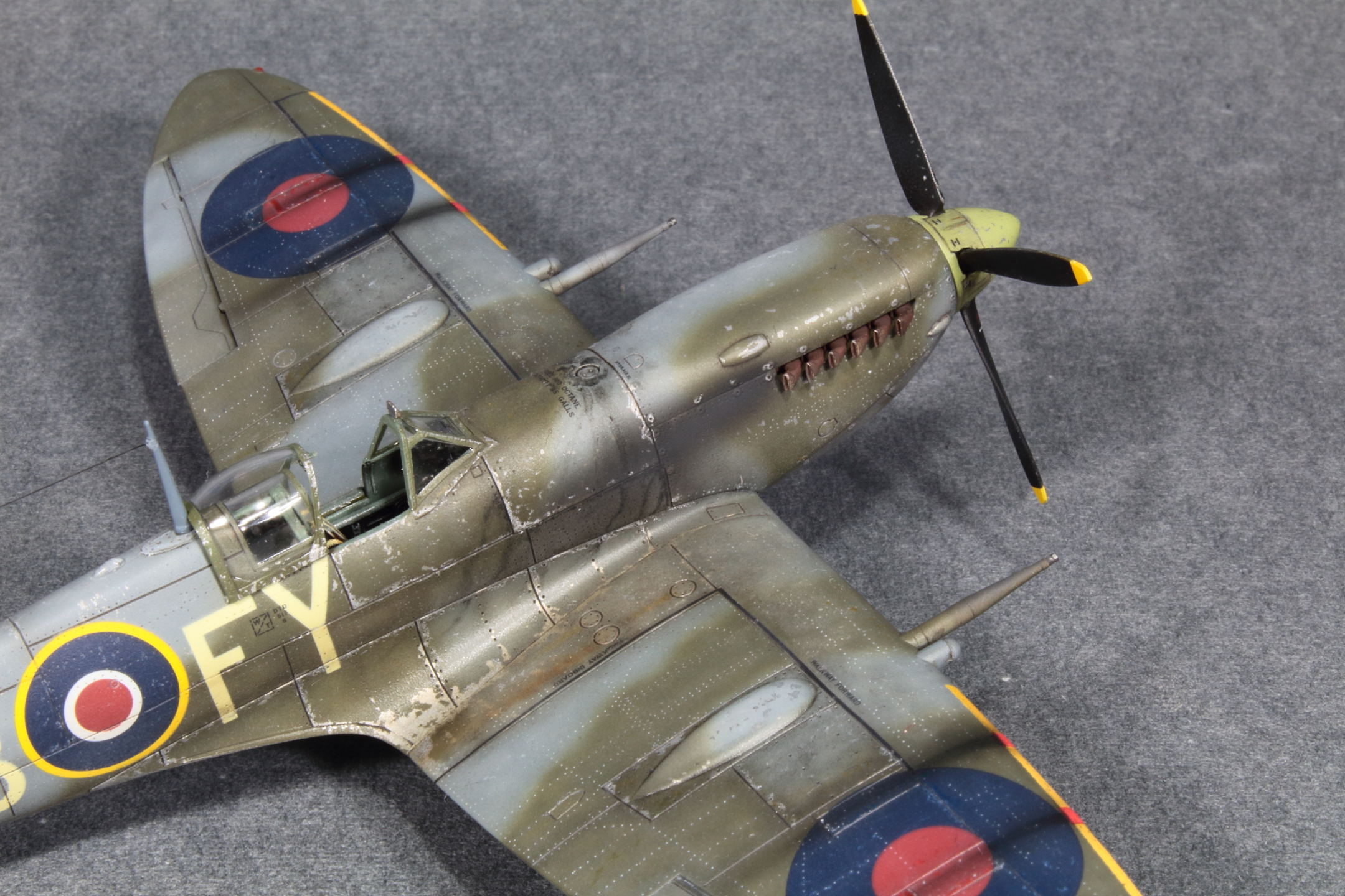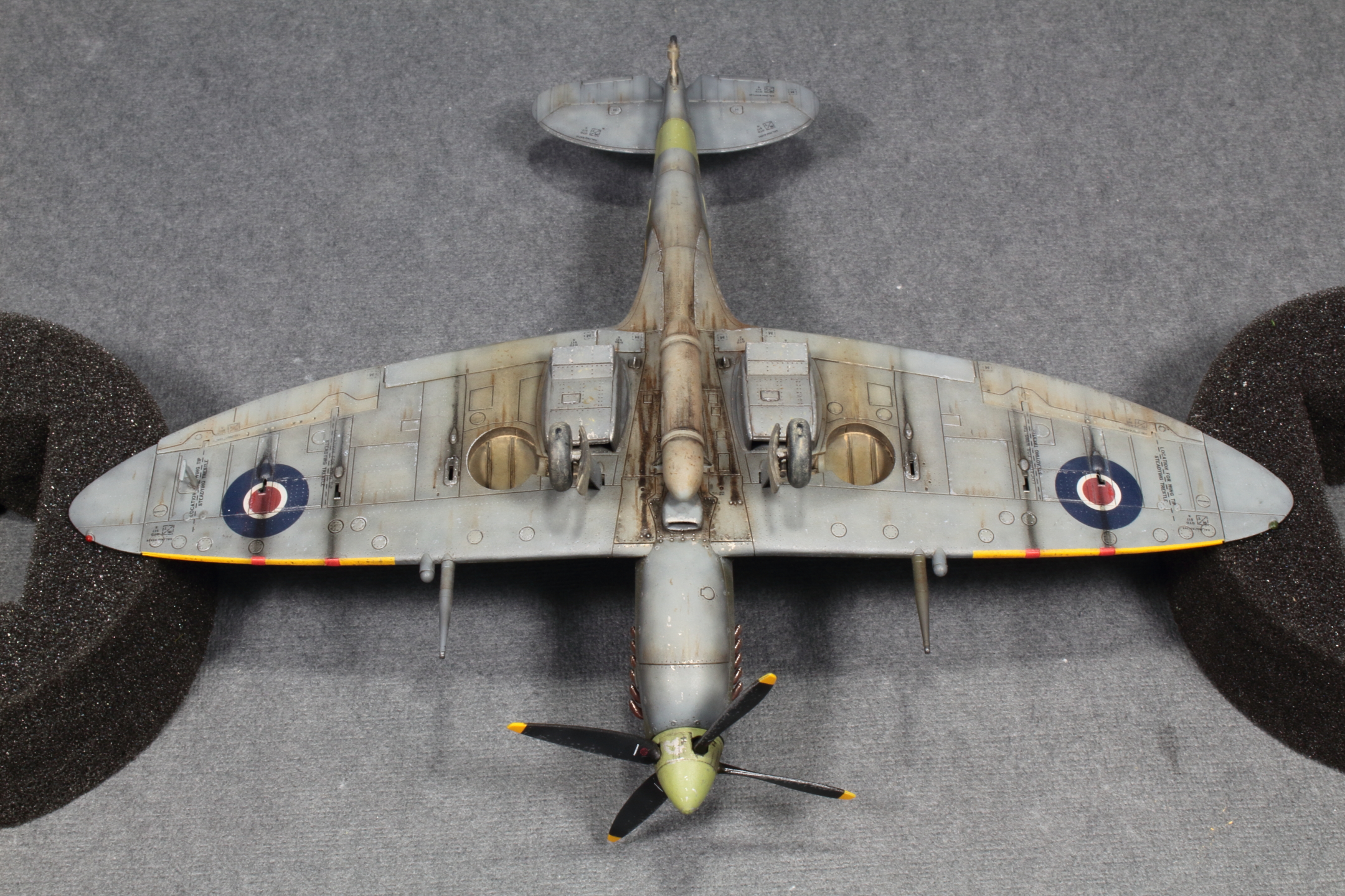 Странно, для спита с крылом С характерен узкий наплыв сверху крыла,т.к. в крыле расположены всего две 20-мм пушки "Бритиш Испано" МкII,а на модели этот наплыв широкий ?...