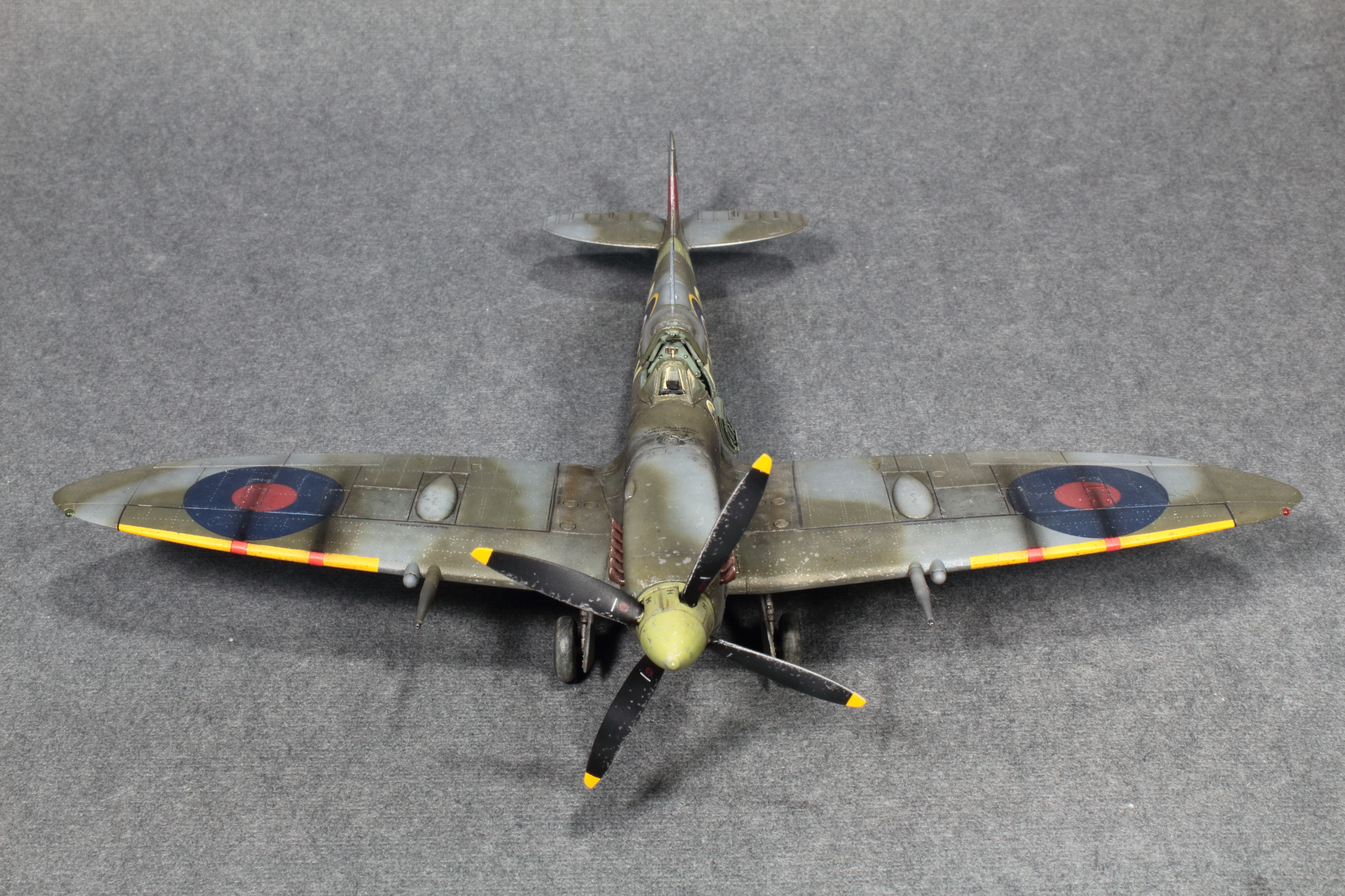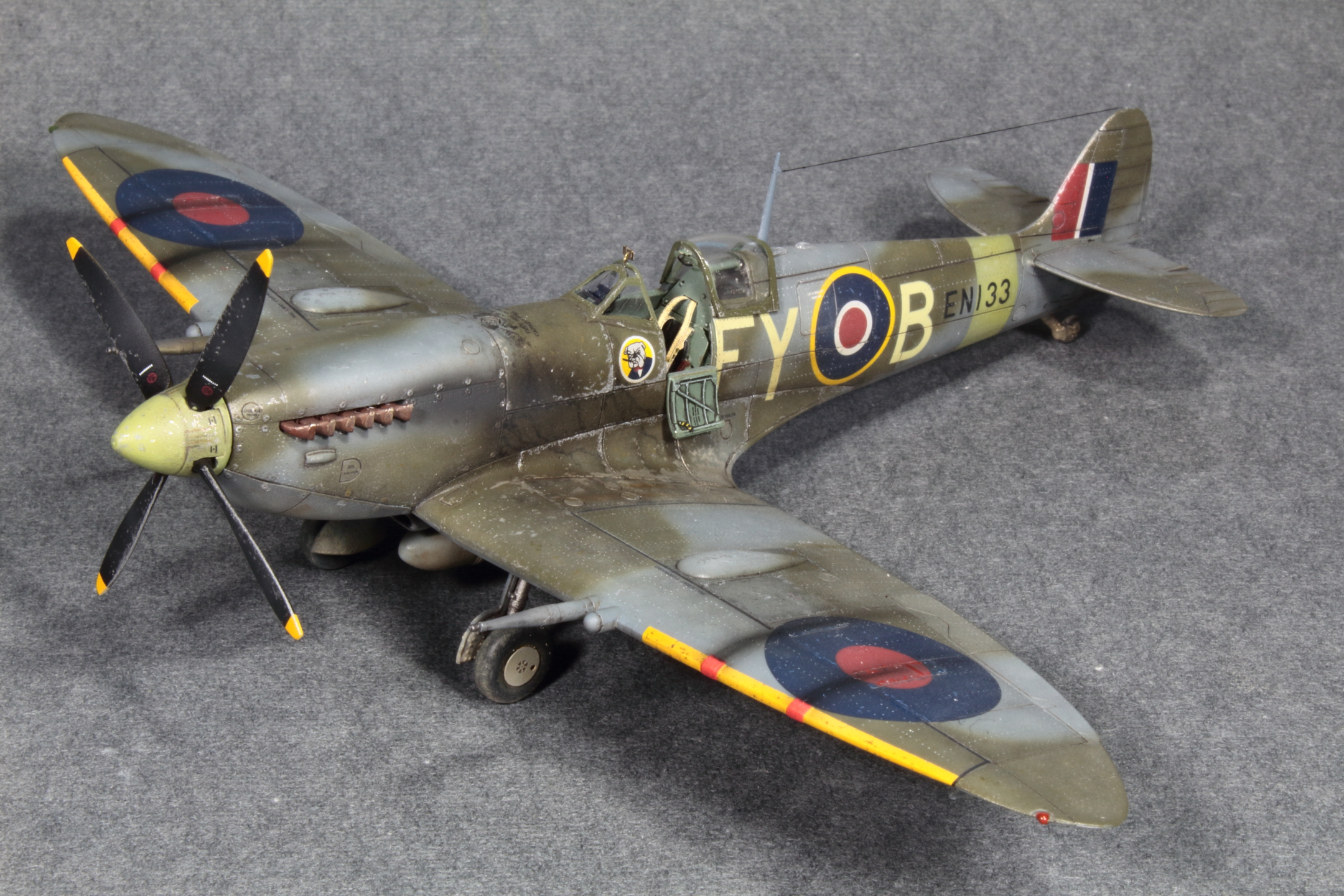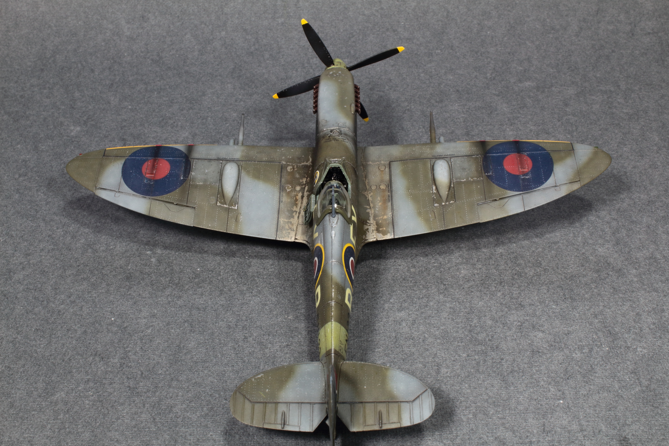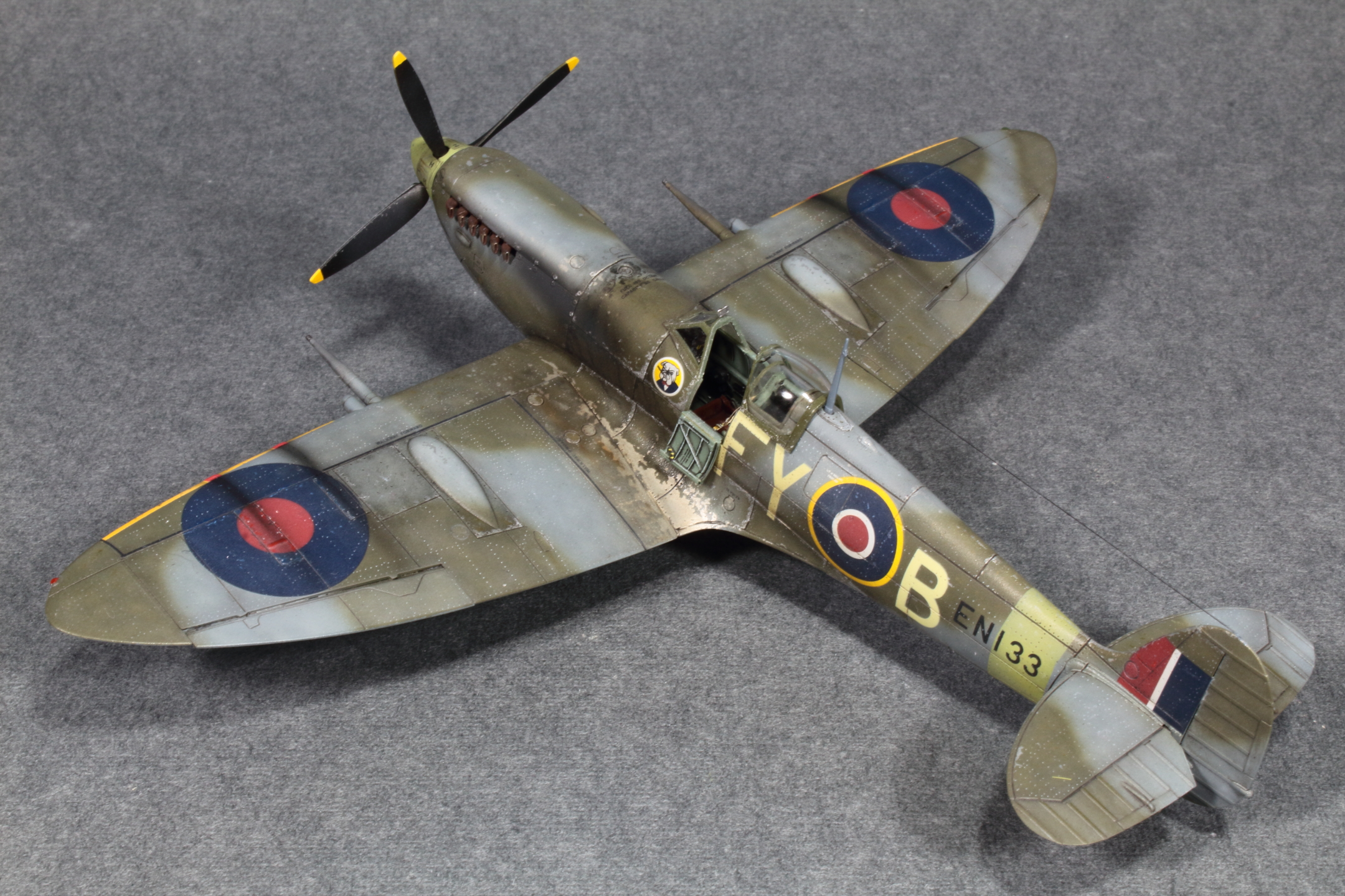 Странно, для спита с крылом С характерен узкий наплыв сверху крыла,т.к. в крыле расположены всего две 20-мм пушки "Бритиш Испано" МкII,а на модели этот наплыв широкий ?...
