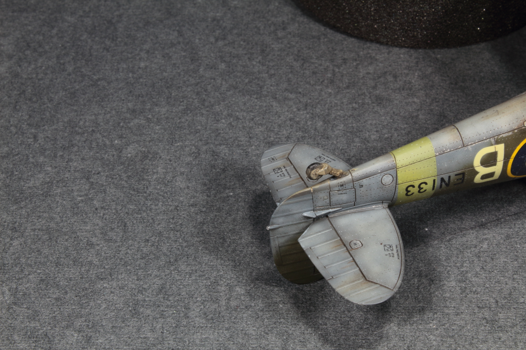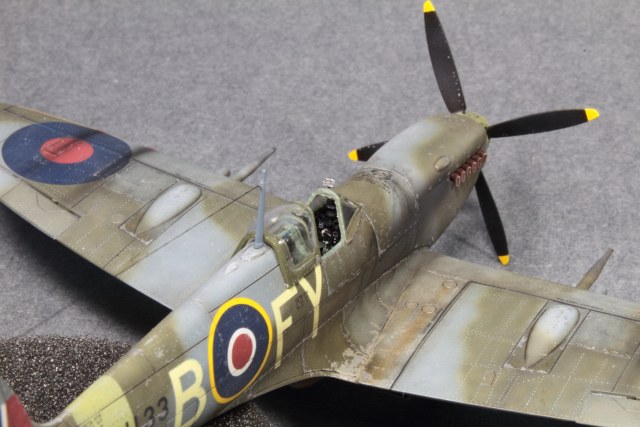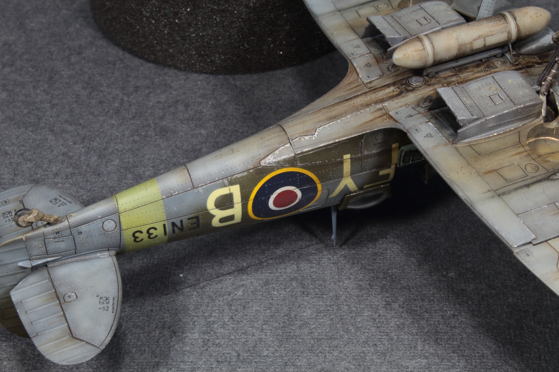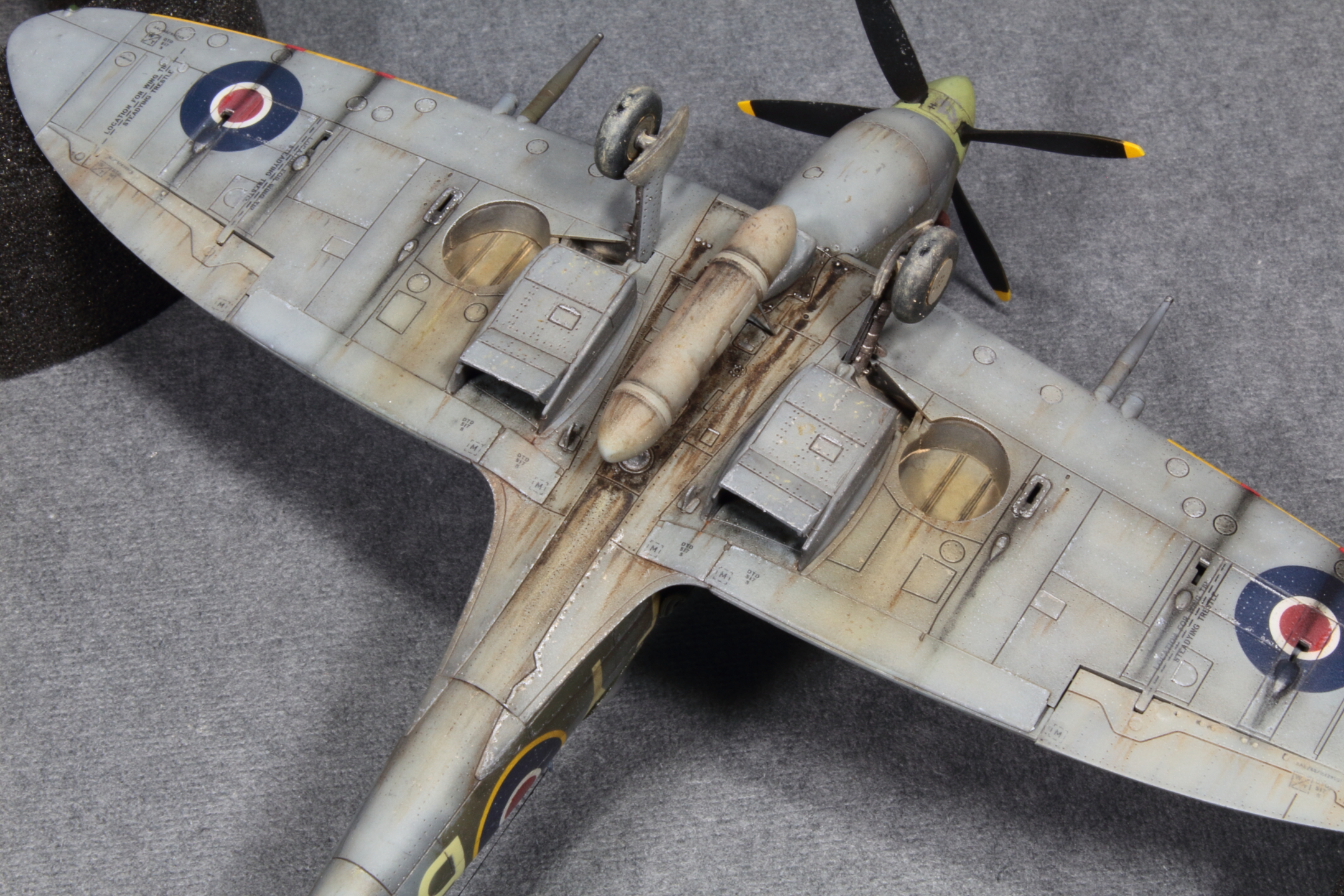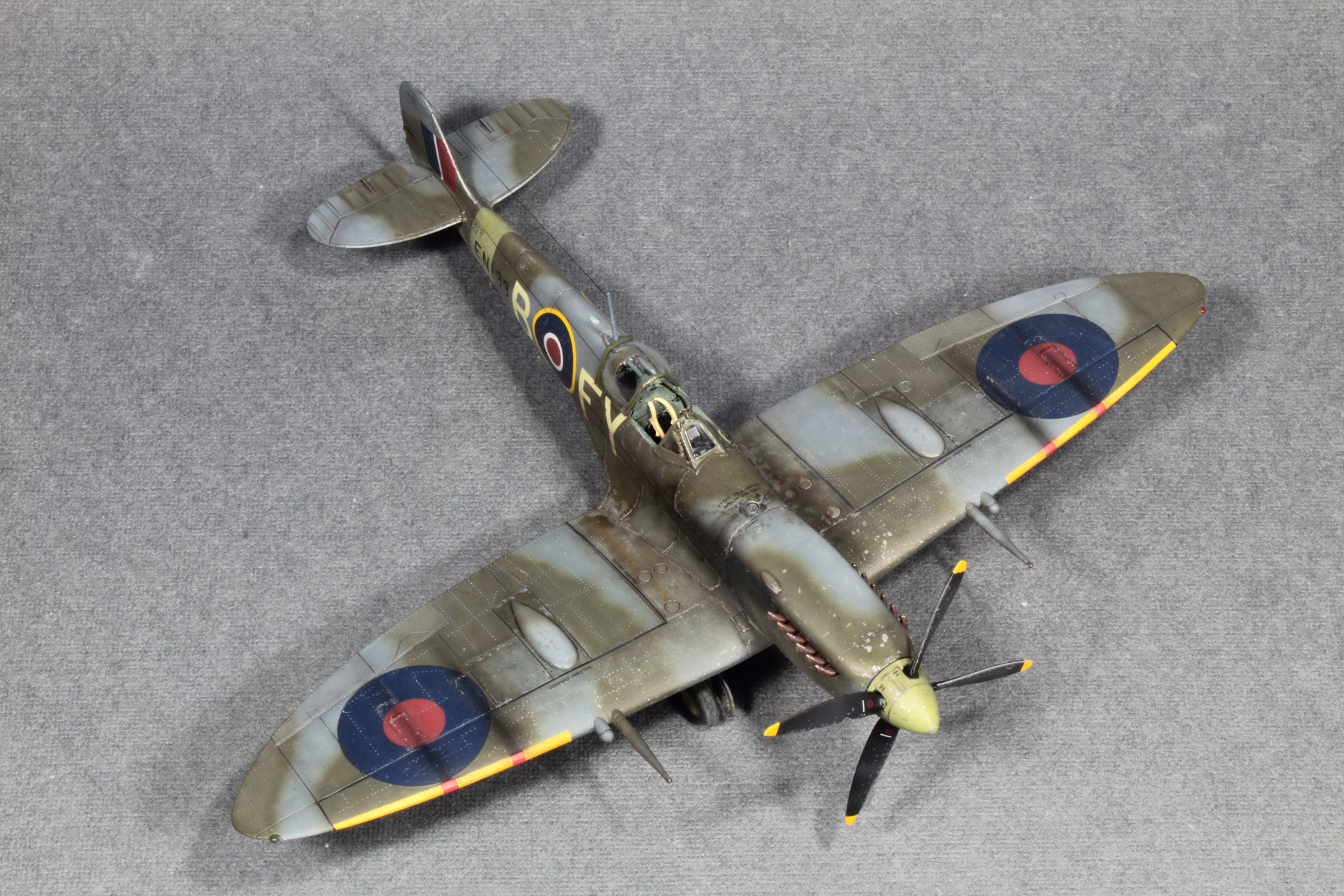 Странно, для спита с крылом С характерен узкий наплыв сверху крыла,т.к. в крыле расположены всего две 20-мм пушки "Бритиш Испано" МкII,а на модели этот наплыв широкий ?...