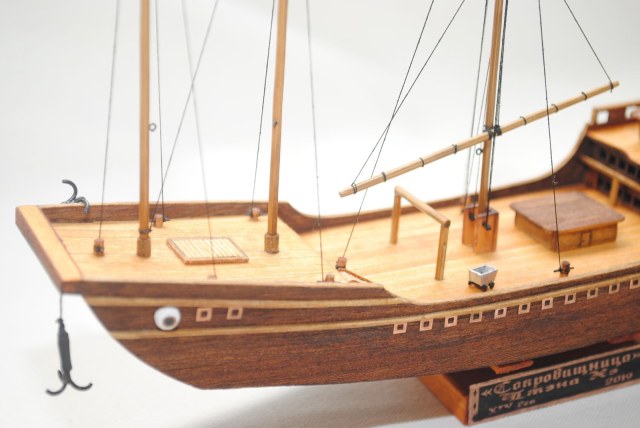 Антон, привет! Спасибо за отзыв. С парусами у меня не получилось, "не вывез" масштаб, все таки 1 к 550 для меня оказался крутоват. Смотрелись они, скажем так, не очень, поэтому убрал. С окошками согласен,даже была попытка более темной морилкой пропитать, но побоялся - вытекала за рамки, поэтому оставил как есть. Ну а подставки у меня никогда не получались) Есть над чем работать в будущем, буду учитывать ошибки!
