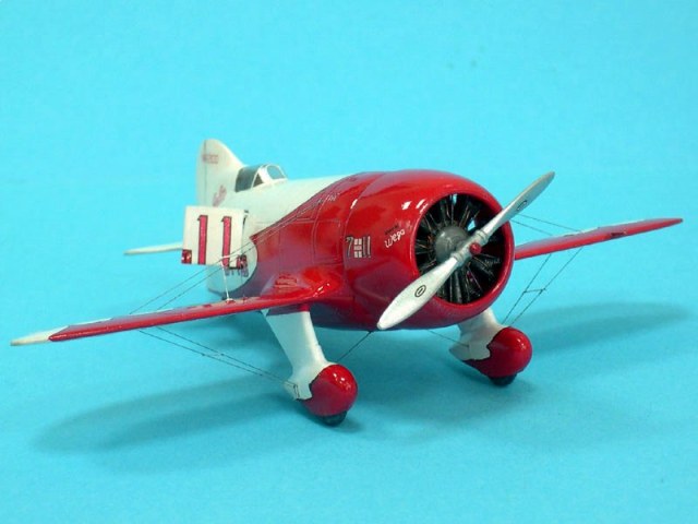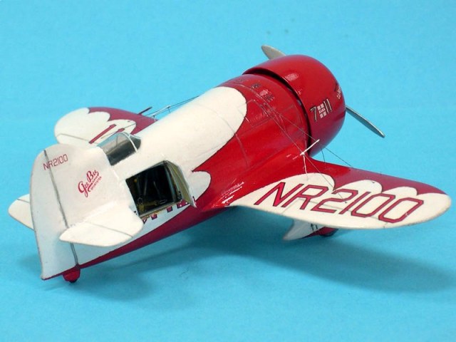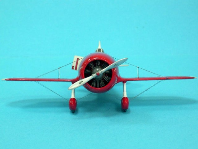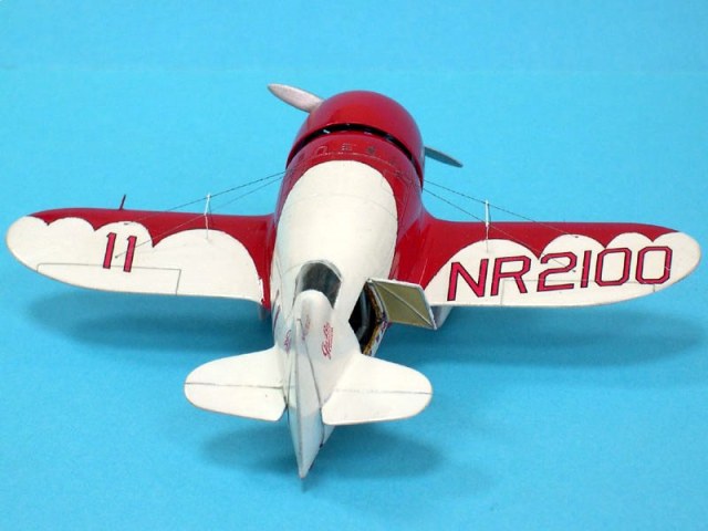 В кокпите из оригинального оставил только ферму.Сиденье — милипут;приборка — см рецепт в «Очумелых ручках»;ремни — тамия-скоч + проволока;рычаги — проволока с шариком из суперклея;колесико для стабилизаторов — из проволок.Двигатель оригинальный, добавил толкатели и проводку. Фонарь тянул сам, т.к. оригиналный ну очень плох(пресс-форма похоже «кривая»). Расчалки из ниток от ленточек-бантов. Провел по нитке аканом-сталью и получились комочки, в итоге нить вроде как стала похожа на плетенку. Дверь самодельная, так как оригинальная выглядела очень толстой.Красил по трафарету, сделаному на основании деки, т.к. колеровщик я слабый и в цвет деки не попаду. Разделение цветов(черная полоска) сделал изографом.Покрашено красками Modelmaster(белая) и Humbrol(красная). Покрашено со второго второго раза, так как после первого раза при снятии скоча почему-то очень много краски затекло под скоч, ПЛЮС ко всему на модели остался КЛЕЕВОЙ слой скоча. В итоге все задул глянцевым лаком Tamiya, чем похоже окончательно угробил гладкость и глянцевость краски.
