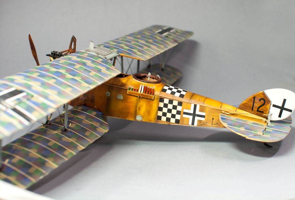 Летом я взял паузу, думал, что зуд пройдет, я сказал себе: занимайся танчиками, ну уж если припрет сделай какой-нибудь самик в 48, выдохни, не думай об этом больше. Я съездил в горы на месяц, а когда вернулся, то понял, что желание никуда не делось и в итоге купил кит от Wingnut wings, удовлетворяющий моим художественным предпочтениям: модель разведчика сочетала в себе те черты, которые я хотел воспроизвести: яркий камуфляж на крыльях и фюзеляж, похожий на платяной шкаф, эпохи развитого социализма