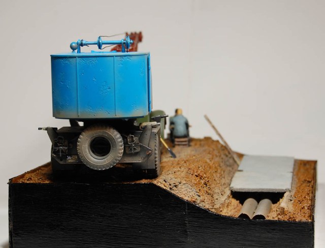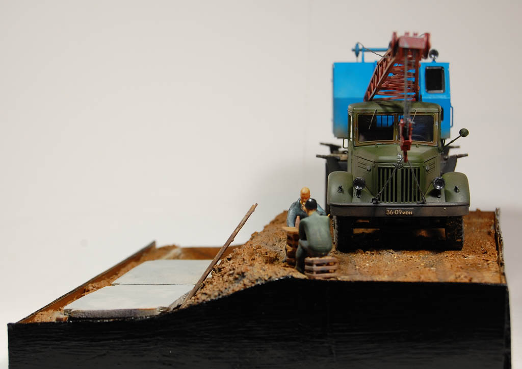 Здравия всем!Закончил Мазурика!)Результатом доволен!Диорама Обед.Использовались материалы:Набор АВД-автокран,рабочие-распечатаны на 3D принтере,плиты-подложка под ламинат,трубы-коктельные трубочки,основание-полистирол и смесь шпатлевки по дереву и песок.