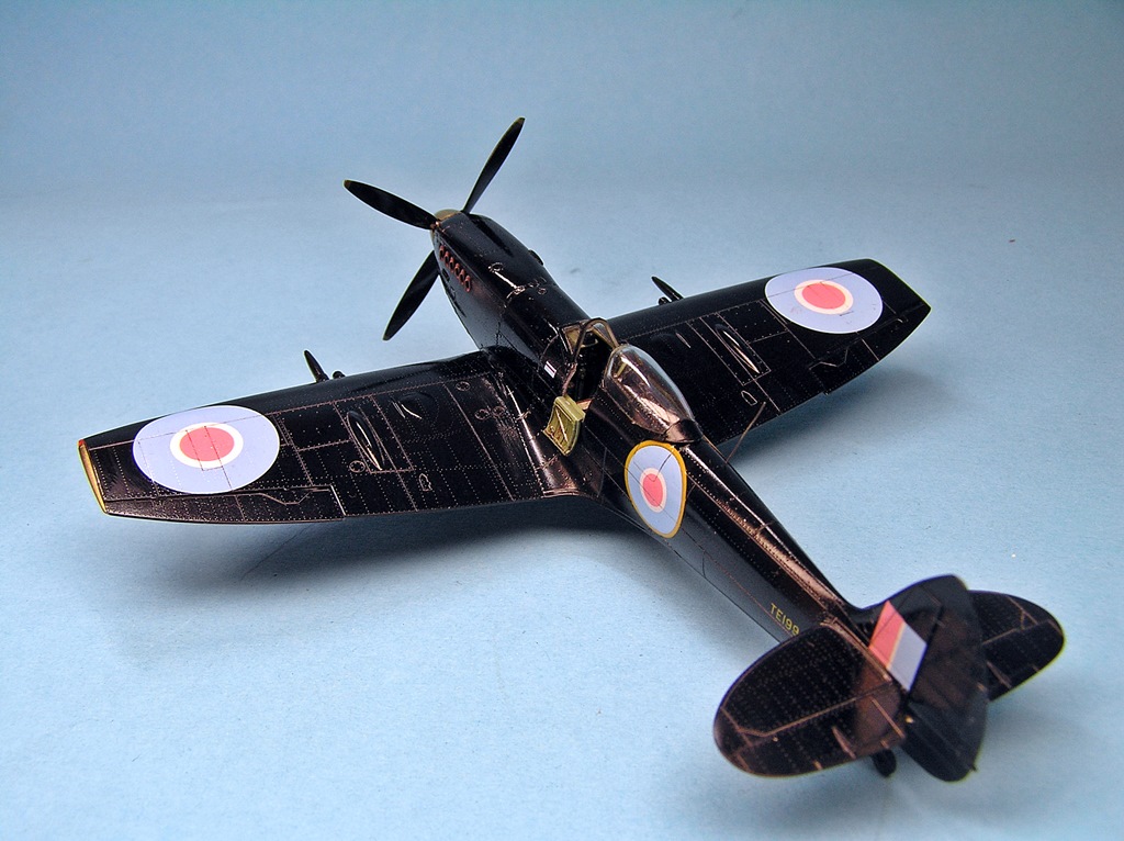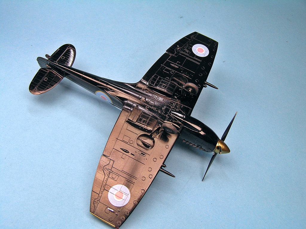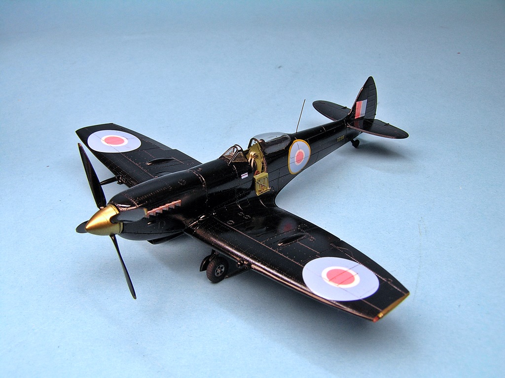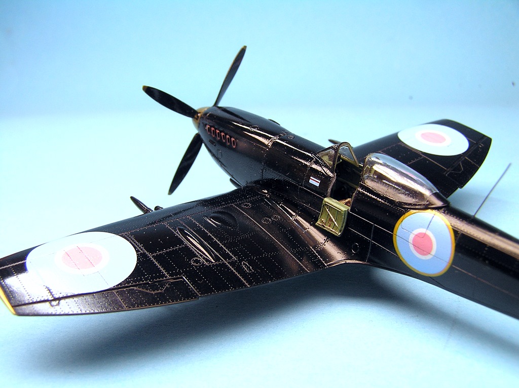 Дим, отличная и интересная работа. Поздравляю. Борь, на своем тоже стойки металл брал, они лучше. У этого Спита от Эдика фюзеляж и мелочевка на разных литниках. Если фюзель отлит эталонно, то литник с мелочевкой как будто по другой технологии сделан, там и клеп грубее, что-то типа хорошего ЛНД, так мне показалось. Я на свой еще патрубки смолу брал, а вот с капотом мучался и пожалел что смолу не взял. Мало того что он из двух половинок, так он еще на местоивстает со ступенькой в задней части.
