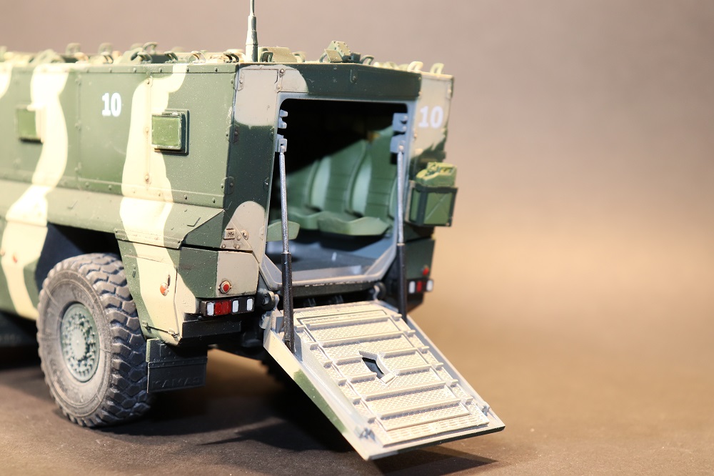 Добавьте антенну и металлические корпуса для светоотражателей, и модель заиграет по-другому. Кстати, я специально диски красил и лакировал несколько раз, но резина всё равно начала есть пластик. Тут хоть можно смолой отделаться, а вот с Rhino G6...