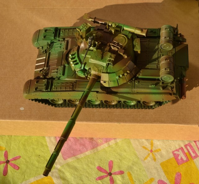 Закамуфлировал долго стоявшую модель "реактивного" Т-80 с дизельным движком.