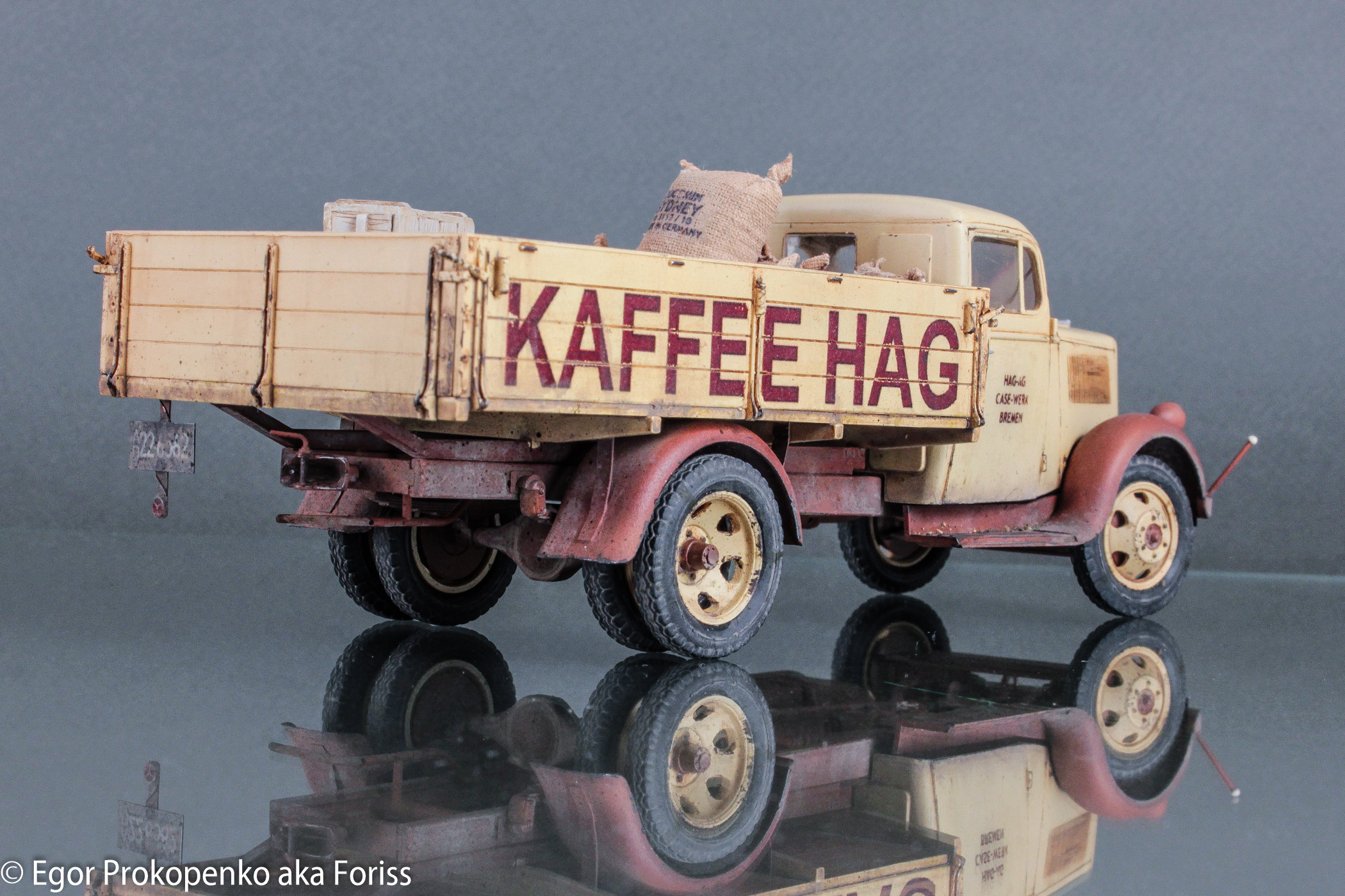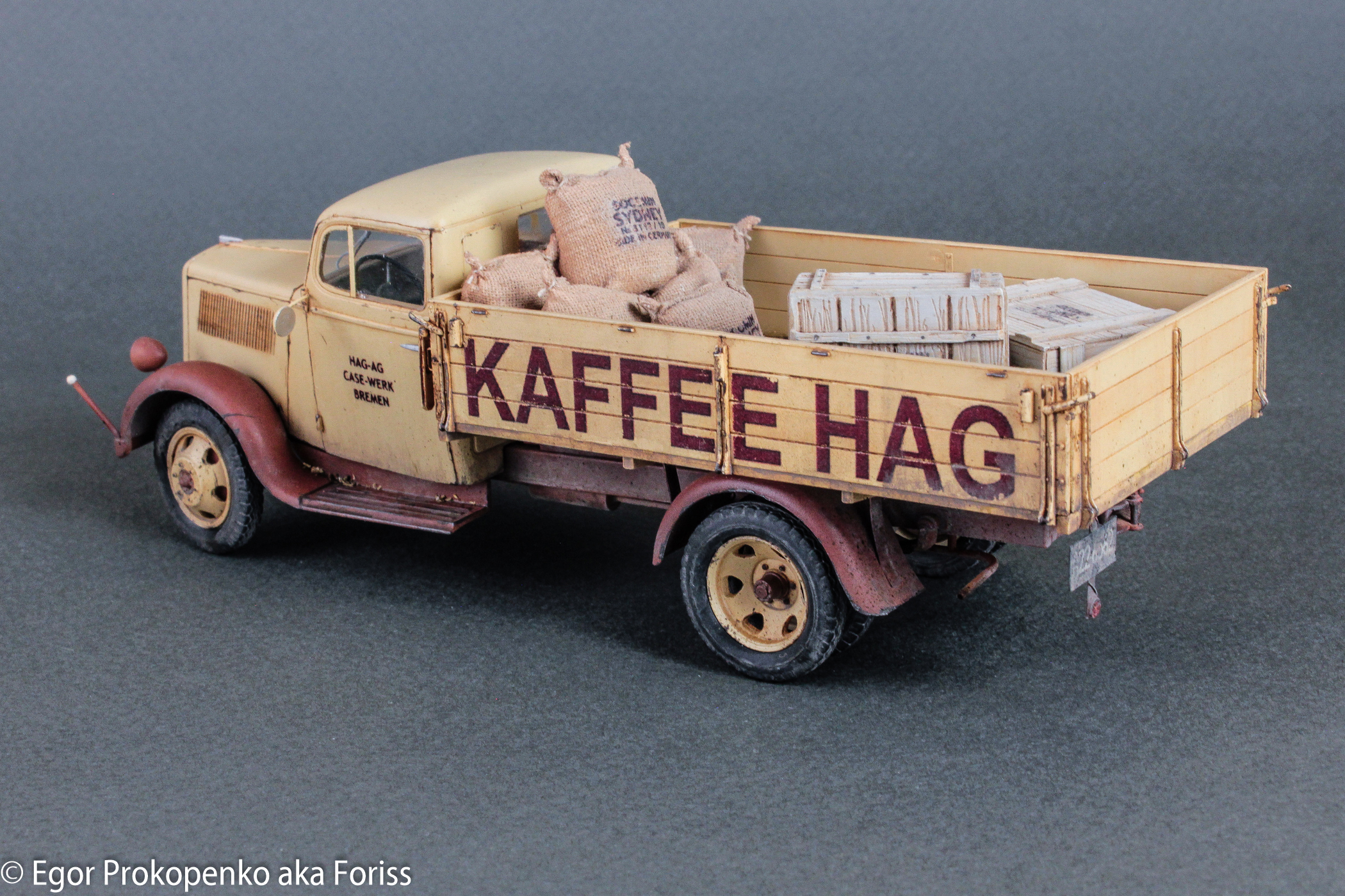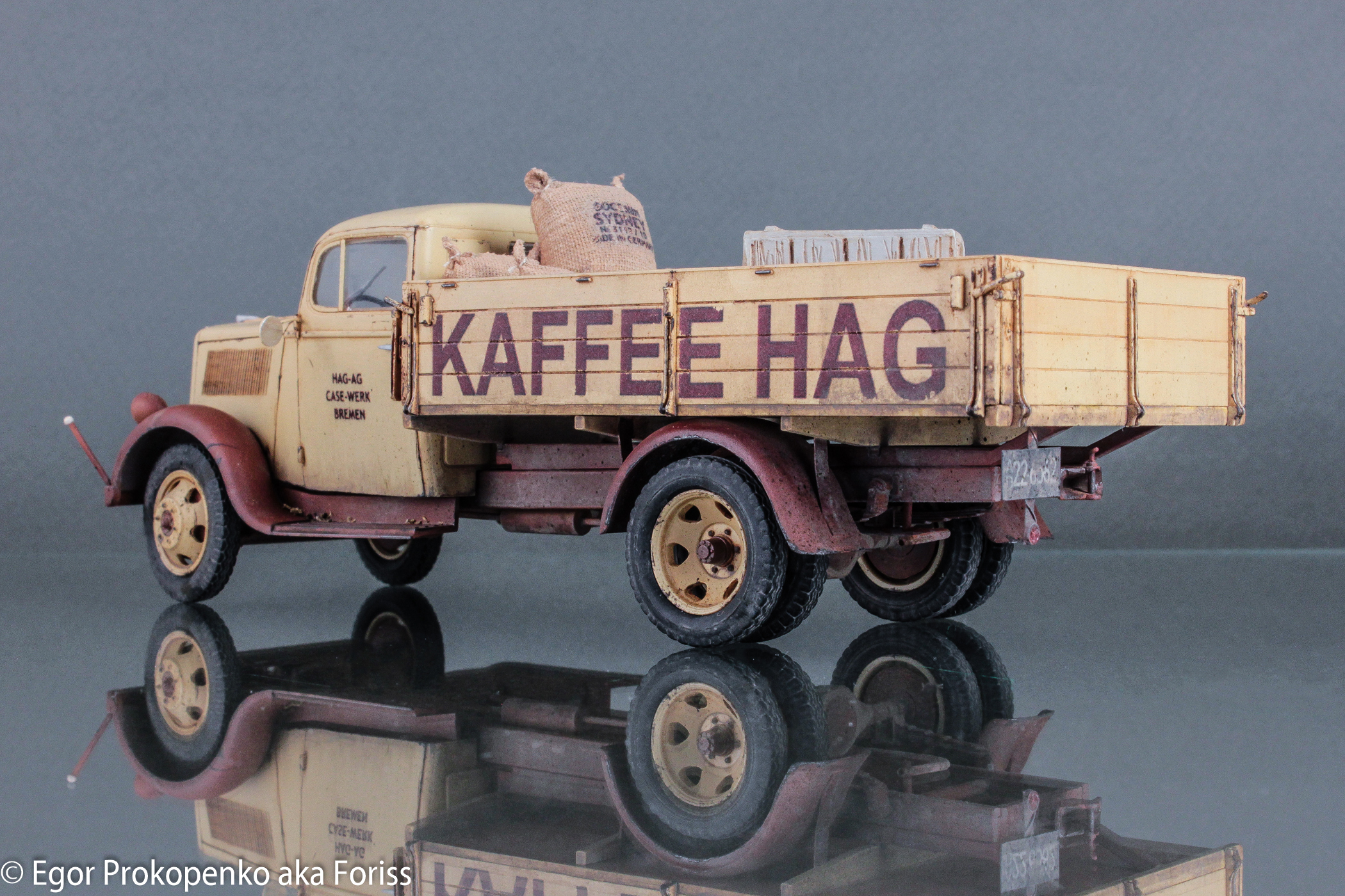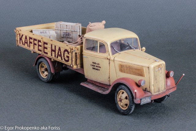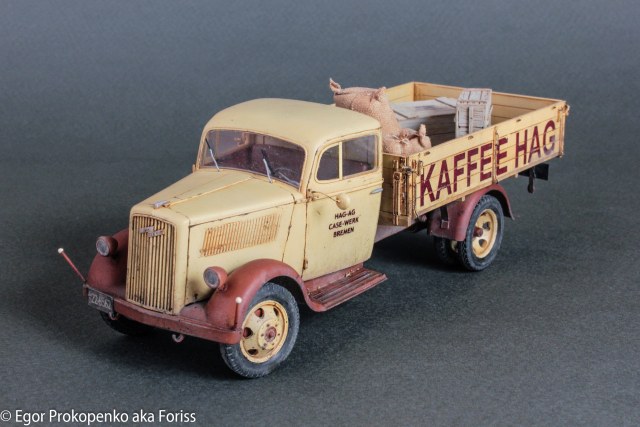 Выставляю очередную модель из своей серии «гражданок» – «полуторка» компании Кофе ХАГ (прикрепленное фото), прототип мне настолько понравился, что решил еще раз собрать Опель Блитц от ICM.