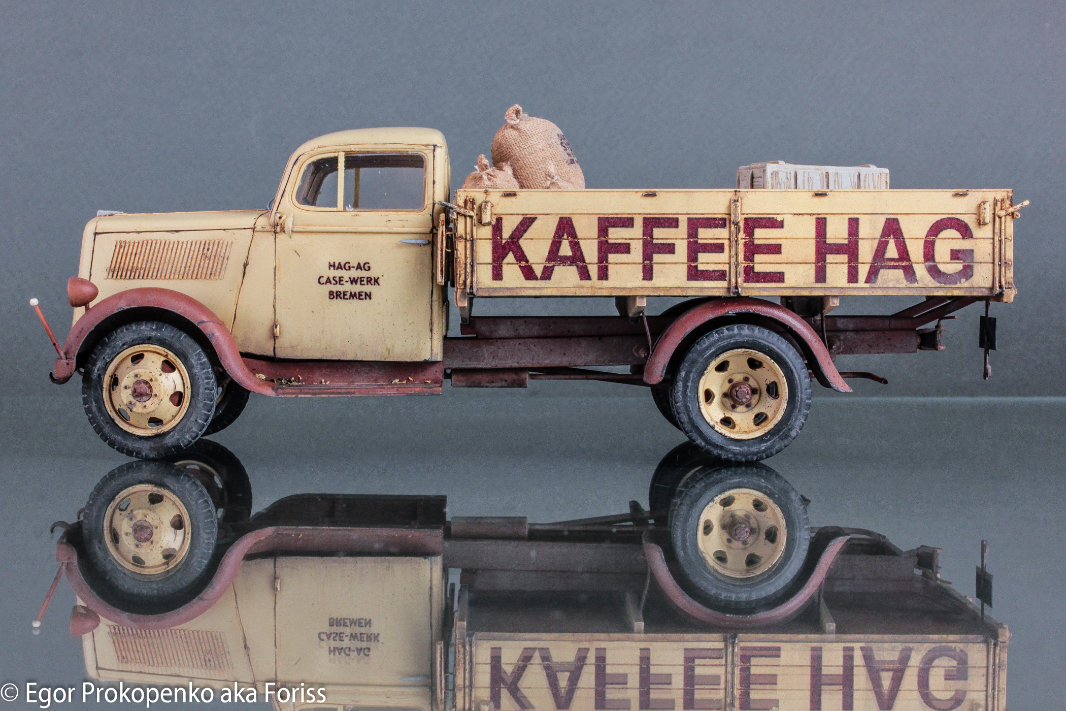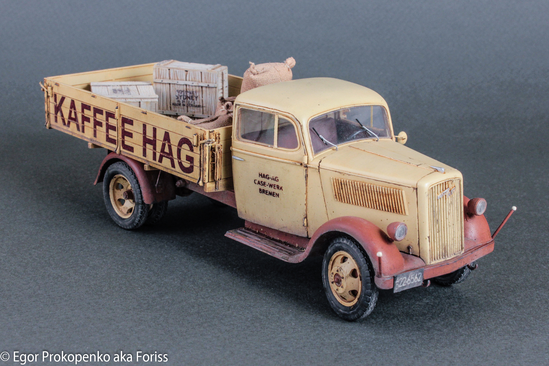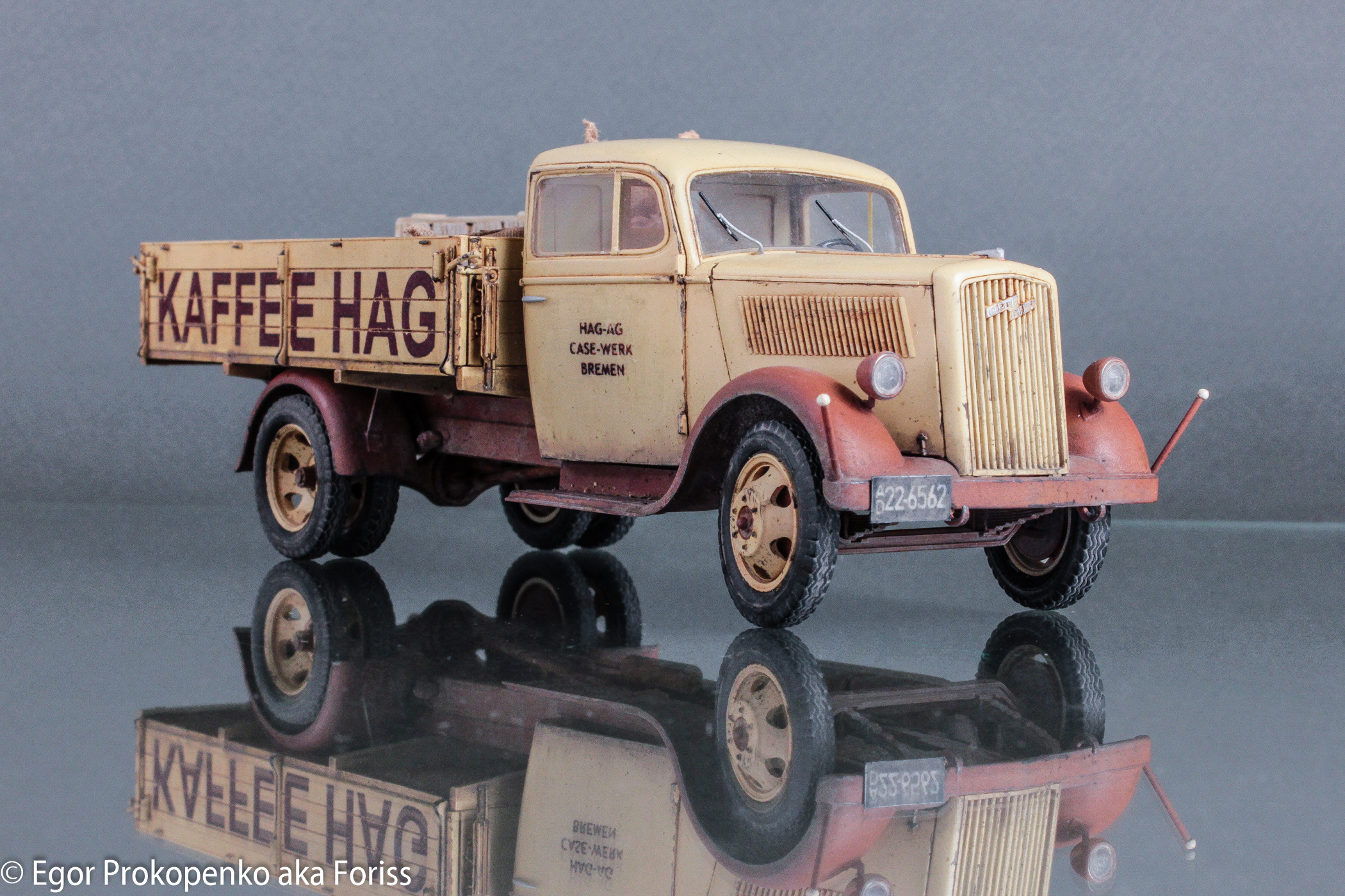 Выставляю очередную модель из своей серии «гражданок» – «полуторка» компании Кофе ХАГ (прикрепленное фото), прототип мне настолько понравился, что решил еще раз собрать Опель Блитц от ICM.