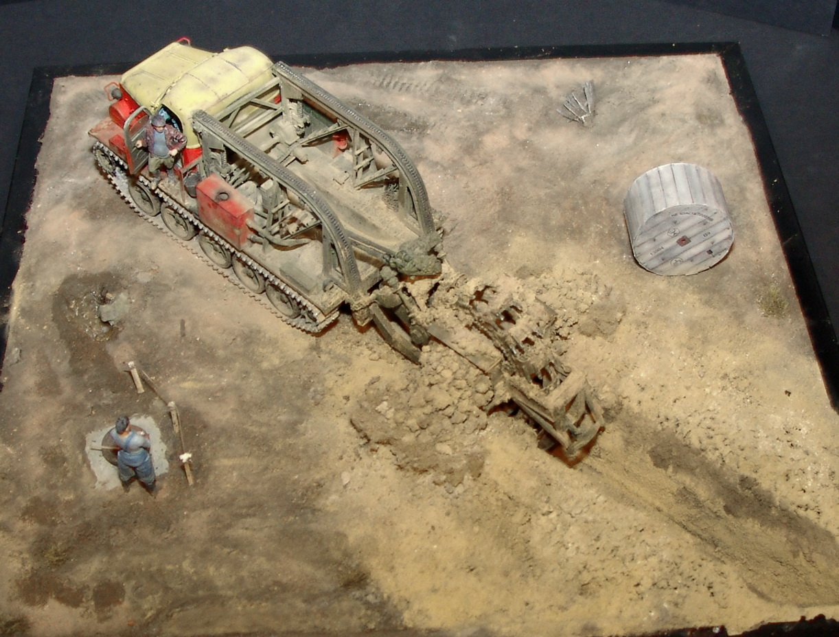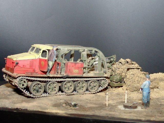 Давно собирался сделать серию небольших диорам на строительную тему под общим названием "Стройплощадка". Представляю первую диораму из этой серии. В данном случае использовалась модель БТМ-ТМГ, подробнее тут https://karopka.ru/community/user/11916/?MODEL=537966. Работа оказалась непростая, некоторые моменты так и не удалось воплотить как задумывалось, поэтому прошу строго не судить :).