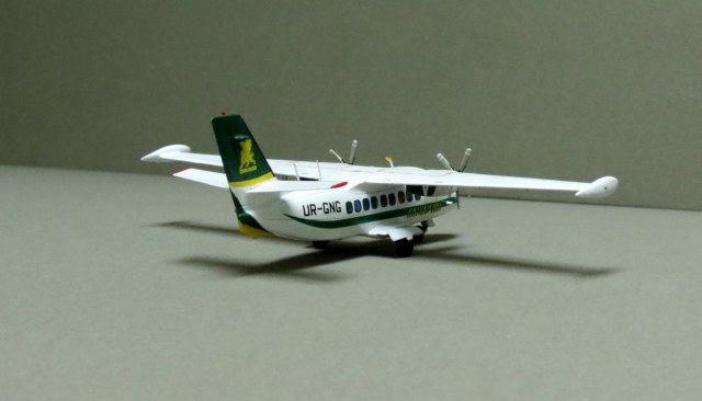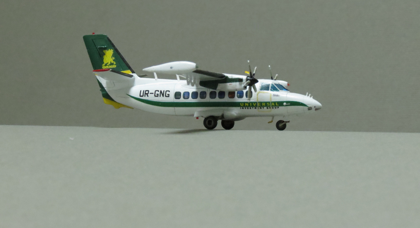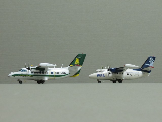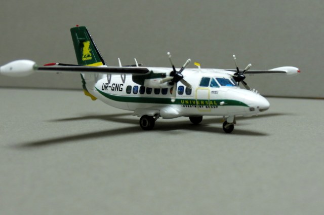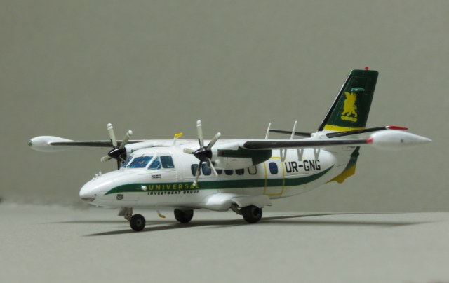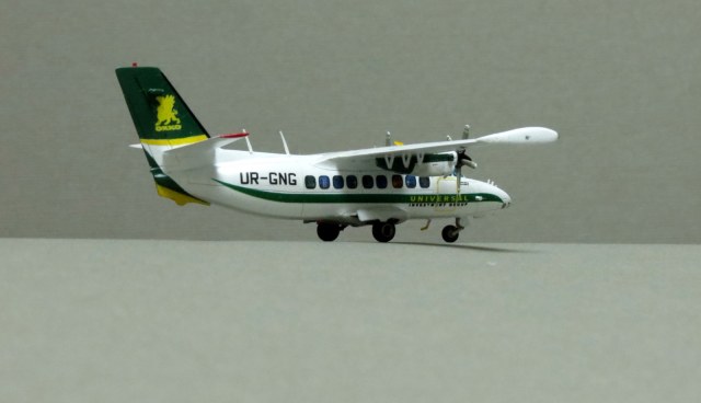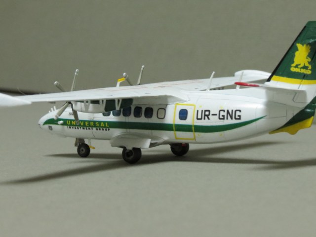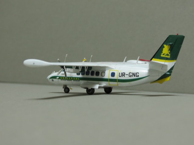 По левому борту криво нанесены декали иллюминаторов, створки шасси не должны лежать на колёсах, просто гигантский размер всех доработка. И да, это Л-410увп-Э. Модификация "Э-три" выглядит иначе