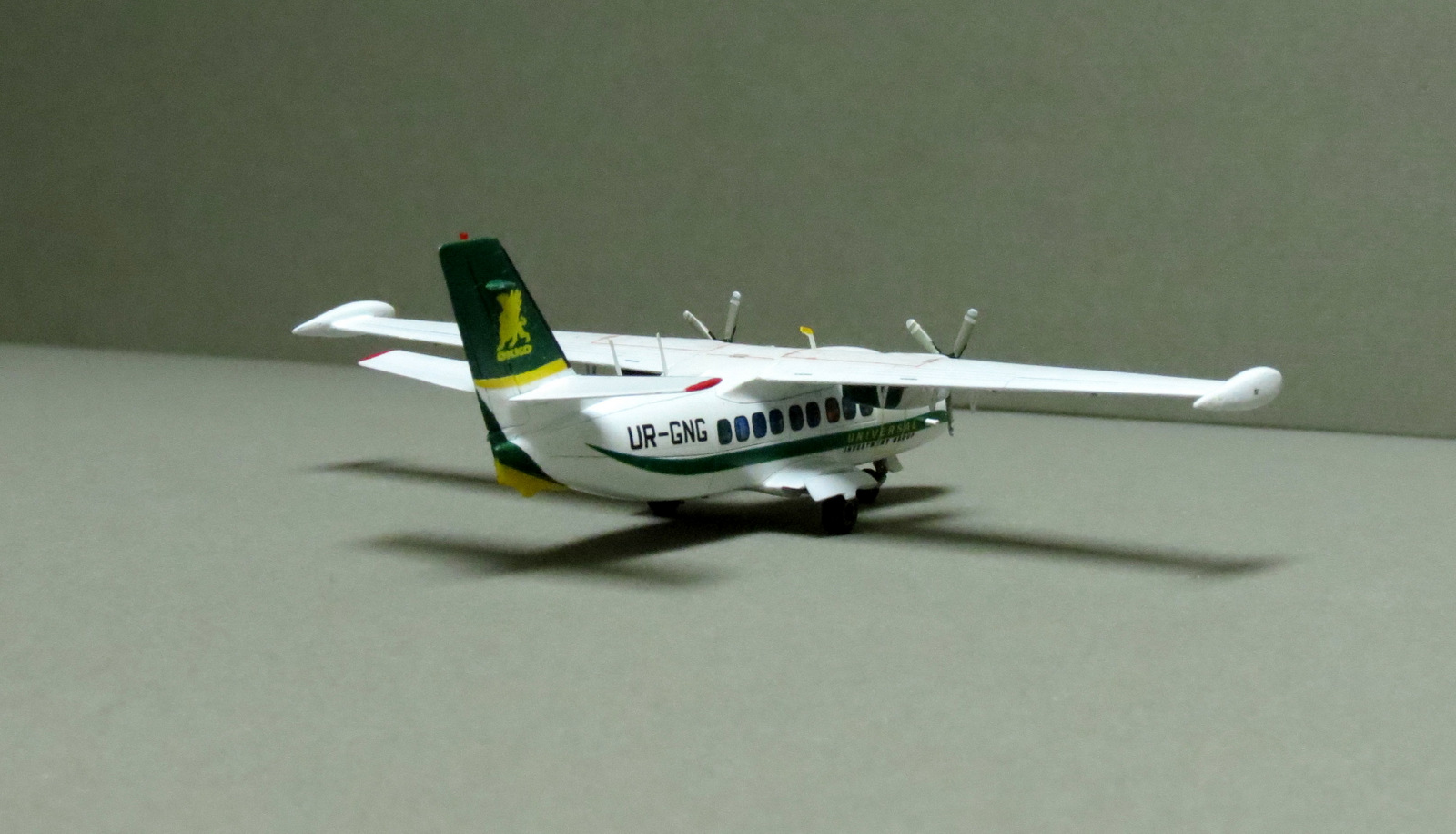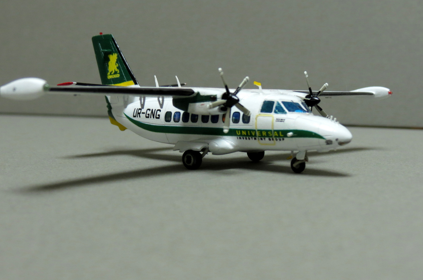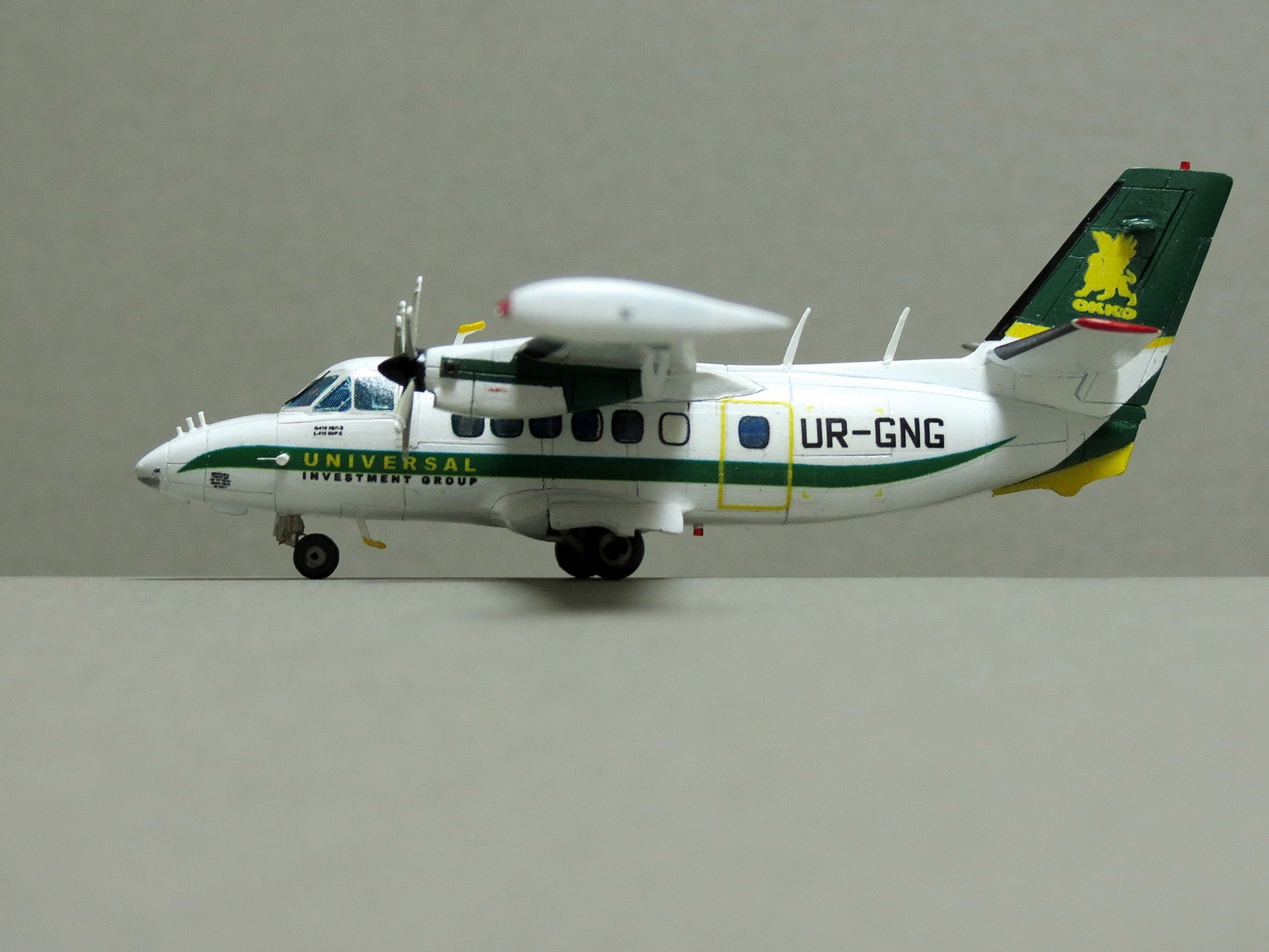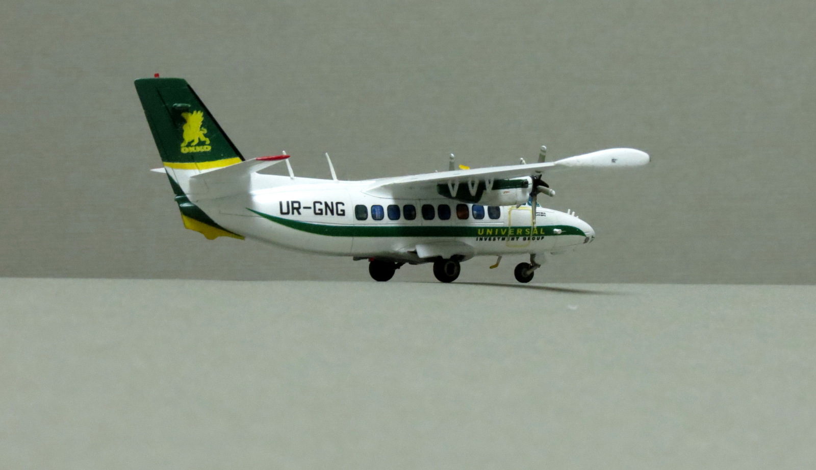 В наборе А-модел было две Елки. Одна была собрана ранее. Вторая, вот сейчас. Борт принадлежал частному лицу, точнее его компании, которая владеет в Украине в т.ч. одной из самых больших сетей заправочных станций. Собирался в память о тех временах, когда на нем леталось в коммандировки по работе. Базировалась елка во Львове, где, собственно и есьт штаб квартира упомянутой компании.