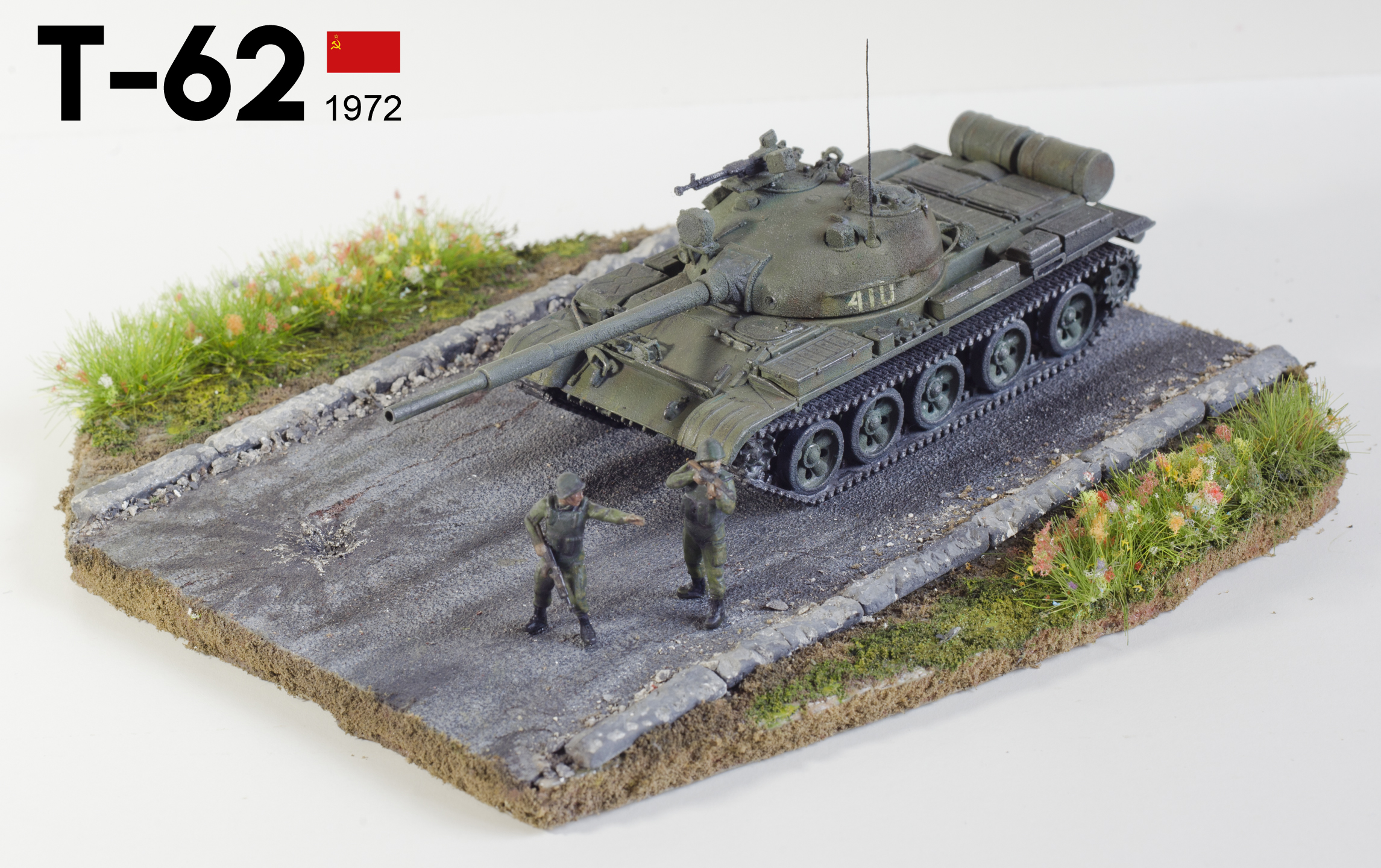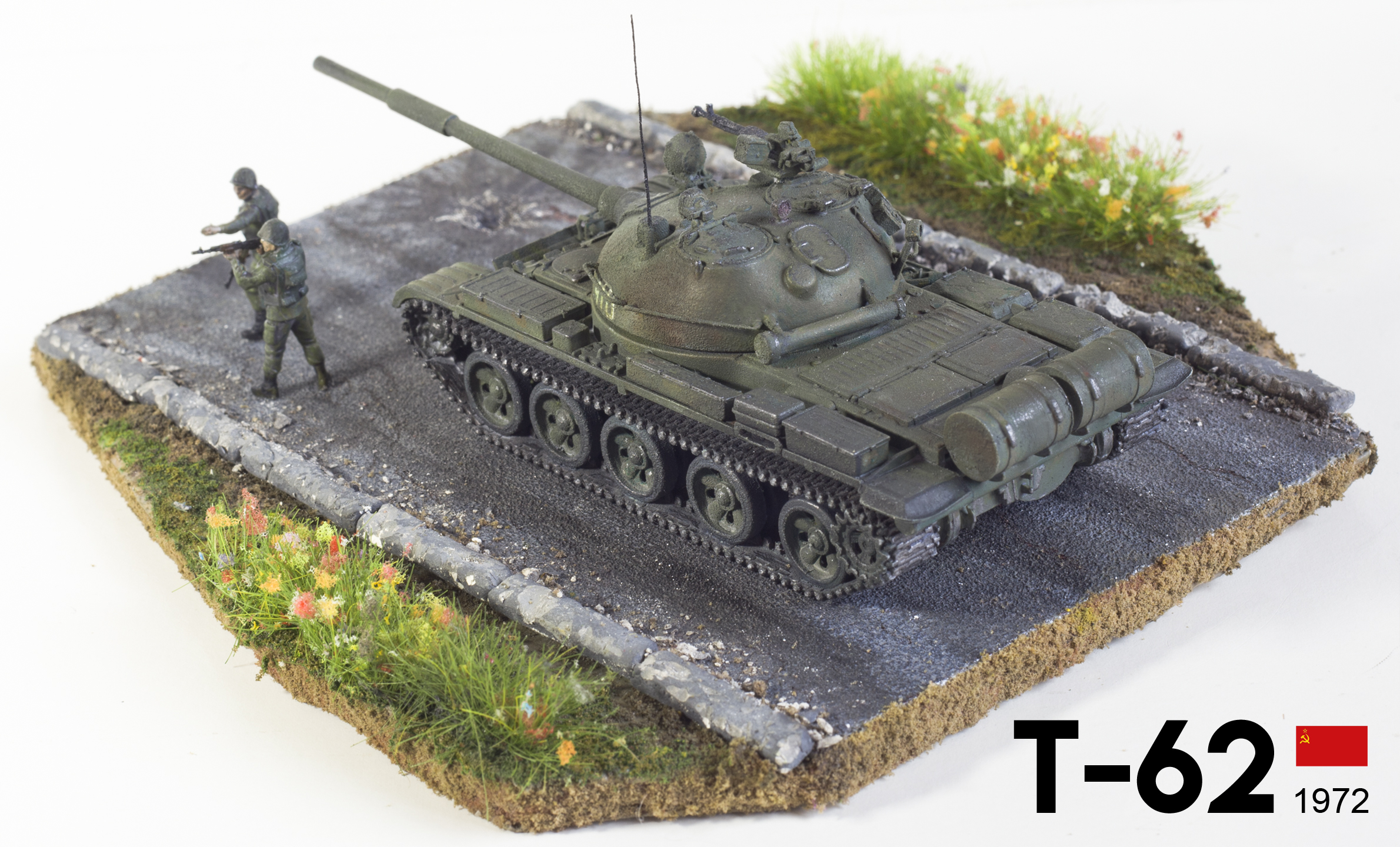По уму танку надо развернуть башню туда куда бойцы целятся. При движении танка по асфальту, остаются характерные следы. А как асфальт делали? Как по мне так хорошо получилось.Смывку если поконтрастней сделать танк только выиграет.От автомобильной грунтовки видна шагрень местами.Однако от себя отмечу что эта работа пока больше всего понравилась из представленных вами ранее.